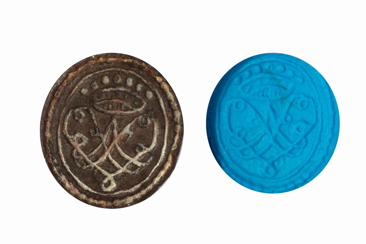 Lotto composto da tre sigilli in bronzo a pendente, di cui due multipli, con stemmi nobiliari,...