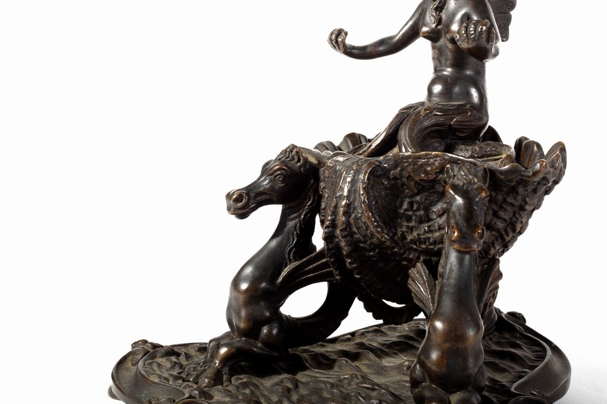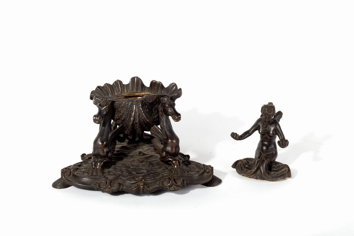 il calamaio con sirena su conchiglia trainata da cavalli marini, secolo XIX