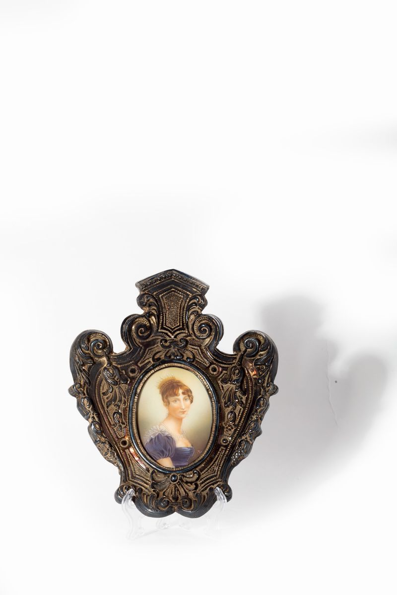 scatolina circolare in legno con coperchio in metallo dorato con effigie di Napoleone di profilo; due placche con Napoleone e Maria Luisa (uno in bronzo e uno in porcellana bianca); una placca in stile Wedgwood con Napoleone II bambino re di Roma; una con Luigi Napoleone Bonaparte presidente della Repubblica Francese; una in porcellana bianca con l'effigie di Maria Luigia Duchessa di Parma; una rettangolare con Napoleone coronato d'alloro, una miniatura su carta raffigurante Ortensia di Beauharnais.