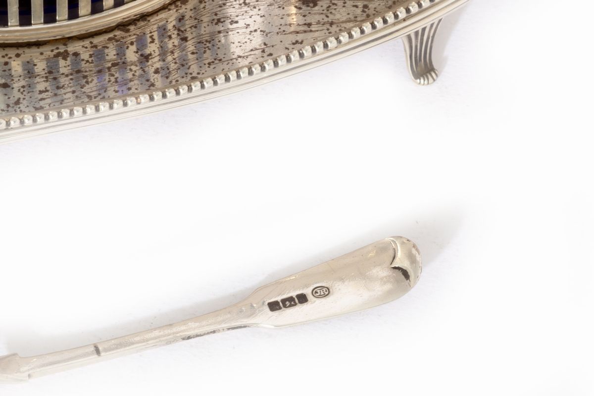 interno della salsiera in vetro blu e cucchiaino non pertinente