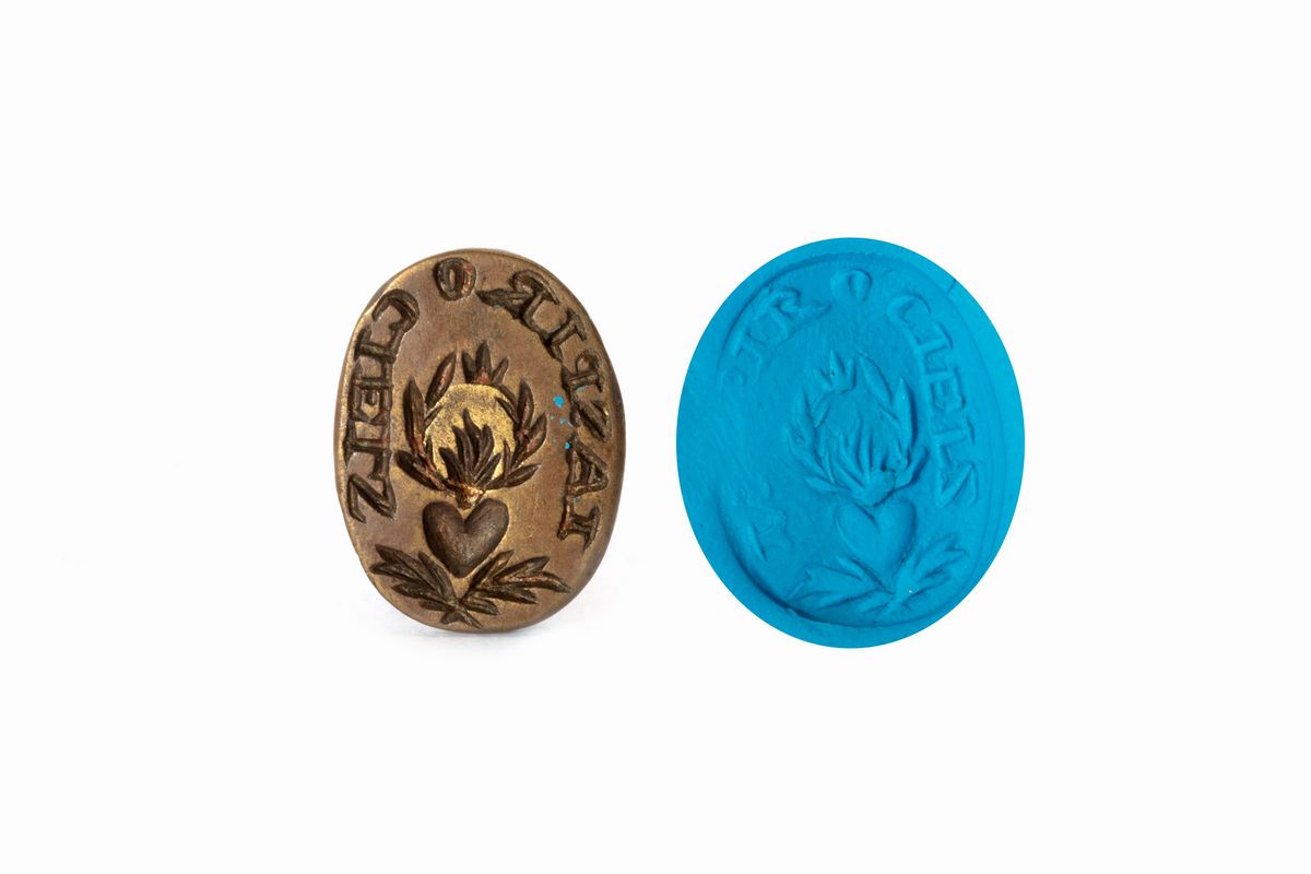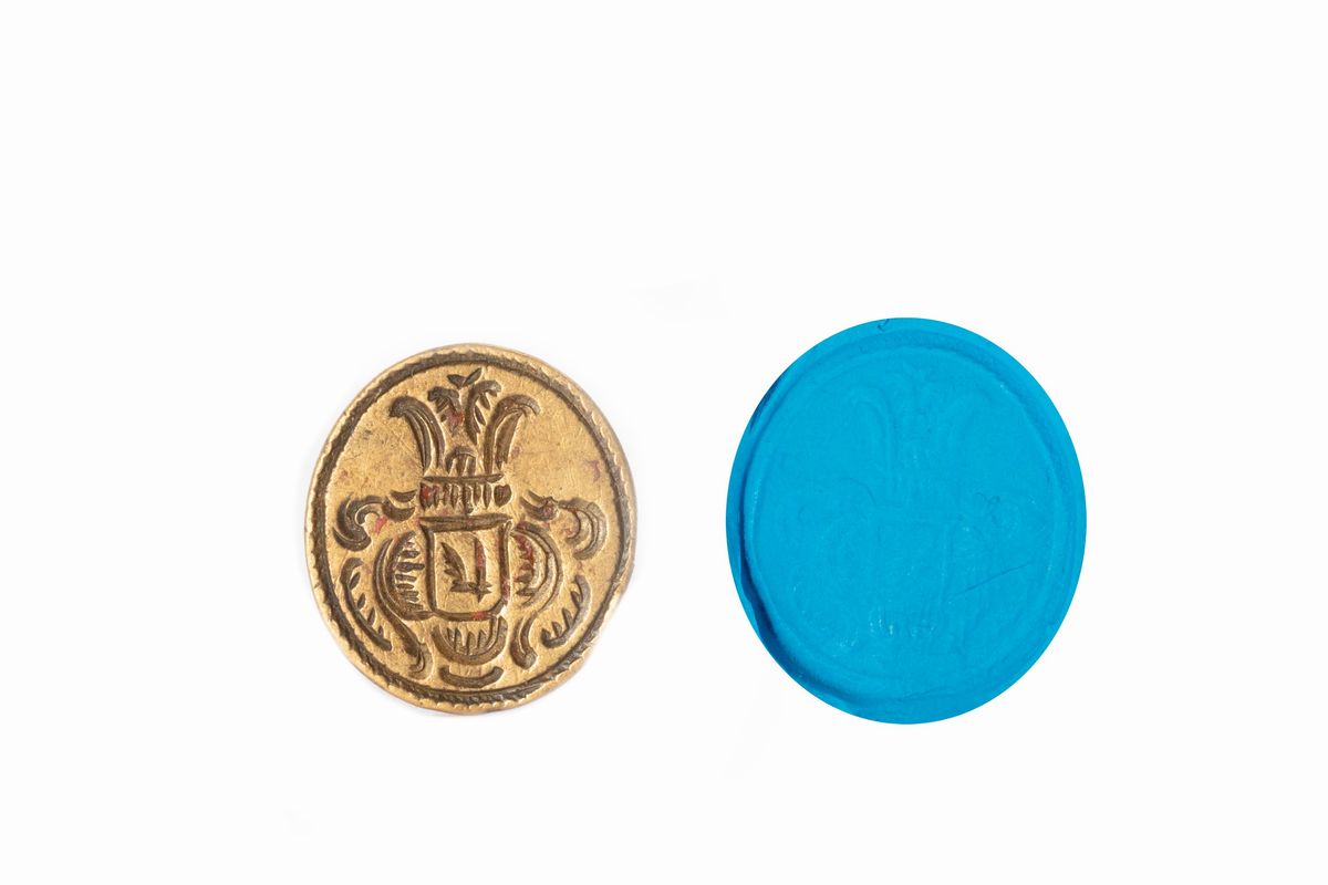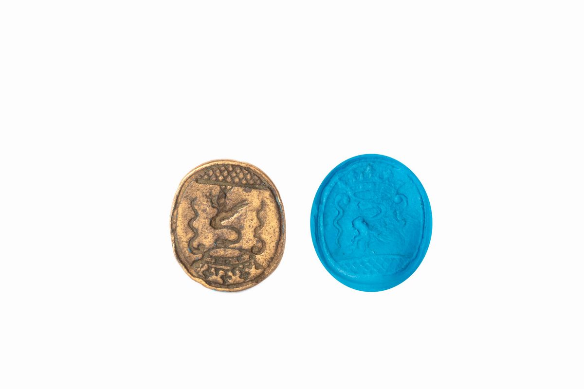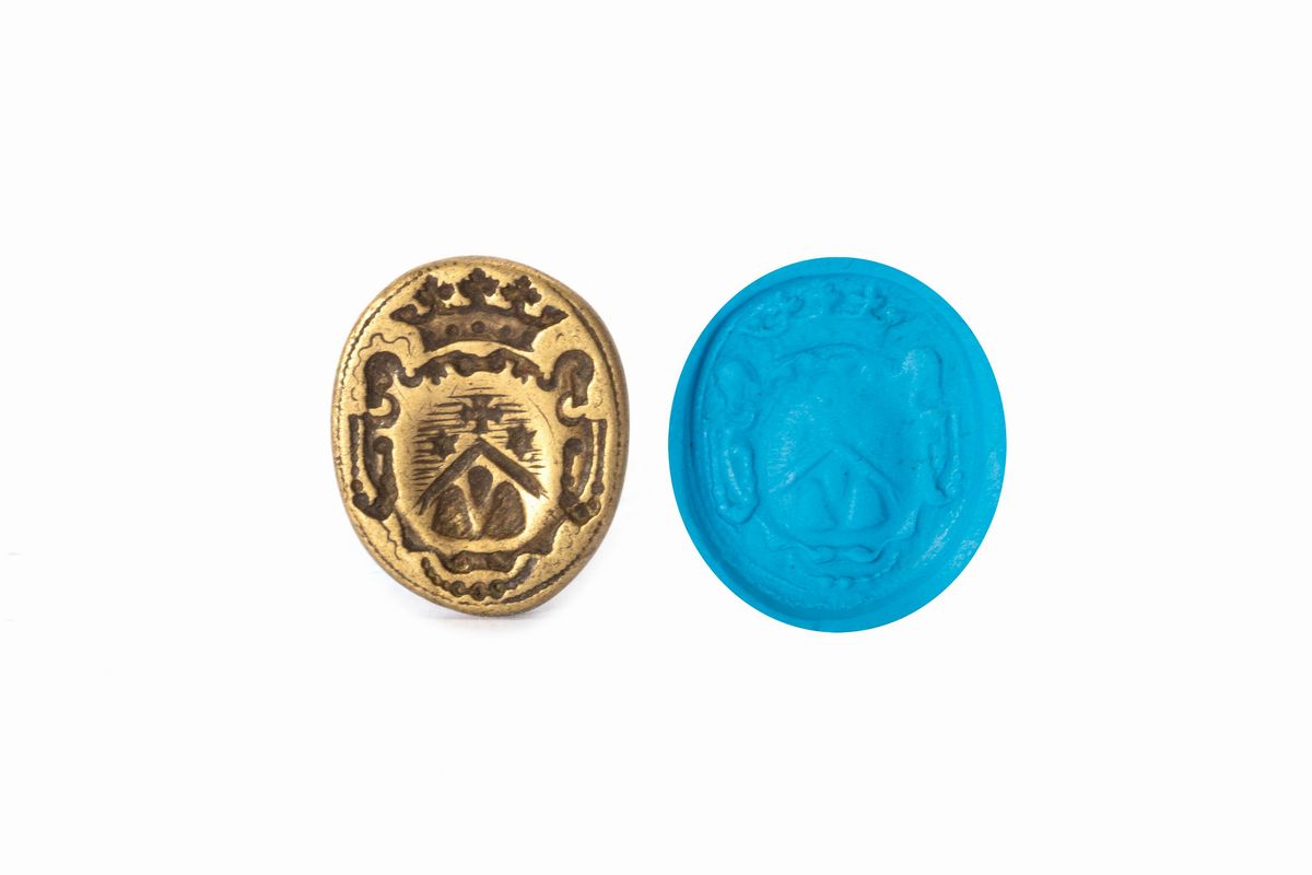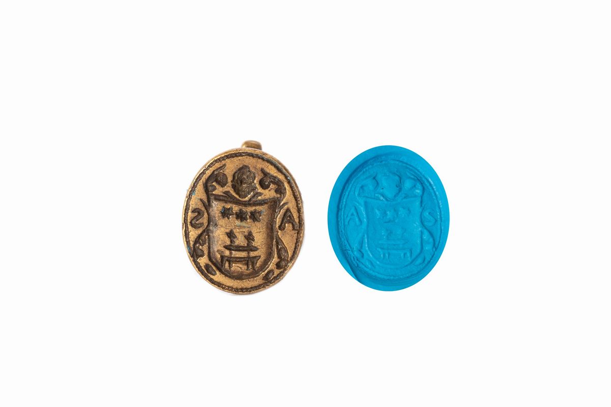 Lotto composto da cinque sigilli a pendente in bronzo, con stemmi nobiliari, secolo XVIII