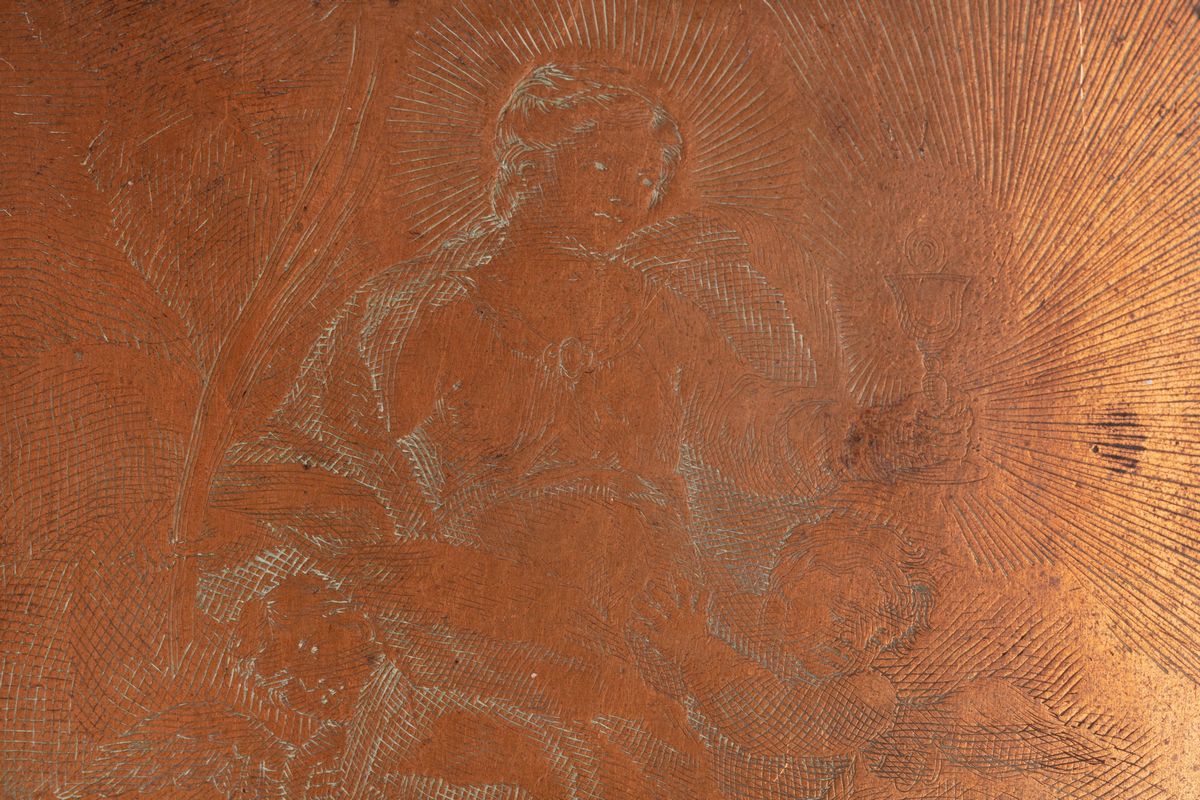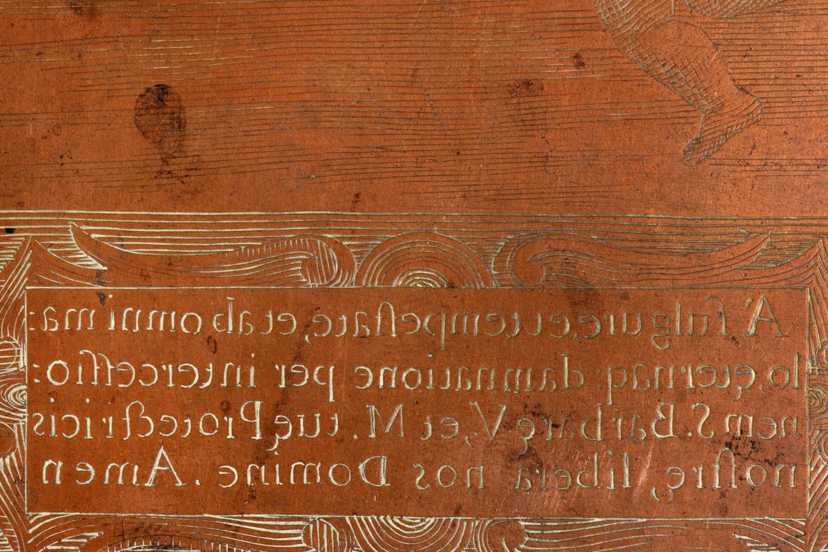 la placca più grande in bronzo dorato raffigurante Madonna con Bambino entro cartiglio; una placca ovale raffigurante Compianto di Cristo; la lastra da incisione raffigurante Madonna Assunta in controparte