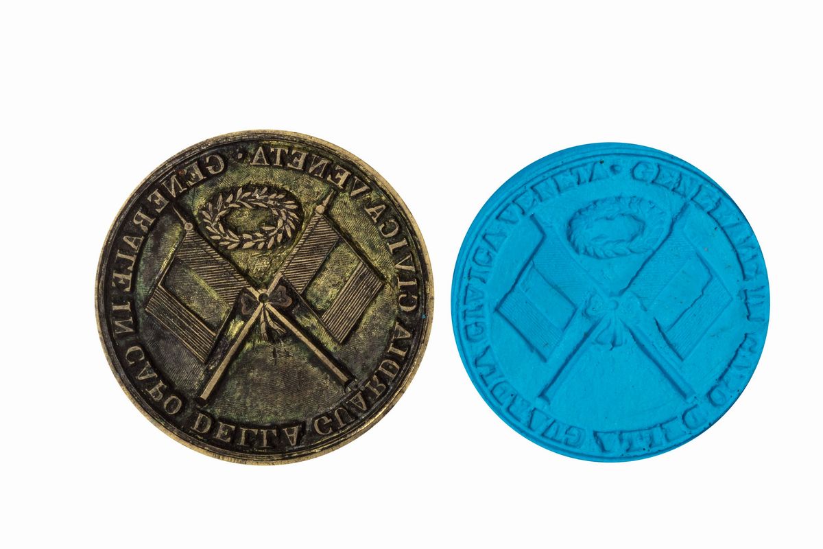uno con stemma di San Marco e iscrizione Comando della Coorte de Veliti; uno con due bandiere incrociate e iscrizione Generale Capo della Guardia Civica Veneta; uno con monogramma CFBN entro serto di alloro