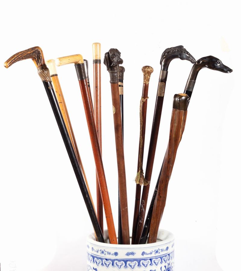 tre con presa in argento: uno con due teste di cavallo, uno con testa di cane e uno con pomo decorato a volute