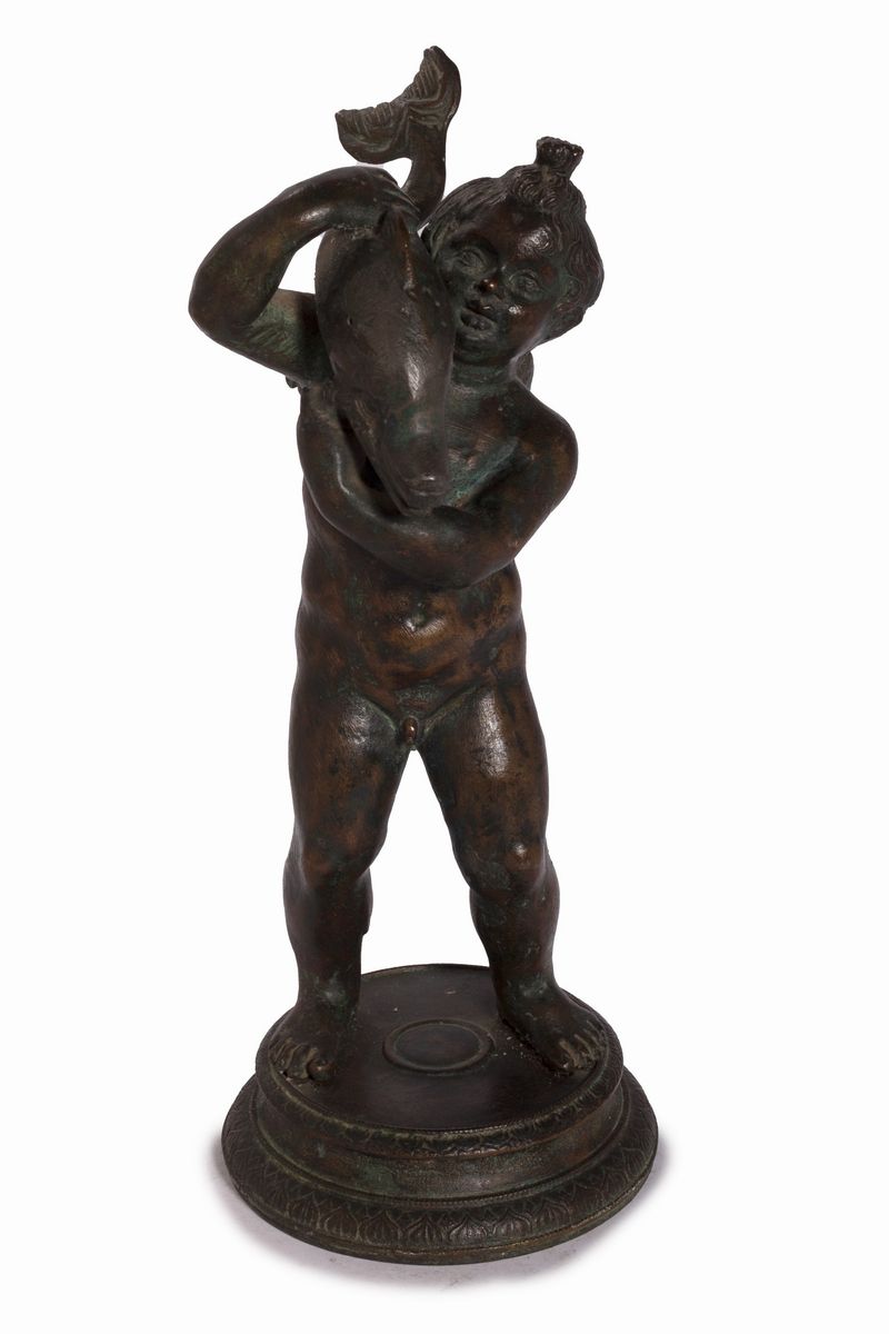Scultura in bronzo raffigurante Putto con delfino, Napoli secolo XIX