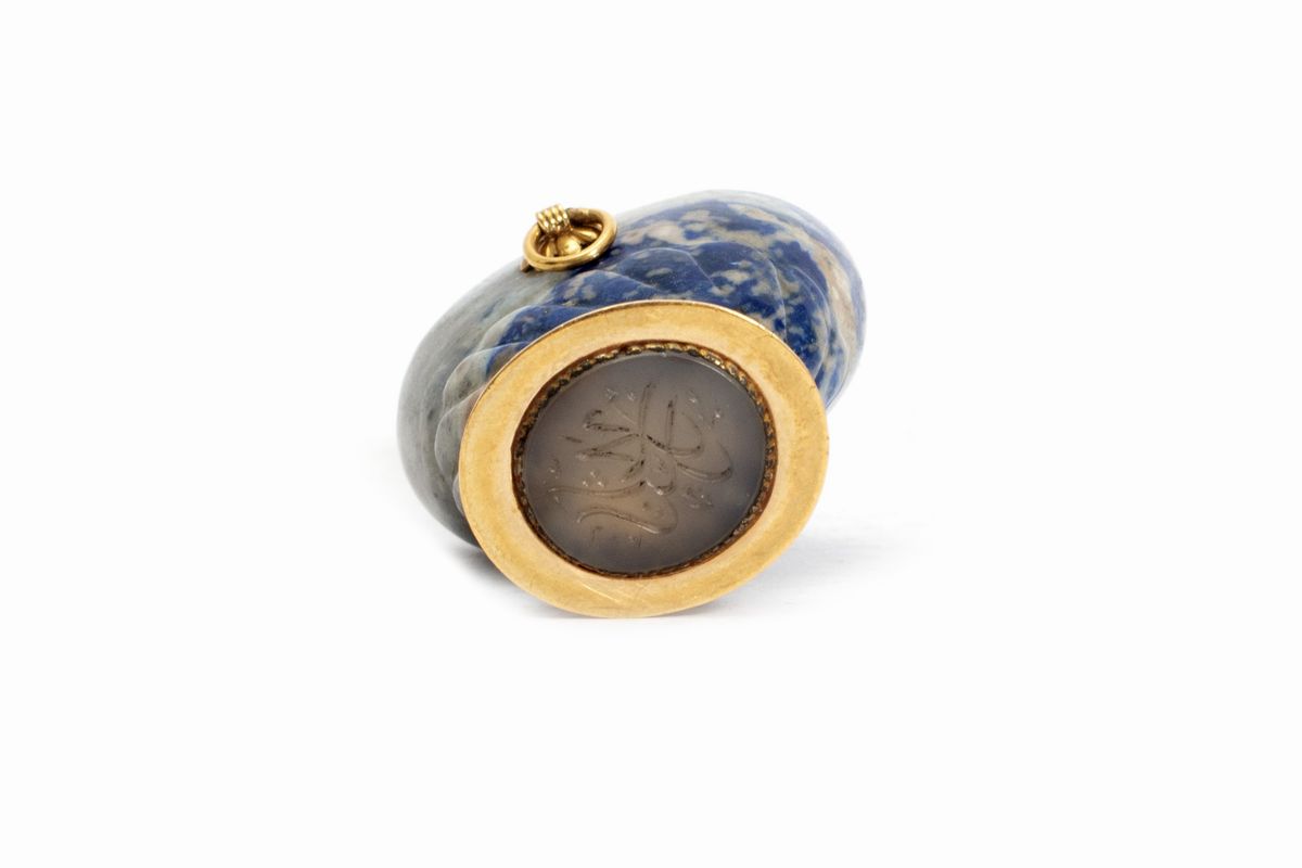 Sigillo in lapislazzulo con applicazioni in oro, fine secolo XIX - inizi secolo XX