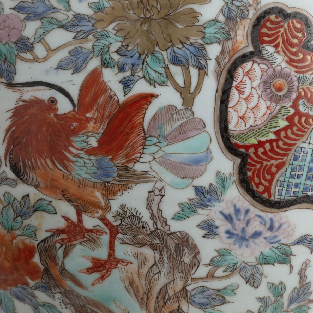 presa a forma di scimmia, decorato sul corpo con samurai, uccelli, fiori e animali fantastici