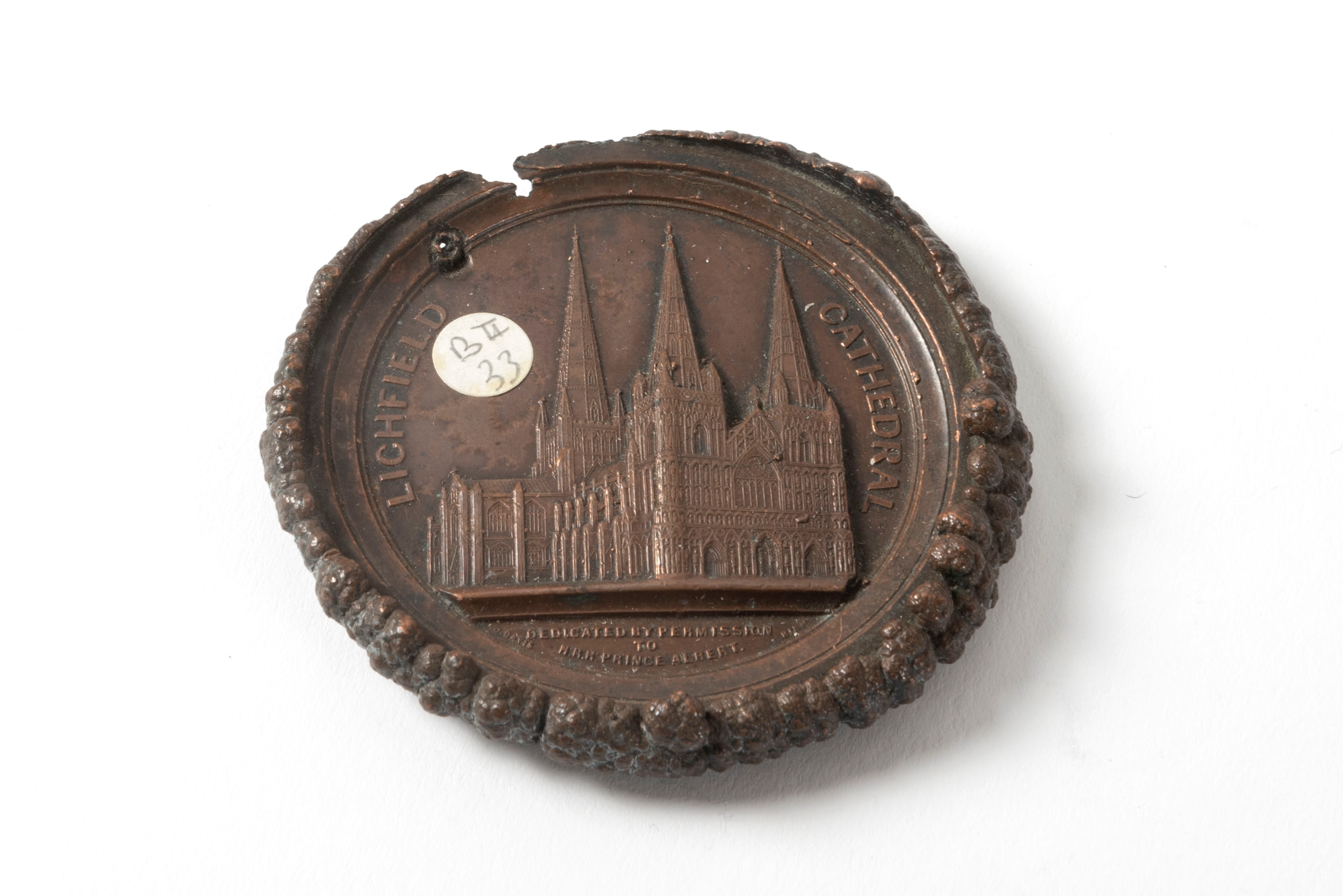 una coppia con monumenti di Bruges; uno con la cattedrale Lichfield