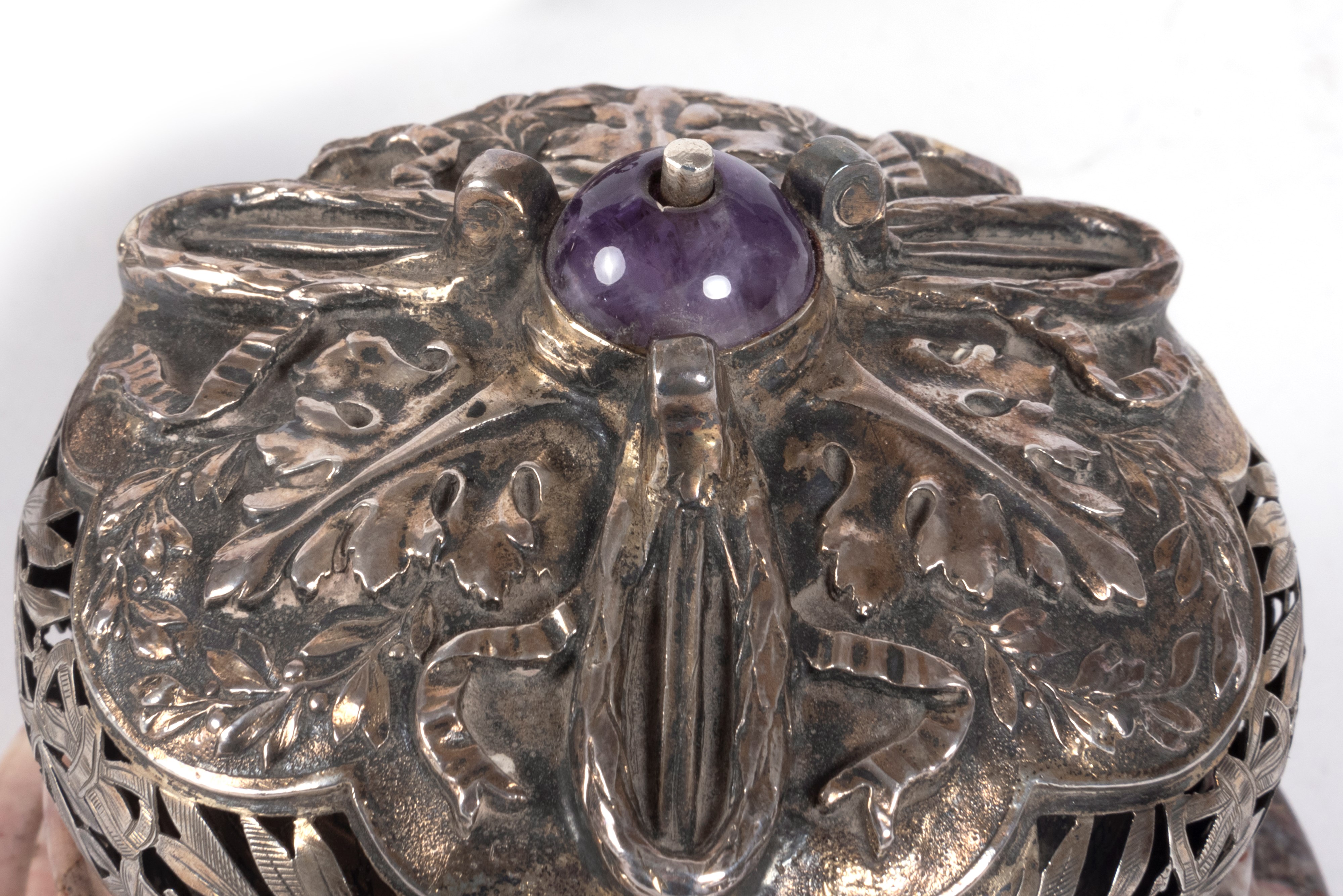uno con presa a maniglia e bollo Belgio; uno con presa a forma di corona su cuscino, base in legno ebanizzato e bolli Inghilterra; uno con bollo 800 e pulsante in osso; uno in argento non marcato con pulsante in ametista e base in marmo