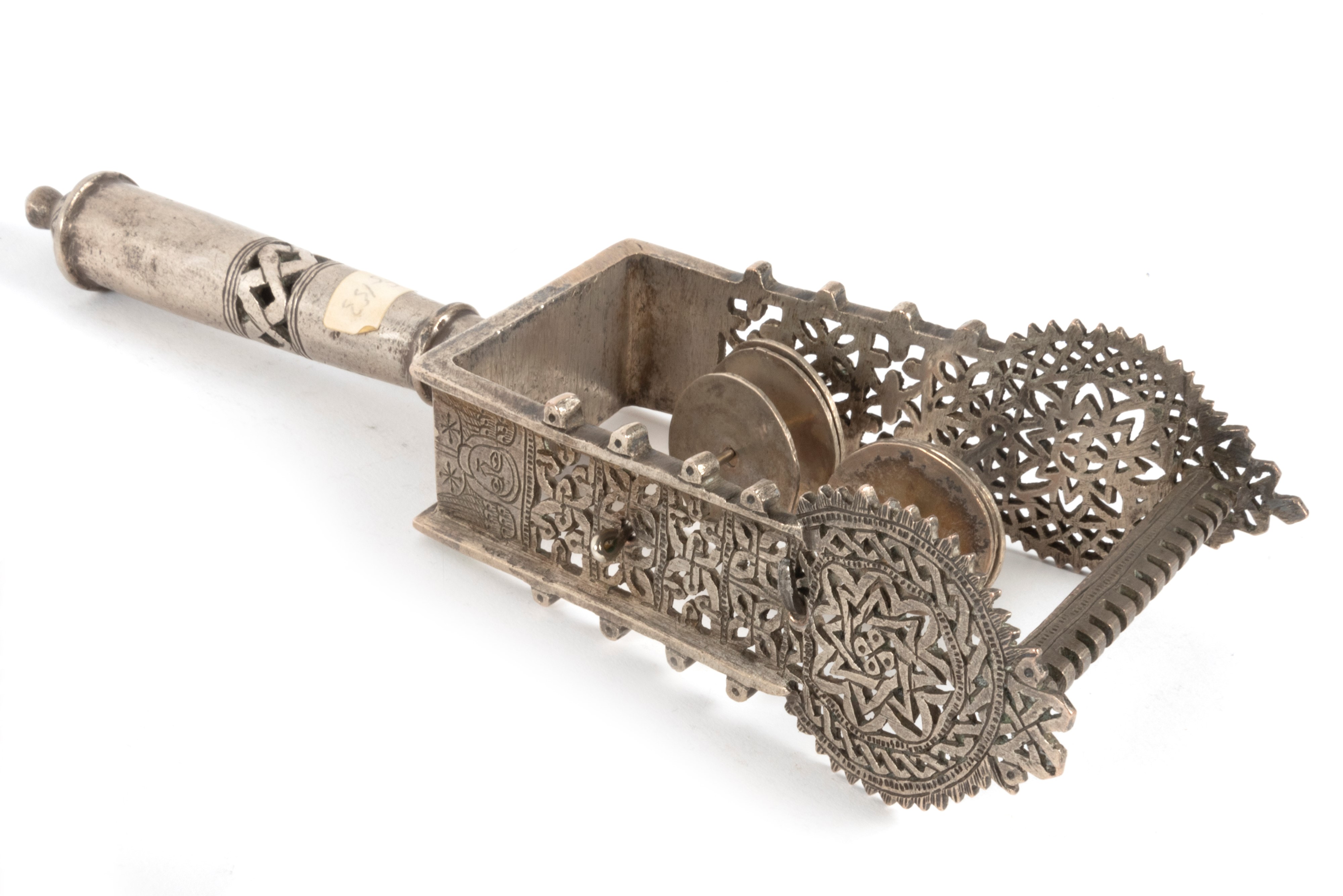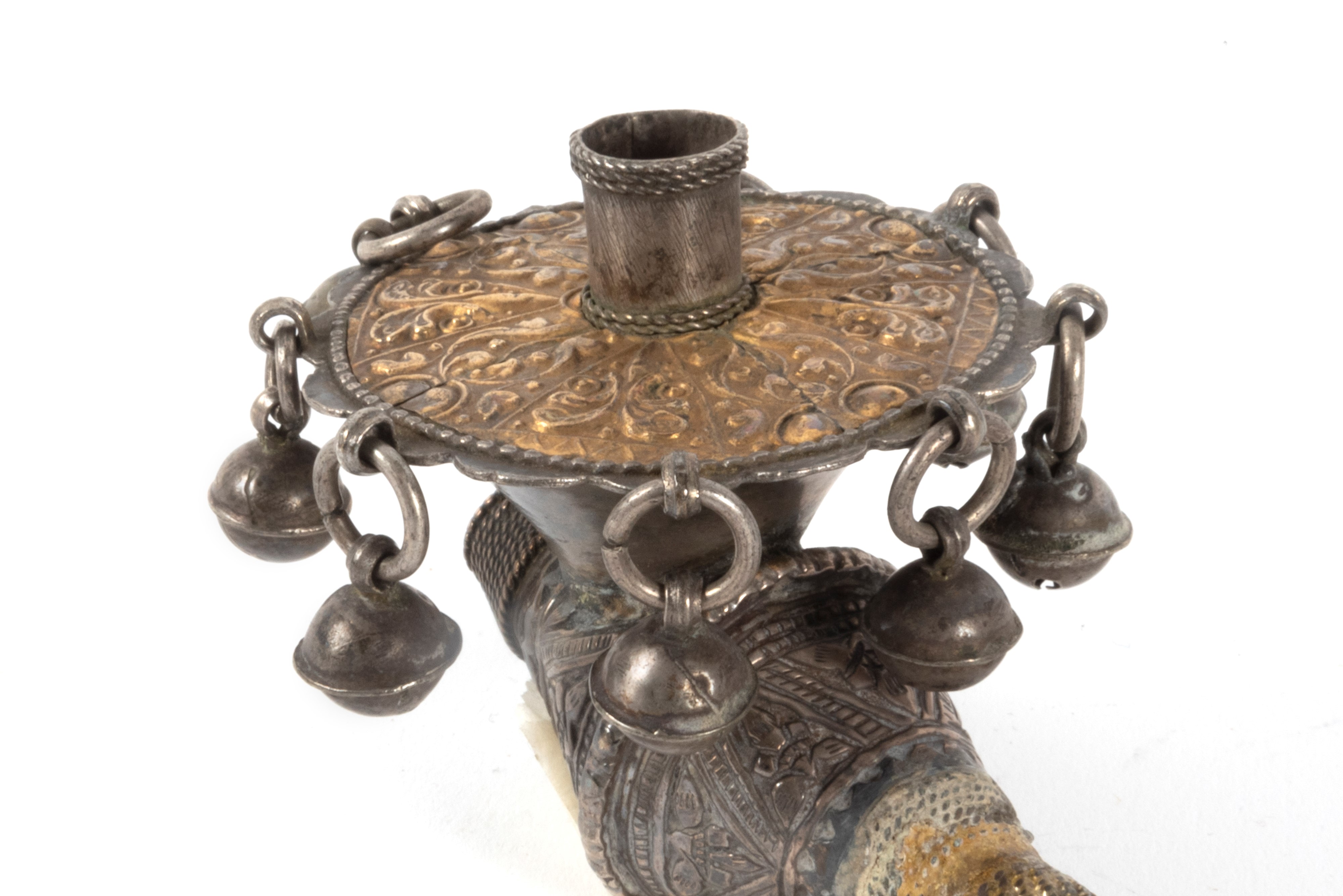 un sistro egiziano; un sonaglio mediorientale con iscrizioni in arabo; un piccolo sonaglio con 8 campanelli; e una scatolina in argento incisa