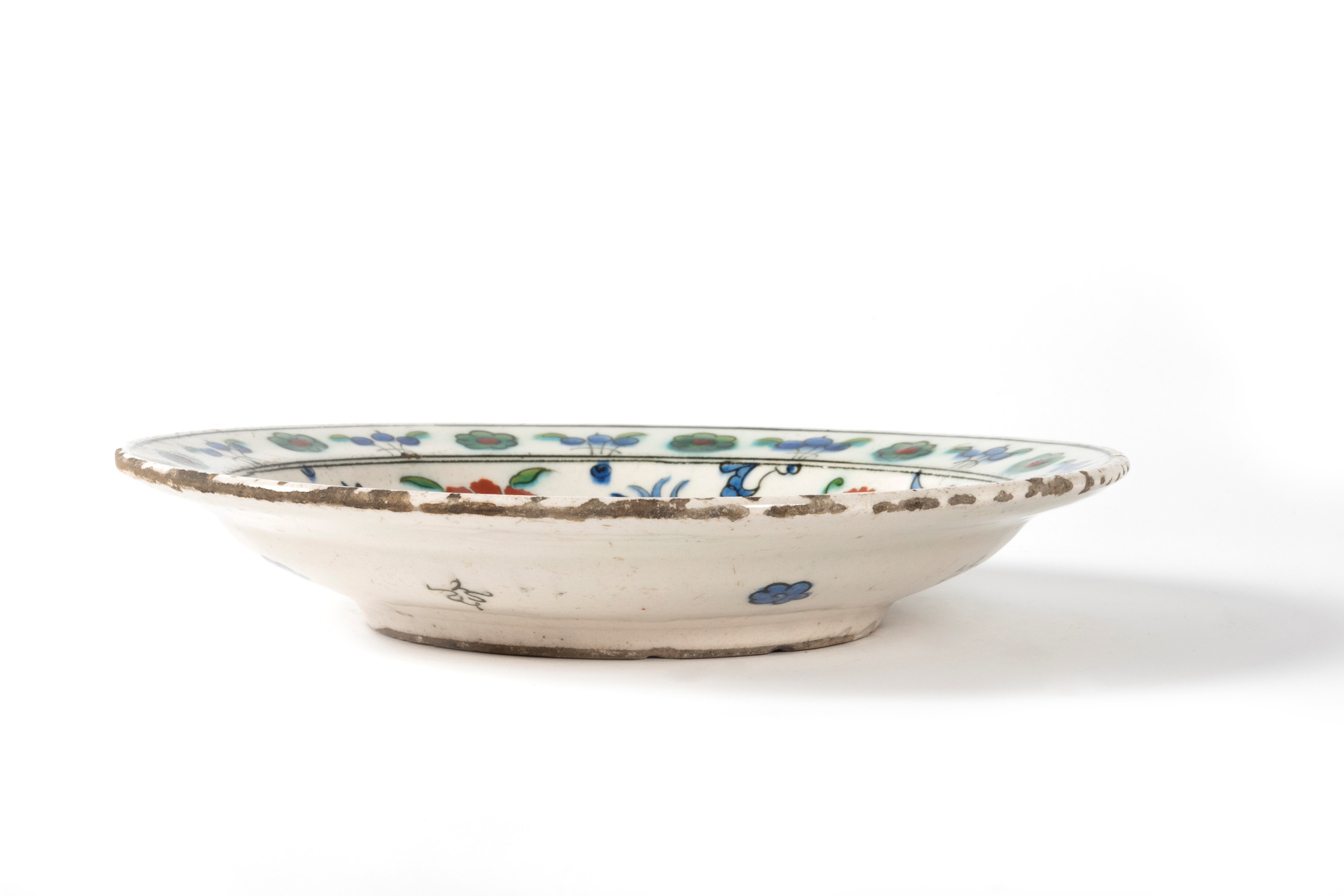 nei tre colori blu verde e rosso su fondo bianco, con decoro floreale sulla tesa e nel cavetto