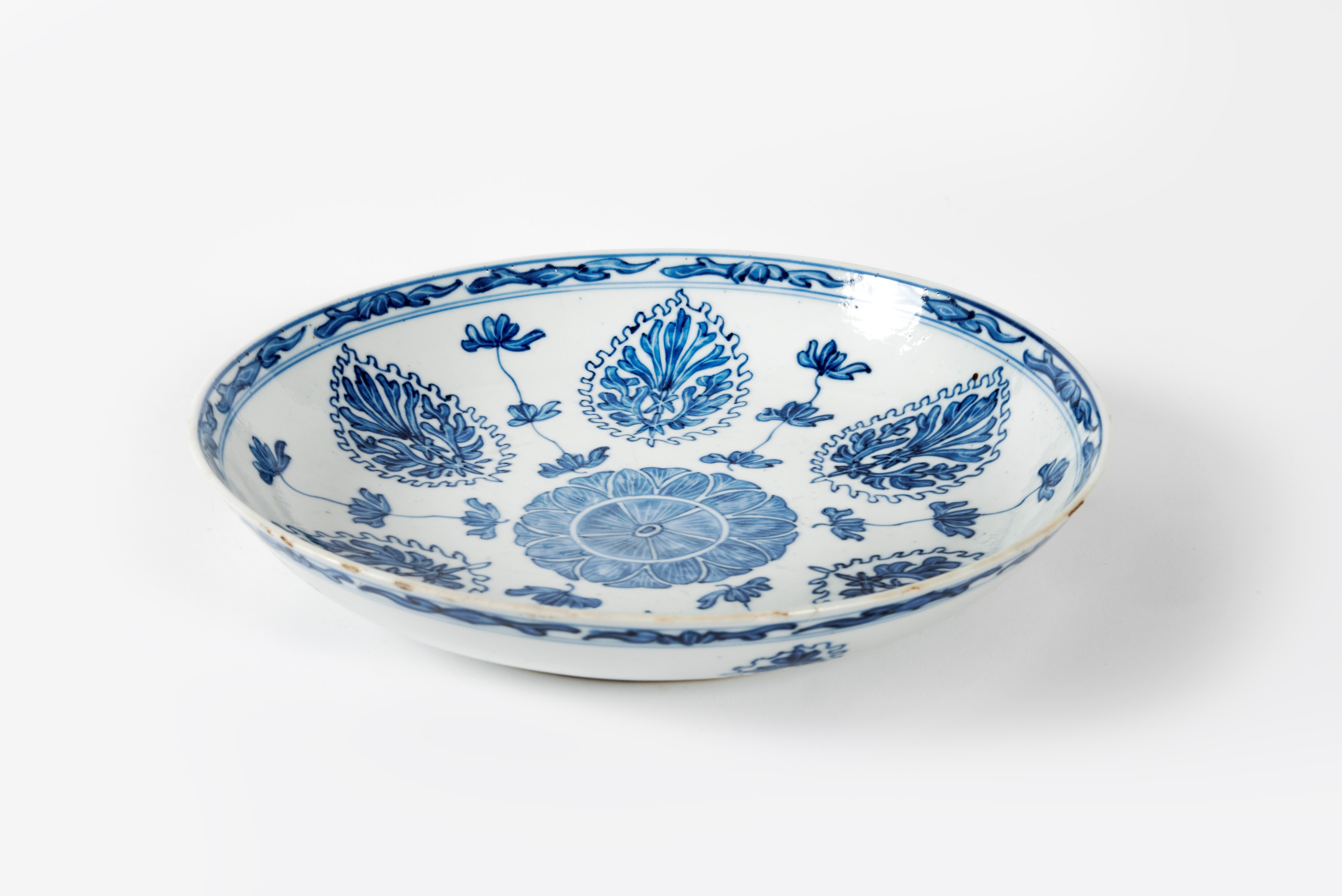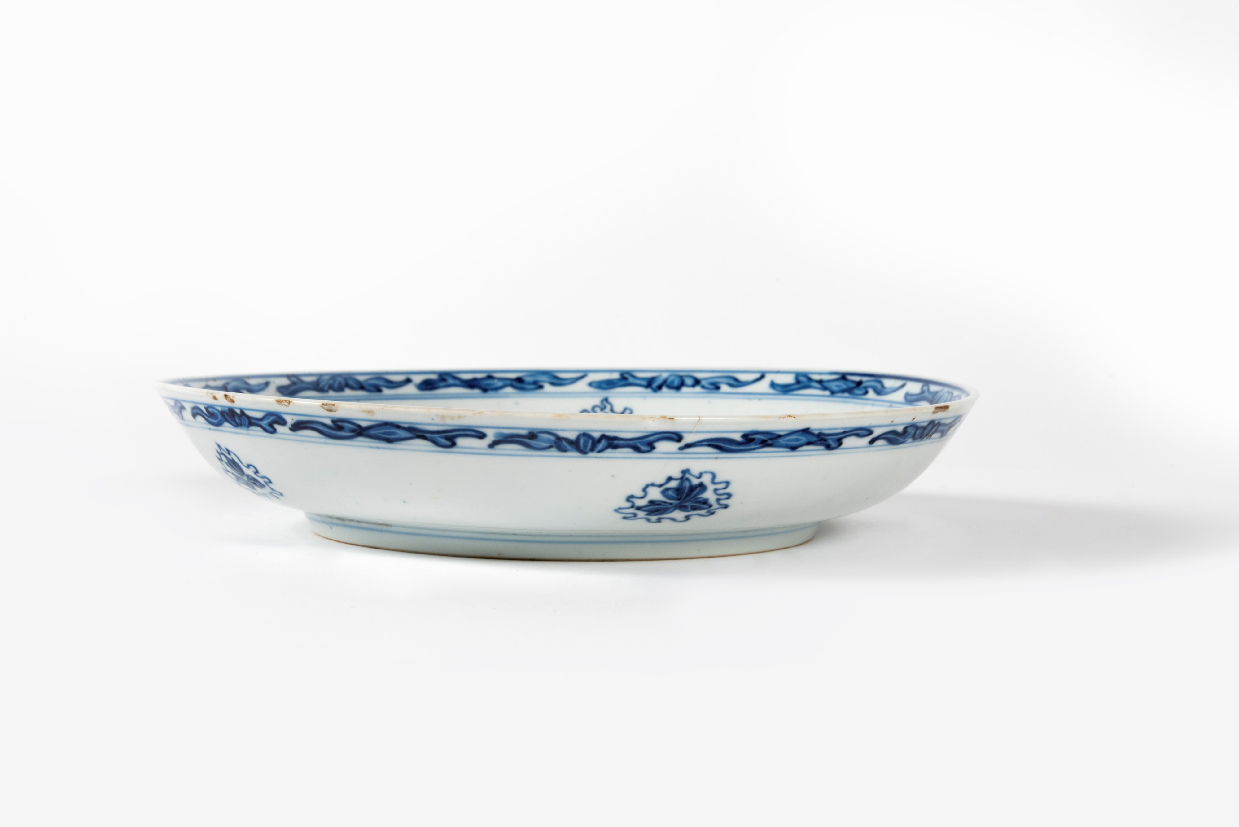 Piatto in porcellana bianca e blu, Cina, dinastia Qing, periodo Kangxi