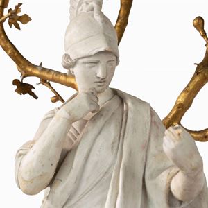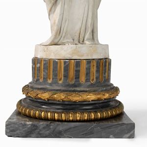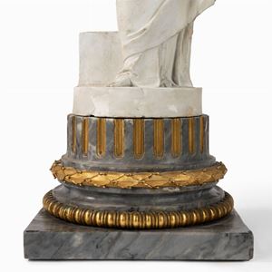 su basi a forma di colonna scanalata in marmo grigio bardiglio