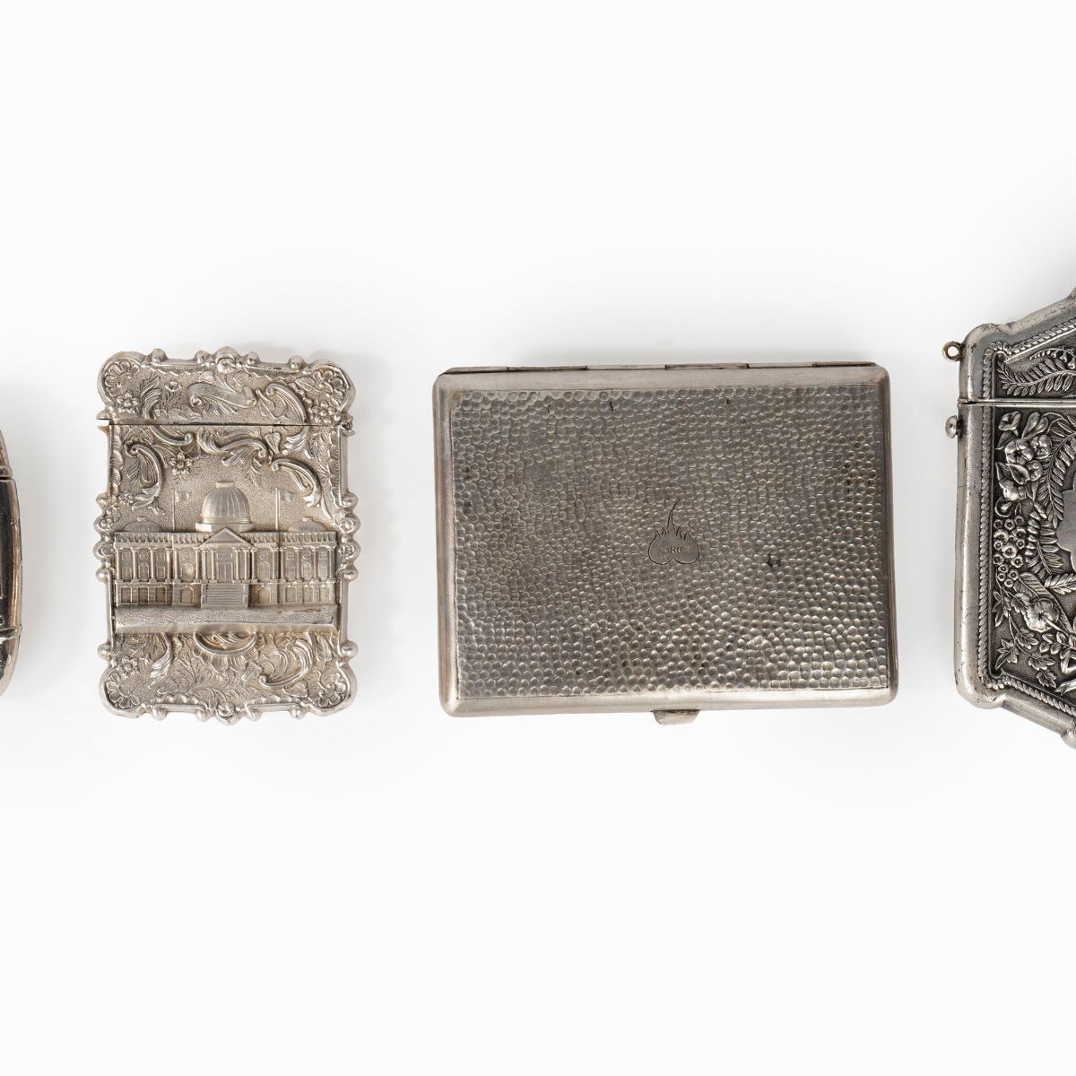 un porta biglietti è d'argento decorato sul fronte e sul retro probabilmente con vedute di monumenti americani; peso totale gr 46