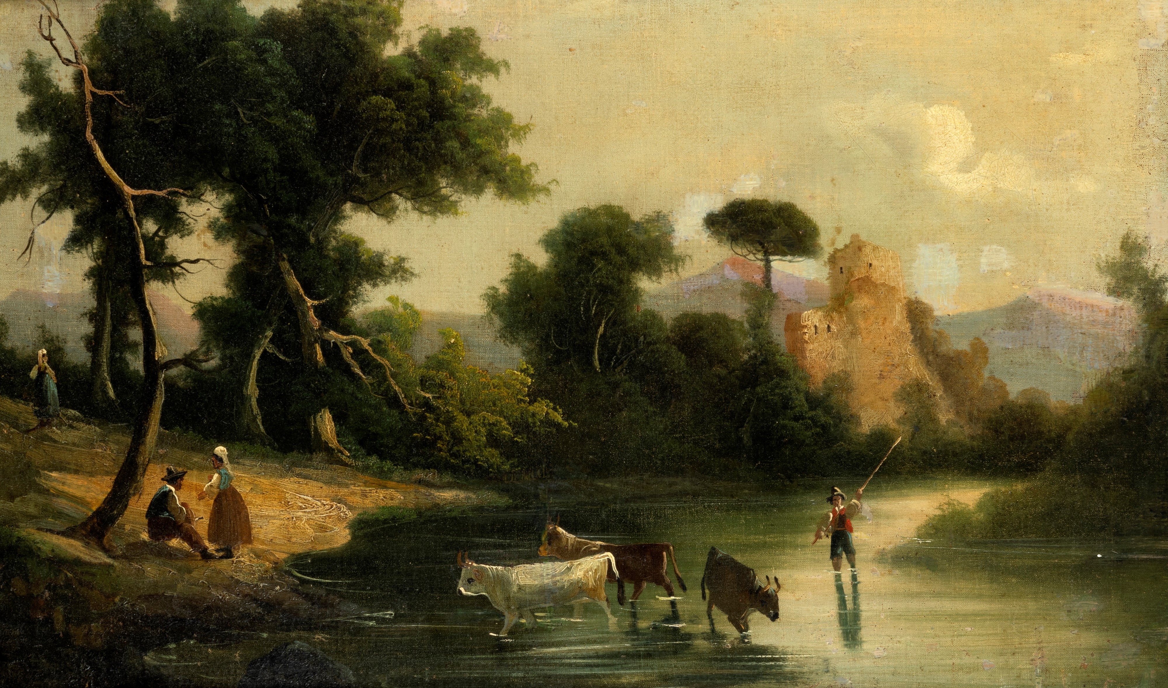 Paesaggio fluviale con pastori e armenti; Paesaggio costiero con astanti e imbarcazioni