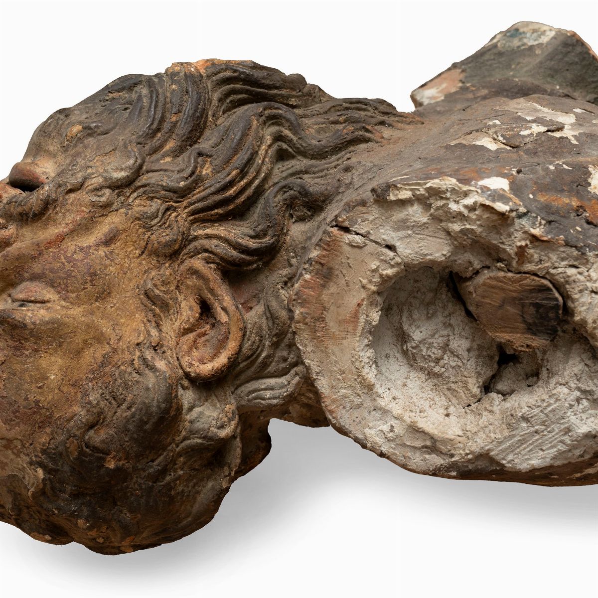 Crocifisso in cartapesta su croce in legno laccata e dorata, secoli XVII - XVIII