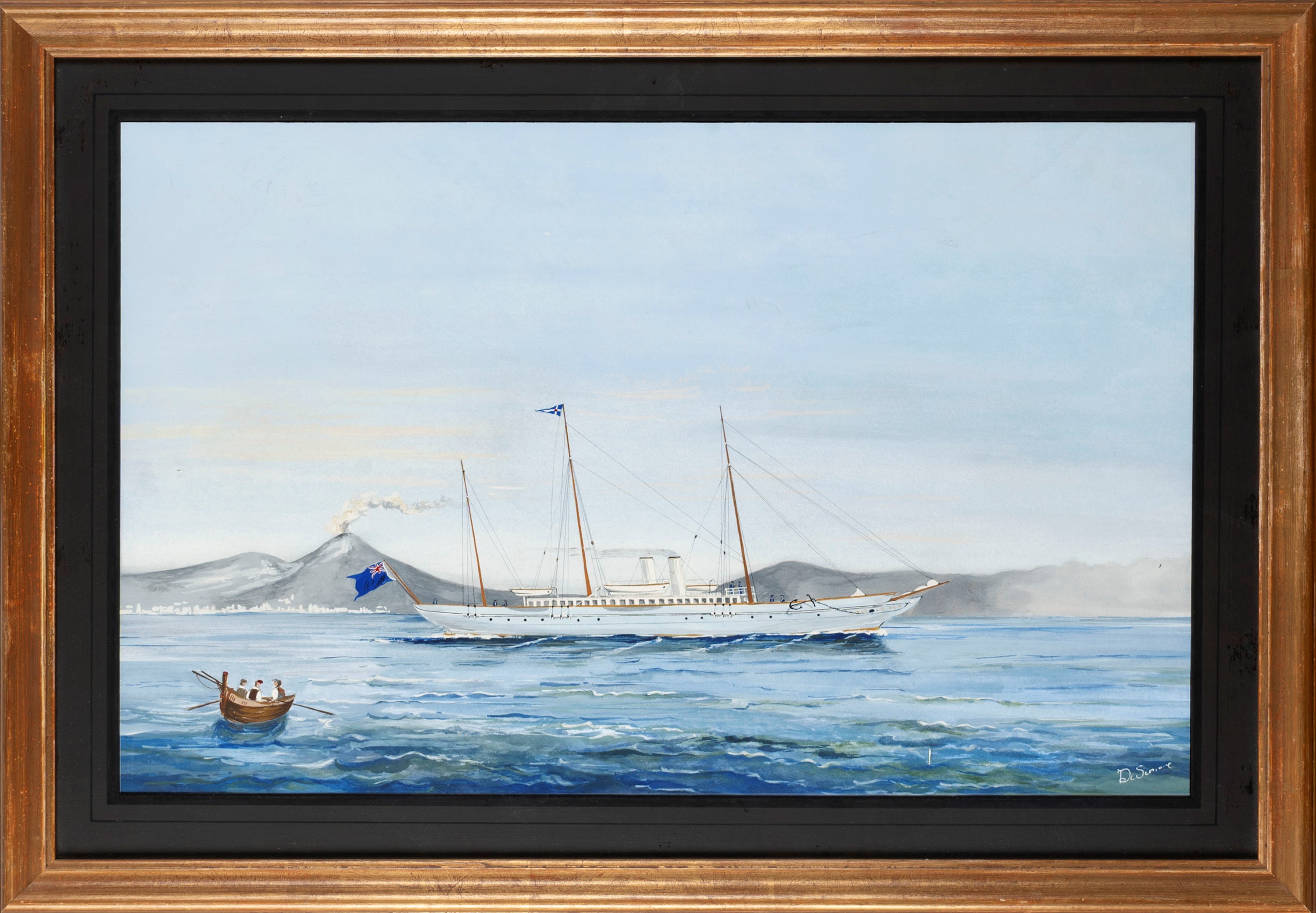 Yacht a vapore a tre alberi con bandiera inglese nel Golfo di Napoli