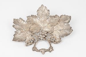 Centrotavola a forma di foglie di vite sbalzate e cesellate, in argento, Napoli secolo XVIII