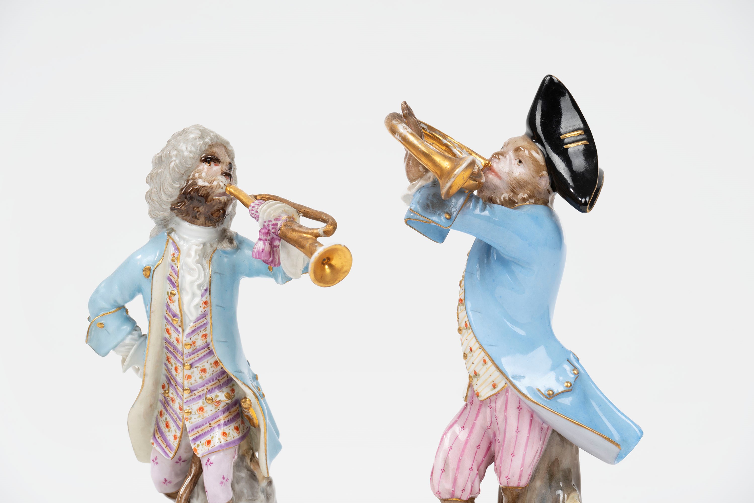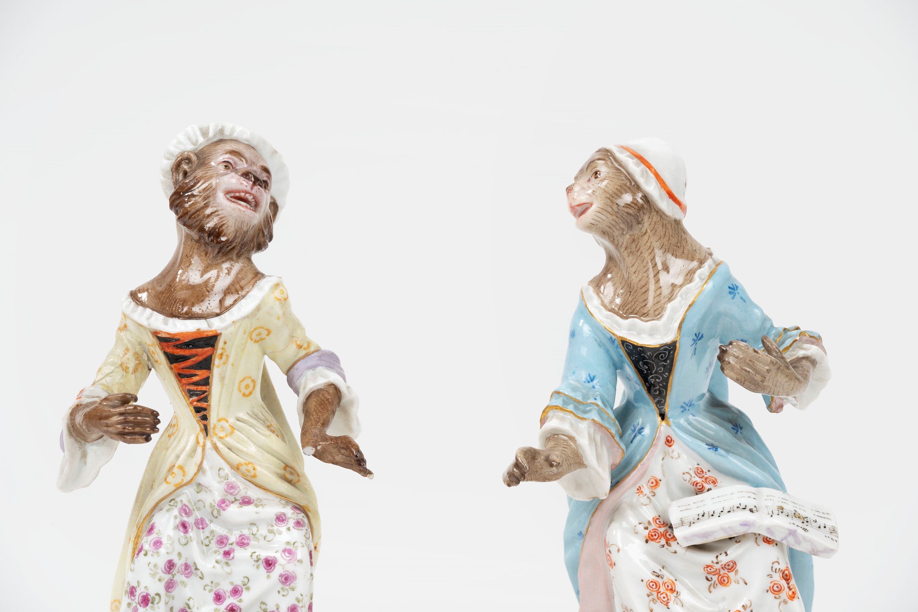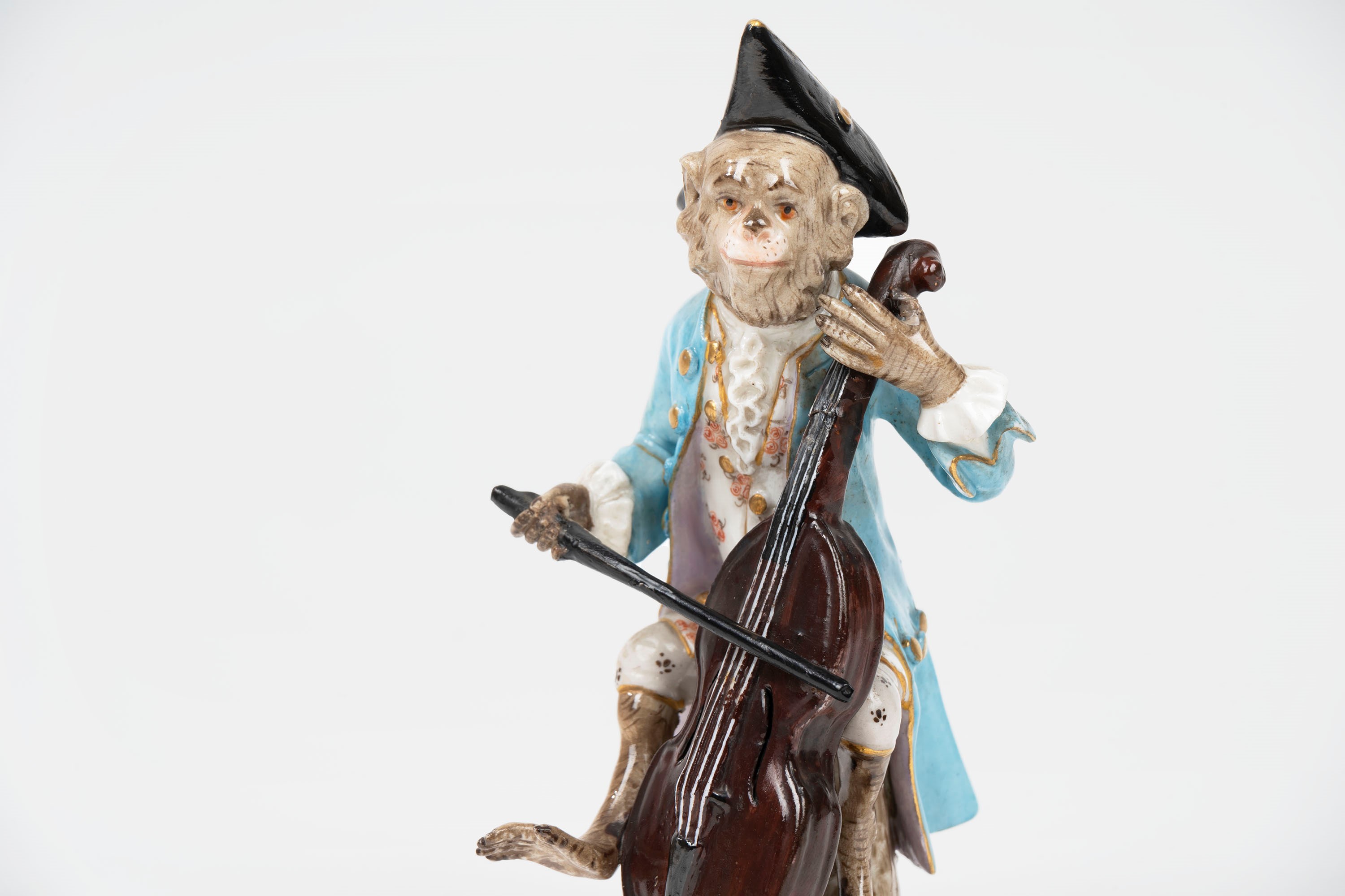 Concertino composto da nove sculture in porcellana policroma raffiguranti scimmie musicanti, manifattura di Meissen, secolo XIX