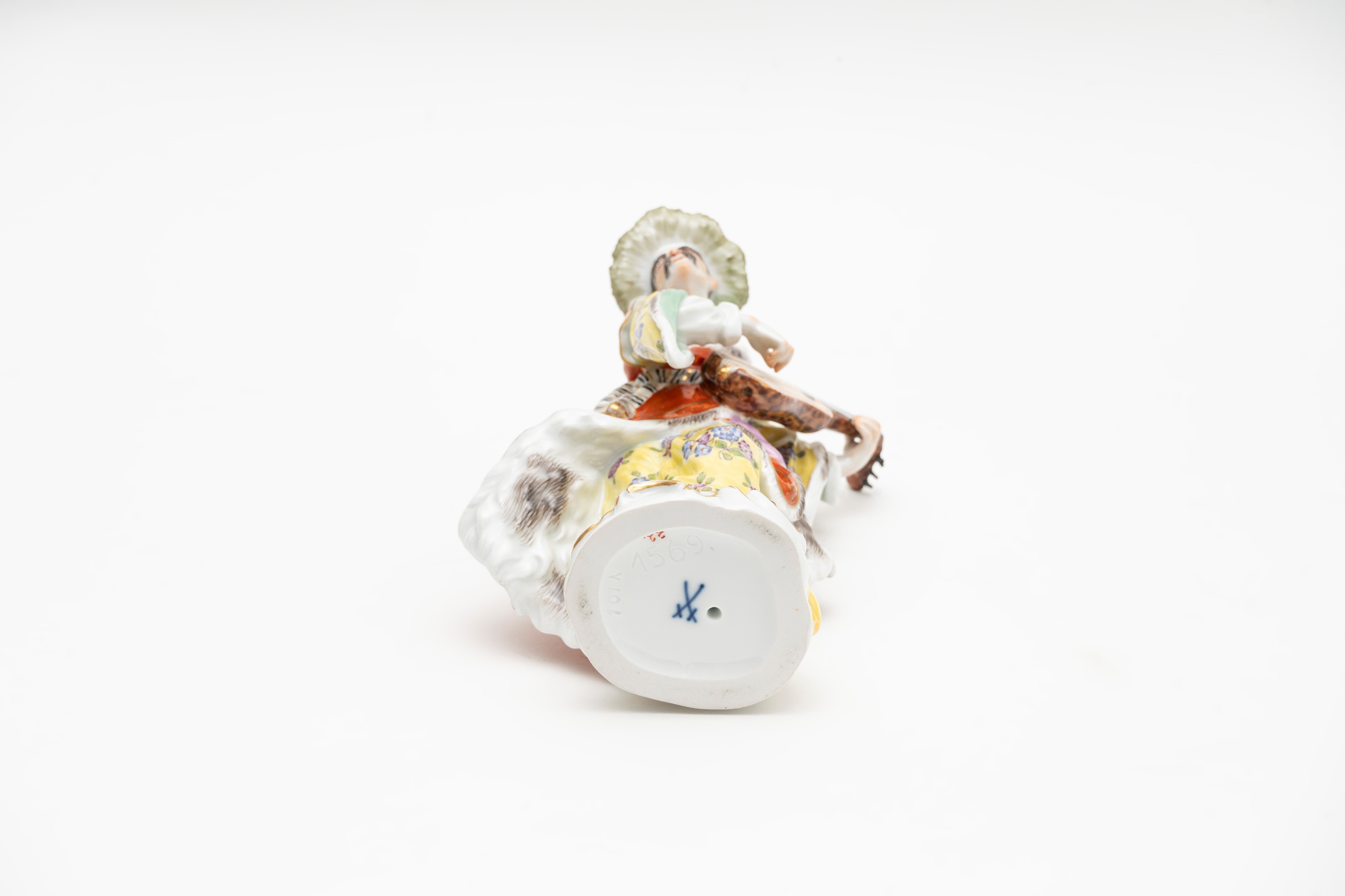 marchio sotto la base con spade incrociate in blu e numero di modello inciso in pasta 1569 e 1576, marchio del pittore e della colorazione