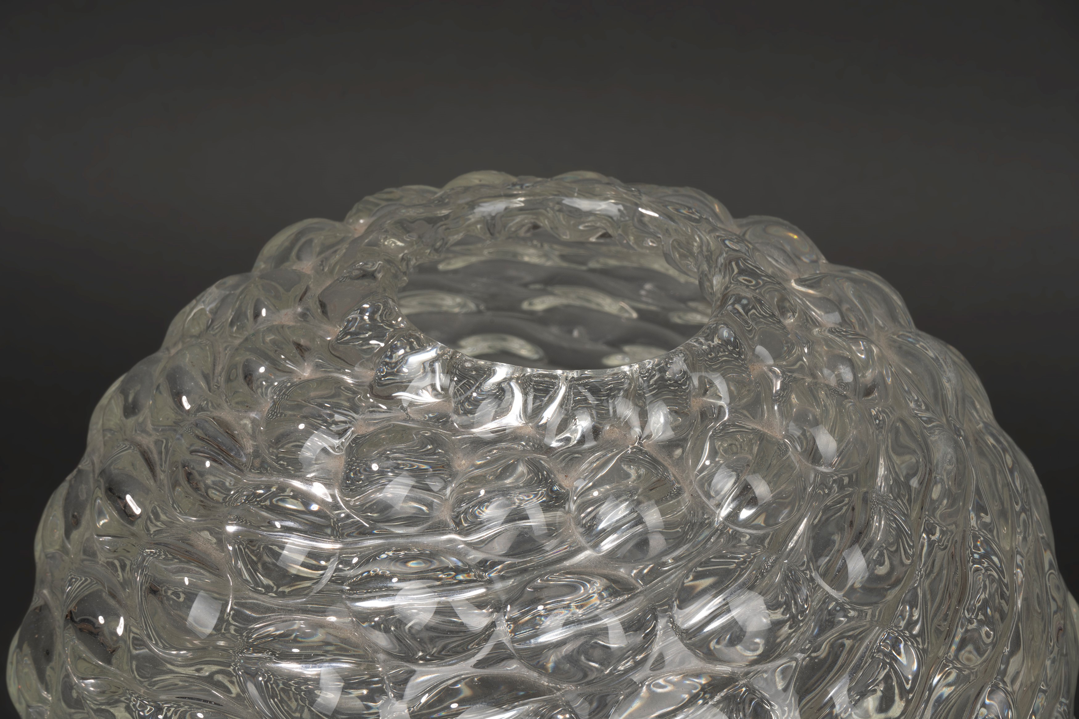Grande vaso sferico dalla serie "Cristallo ottico" in vetro soffiato a stampo, anni '40 del Novecento