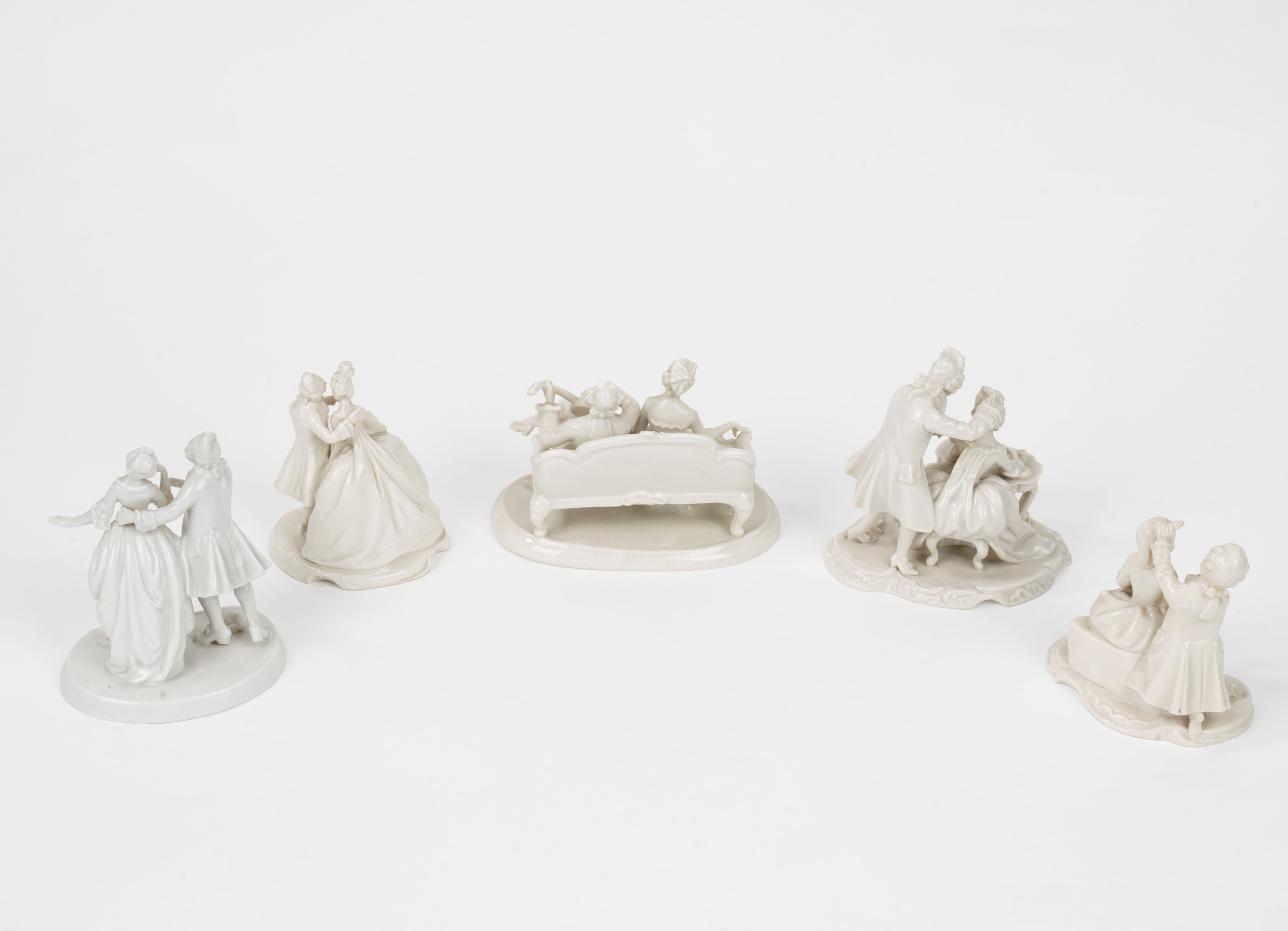 Lotto composto da sette sculture in porcellana bianca, secolo XX