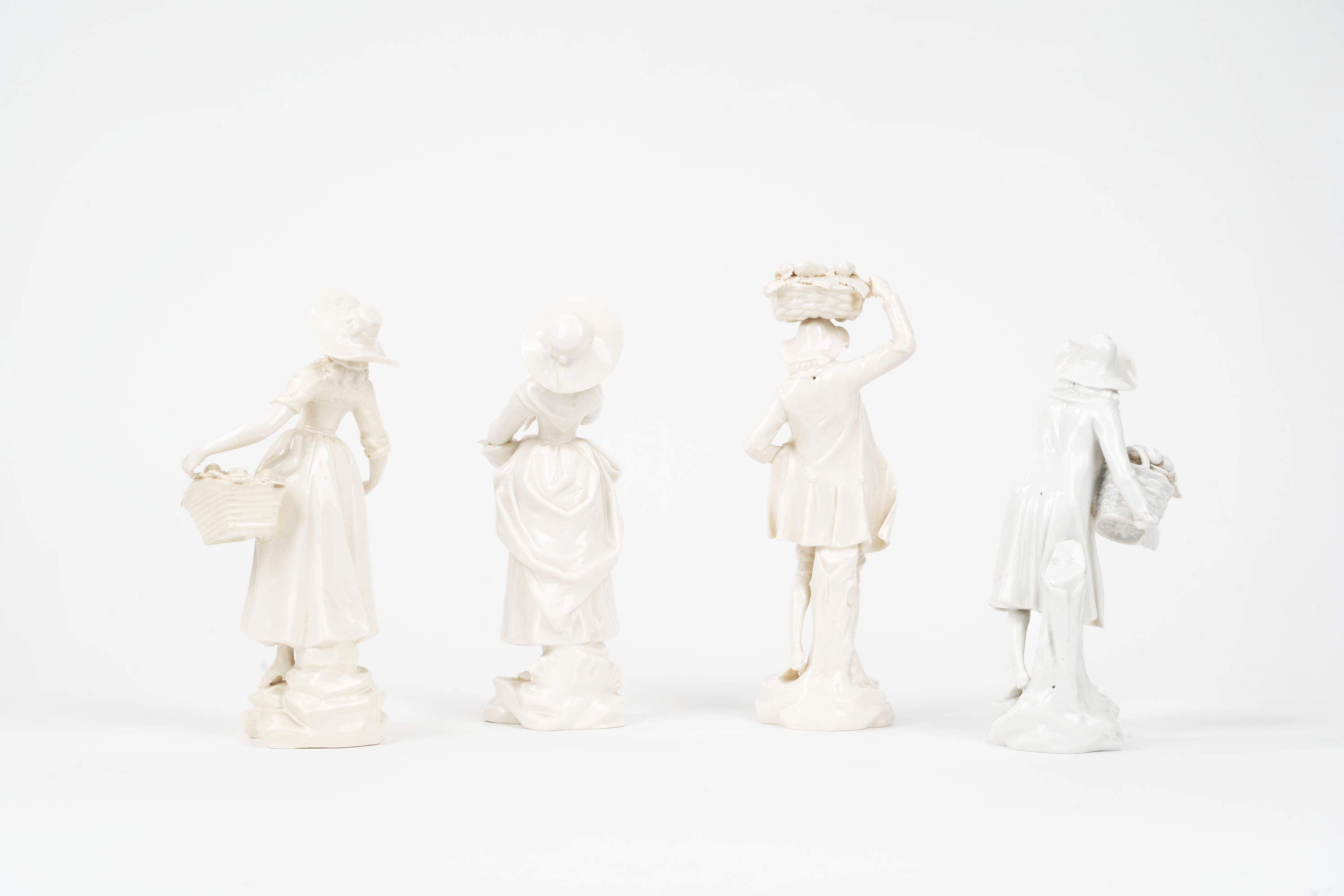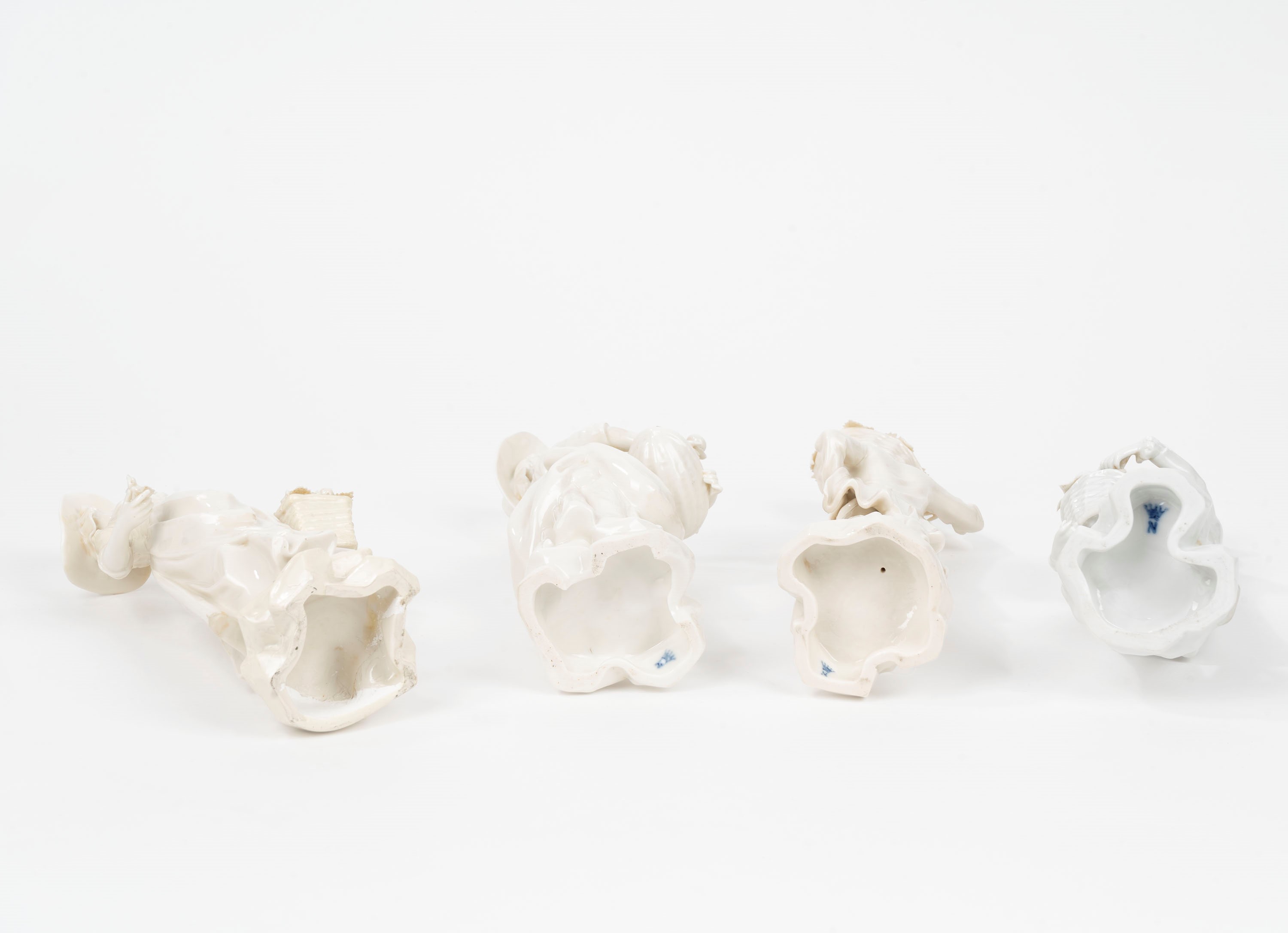 Lotto composto da sette sculture in porcellana bianca, secolo XX