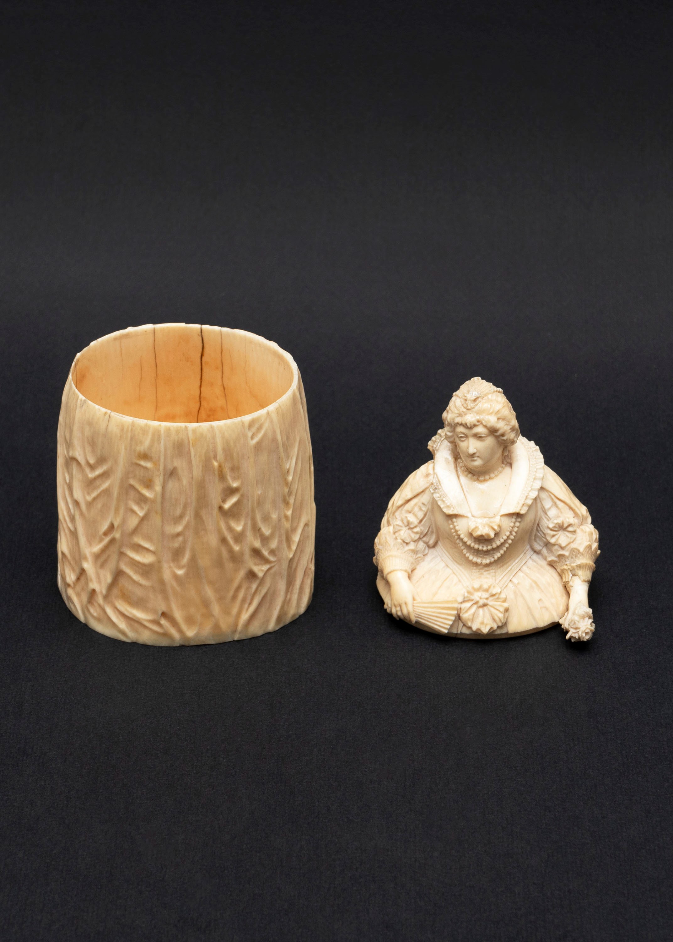 ☼ Scatola in avorio raffigurante Maria de' Medici, manifattura di Dieppe, secolo XIX