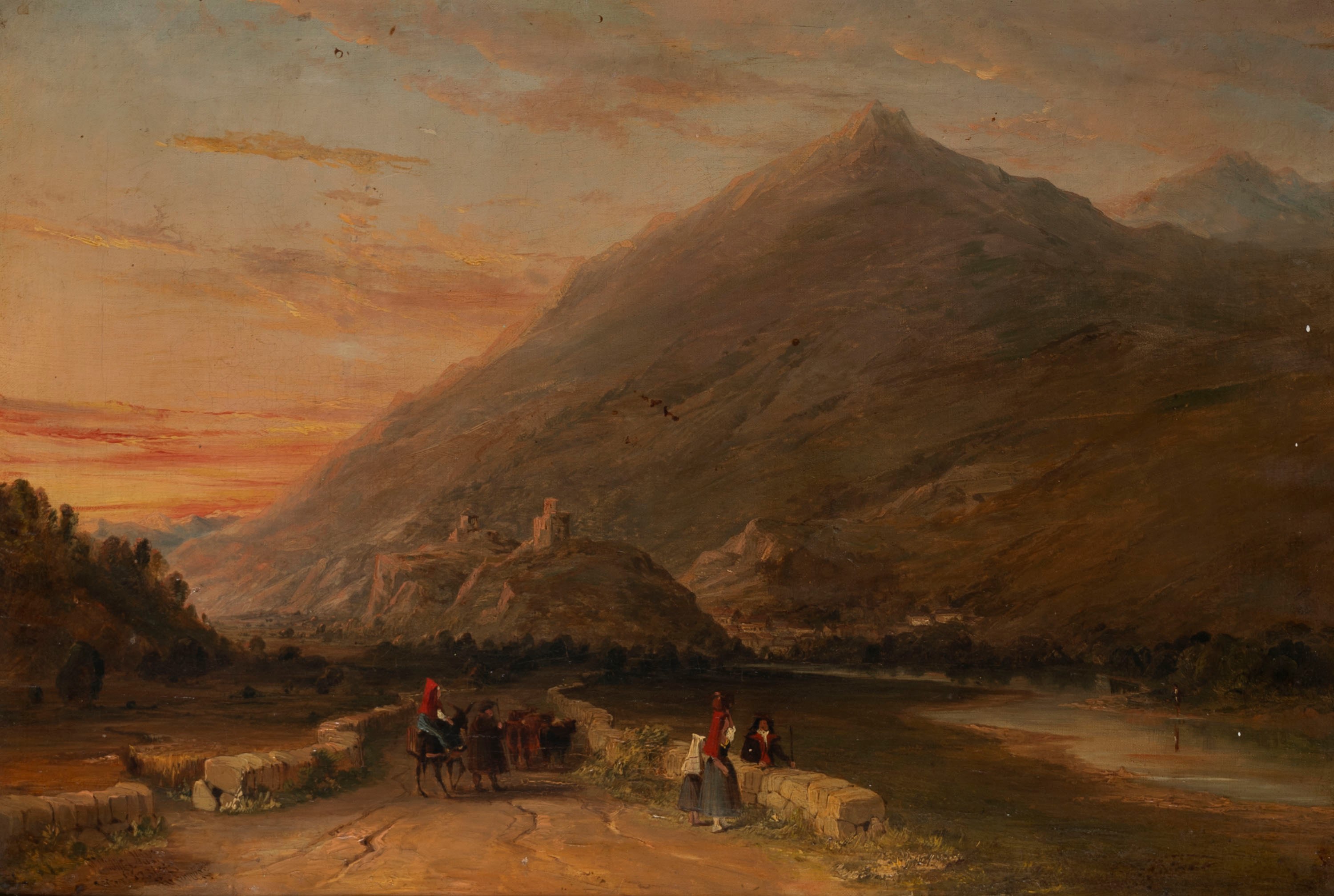 Paesaggio montano con viandanti