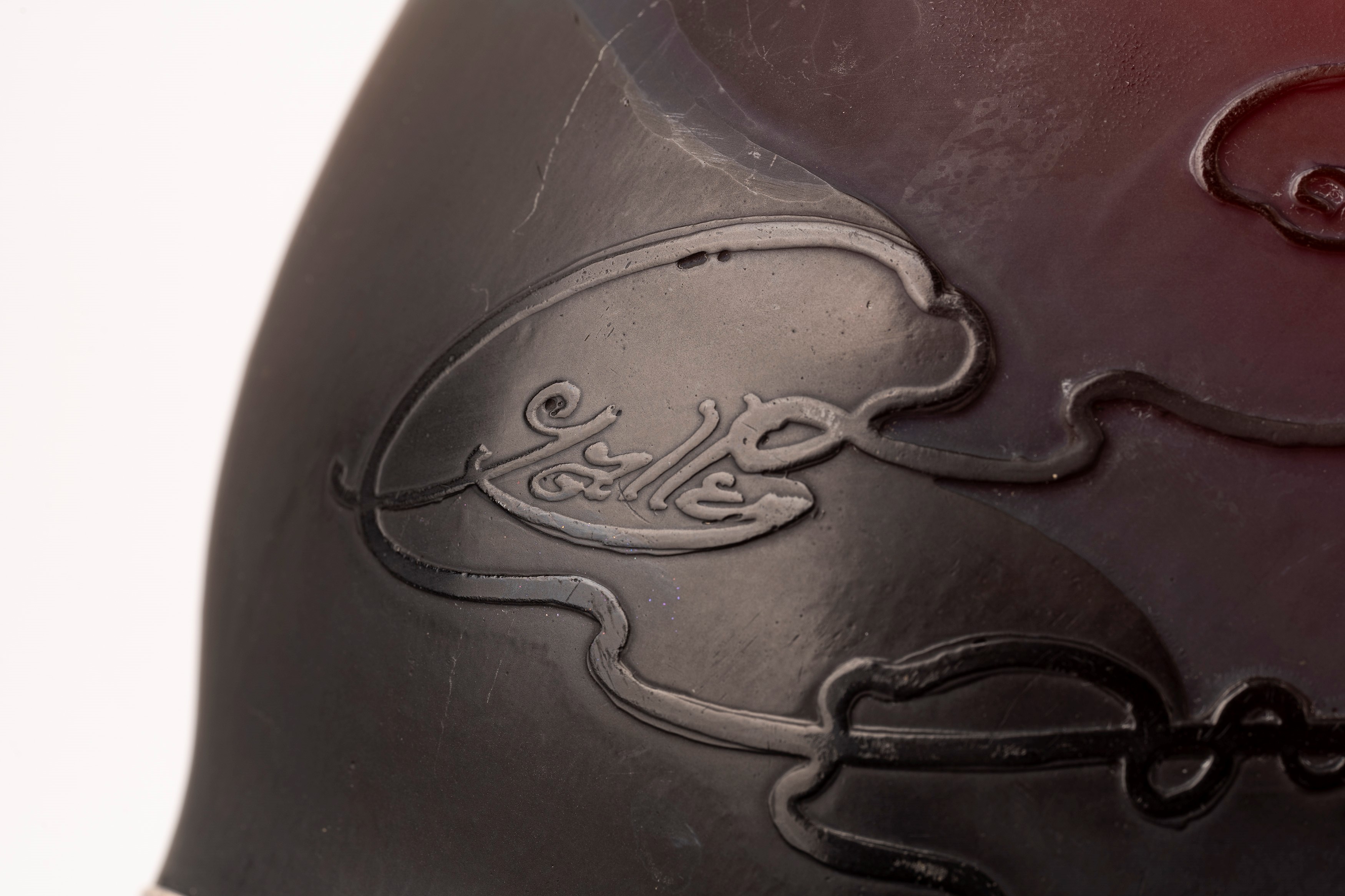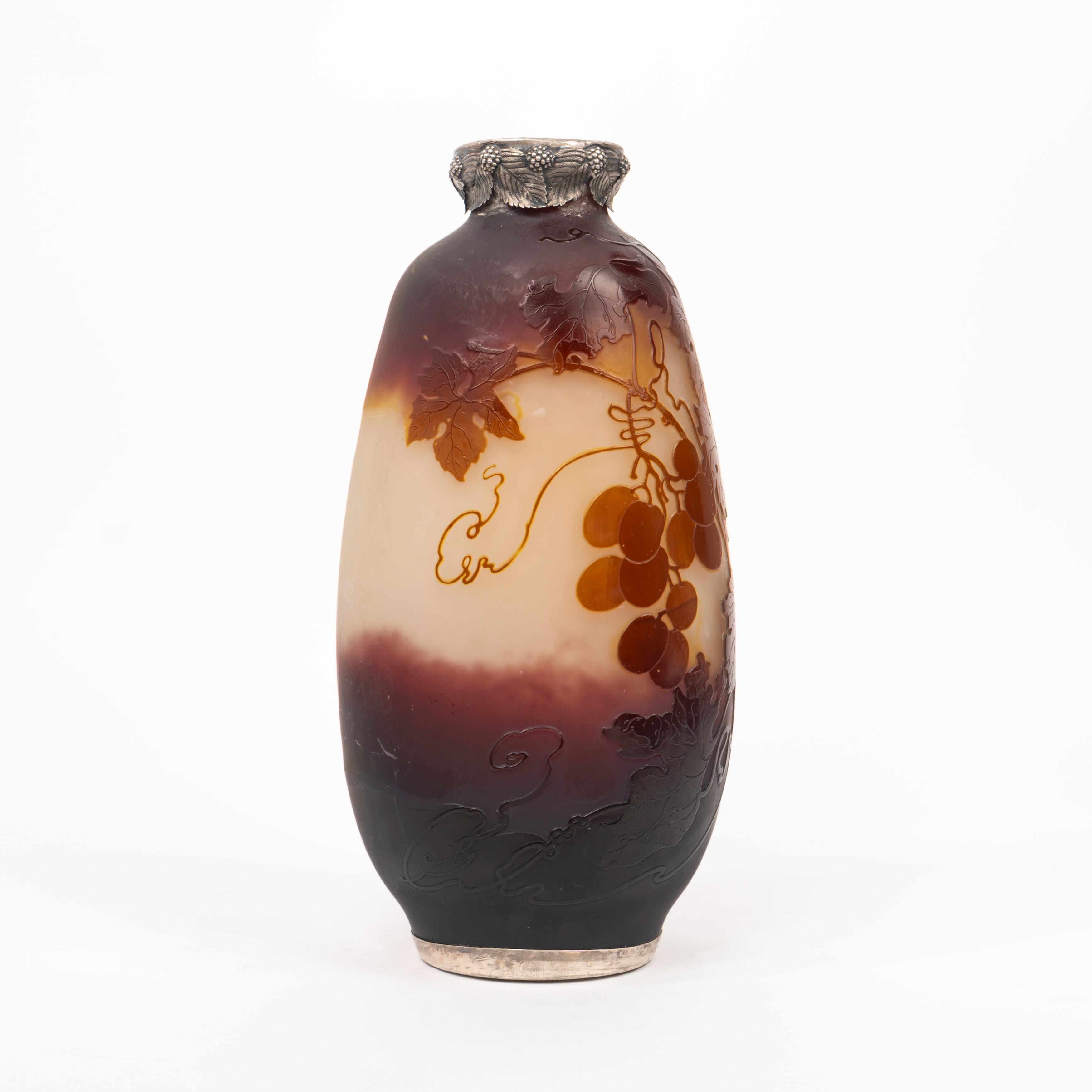 lavorato all'acido con decori a tralci di vite e uva, collo e base in argento