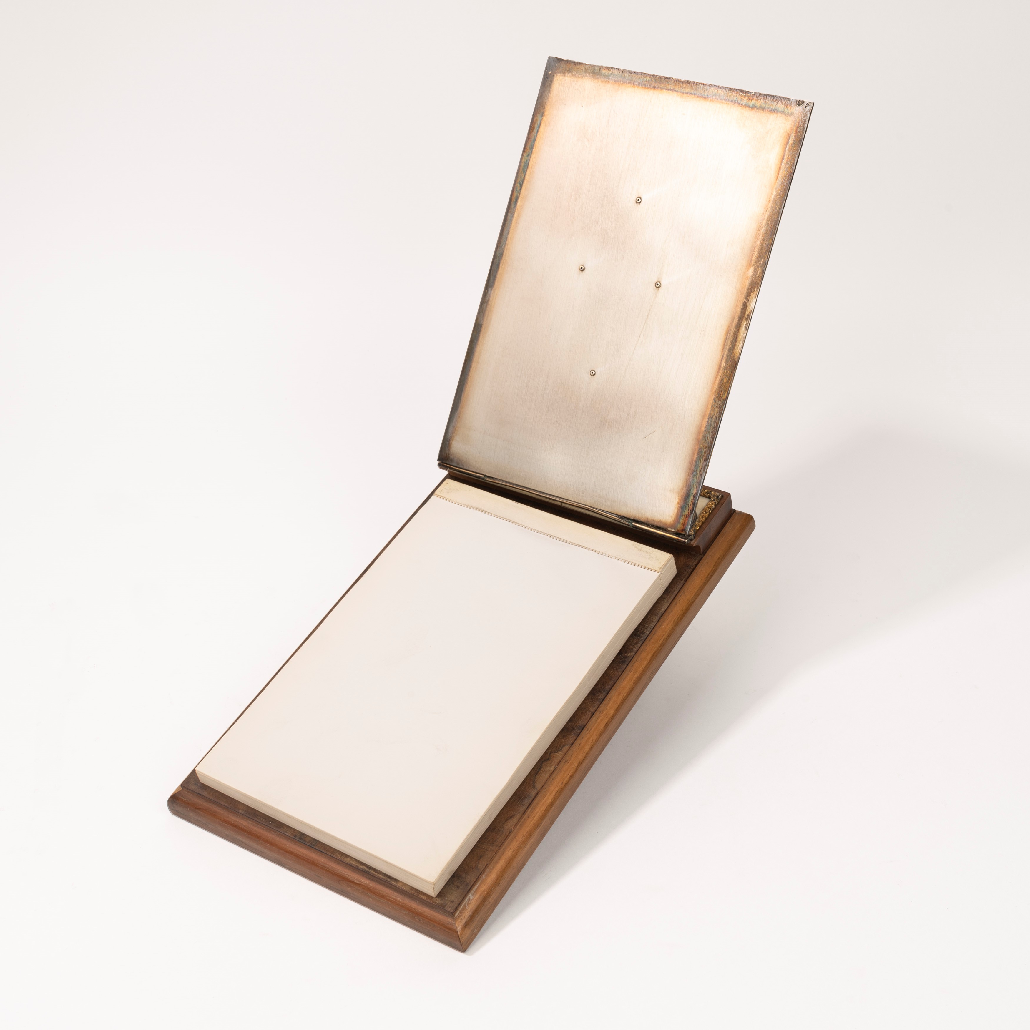 copertina con mascherone centrale, corniole incastonate e stemma araldico