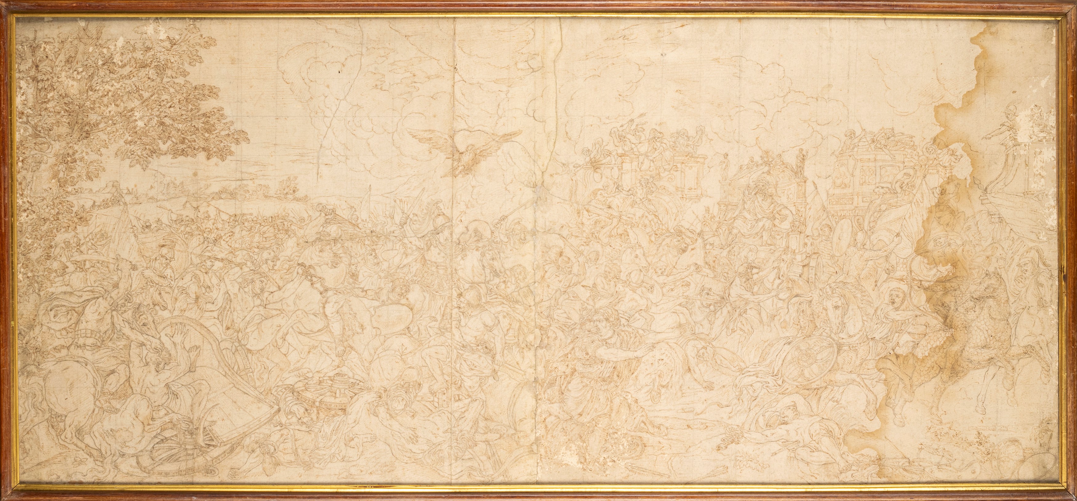 Antico disegno raffigurante Scena di battaglia, da un'invenzione di Charles Le Brun