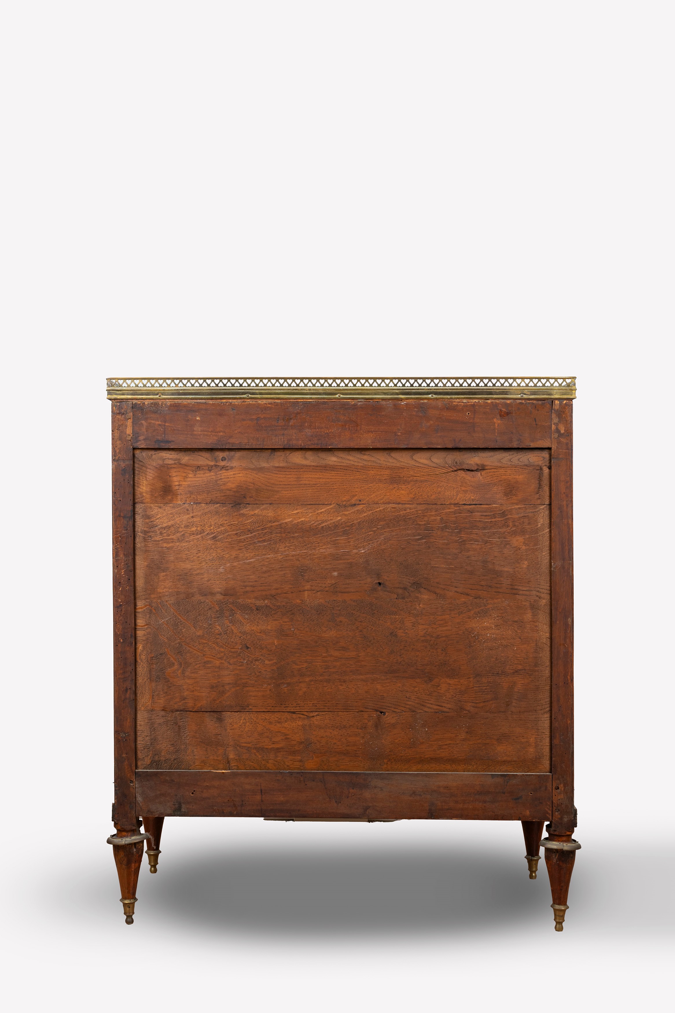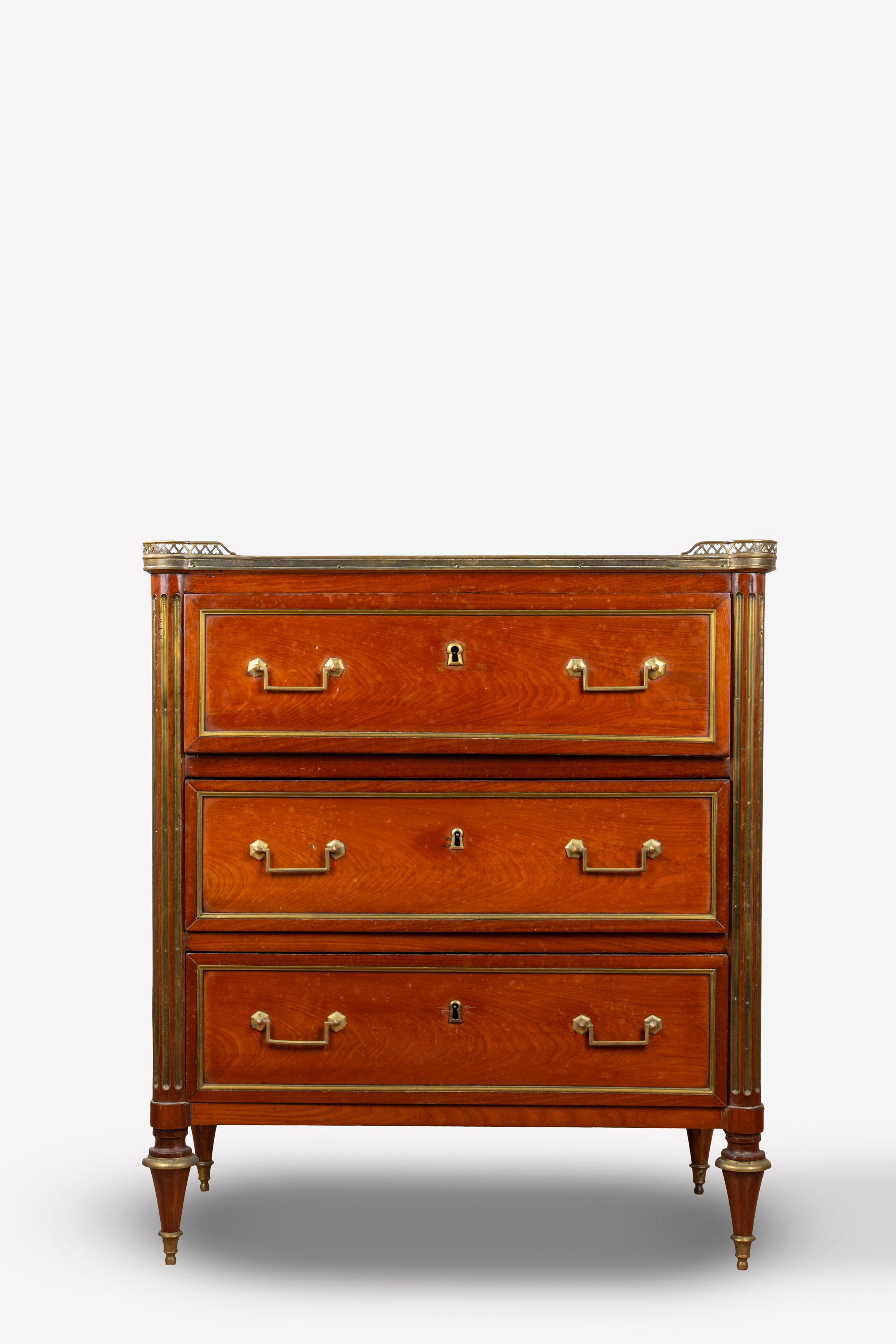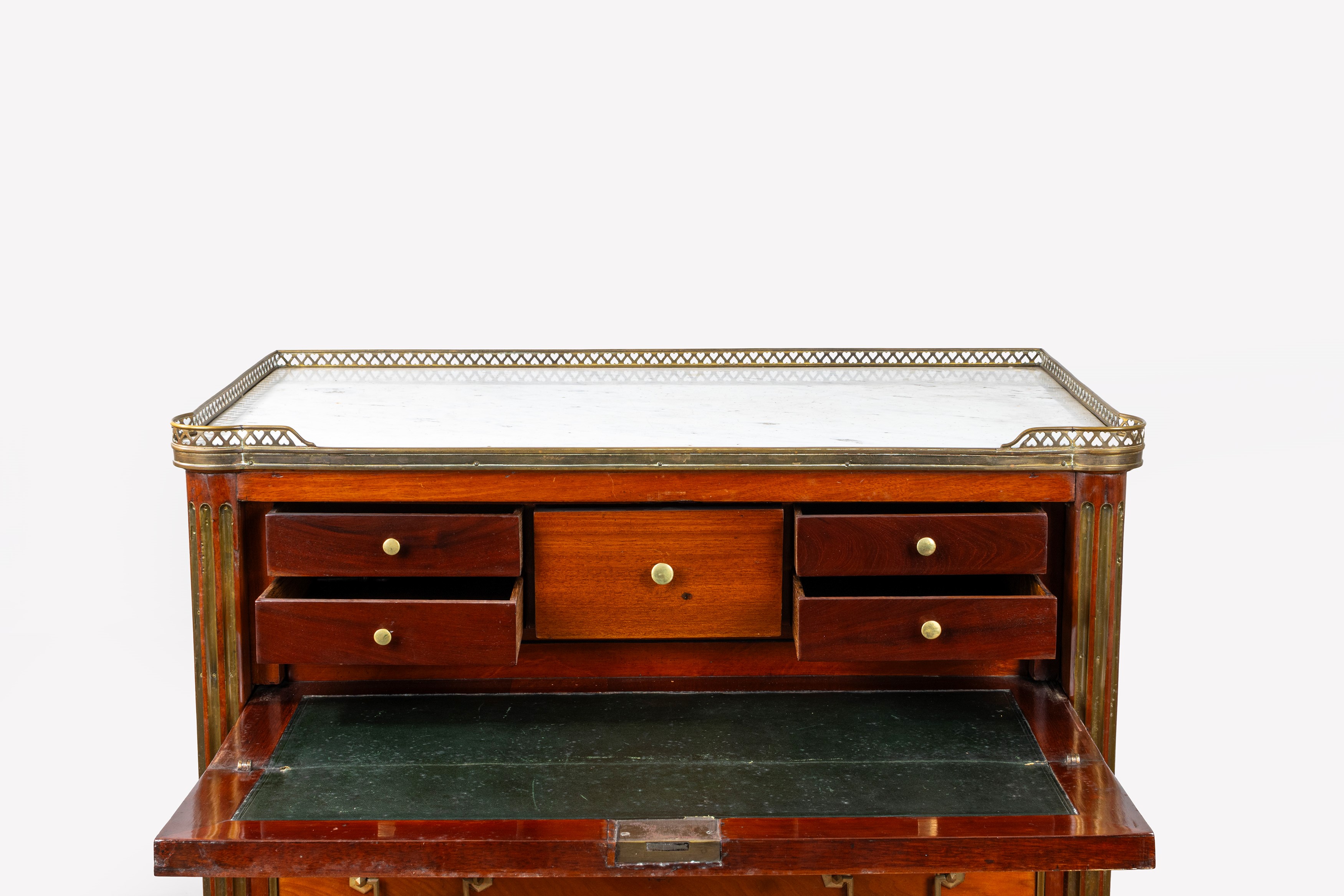 fronte con tre cassetti, di cui il superiore apribile a scrittoio e celante quattro piccoli tiretti laterali ed uno centrale