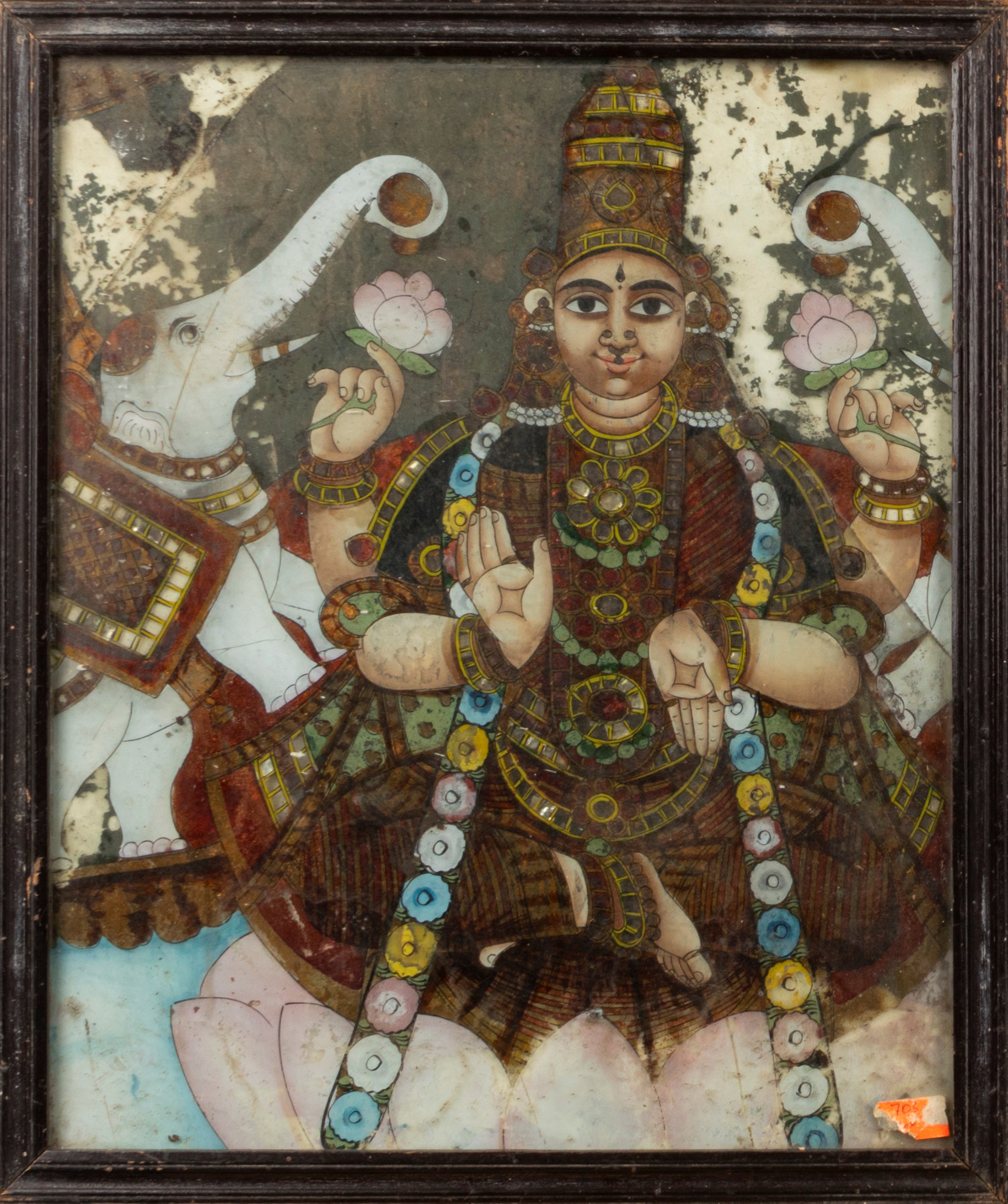 raffiguranti Lakshmi assisa su fiore di loto tra due elefanti e il matrimonio tra Rama e Sita