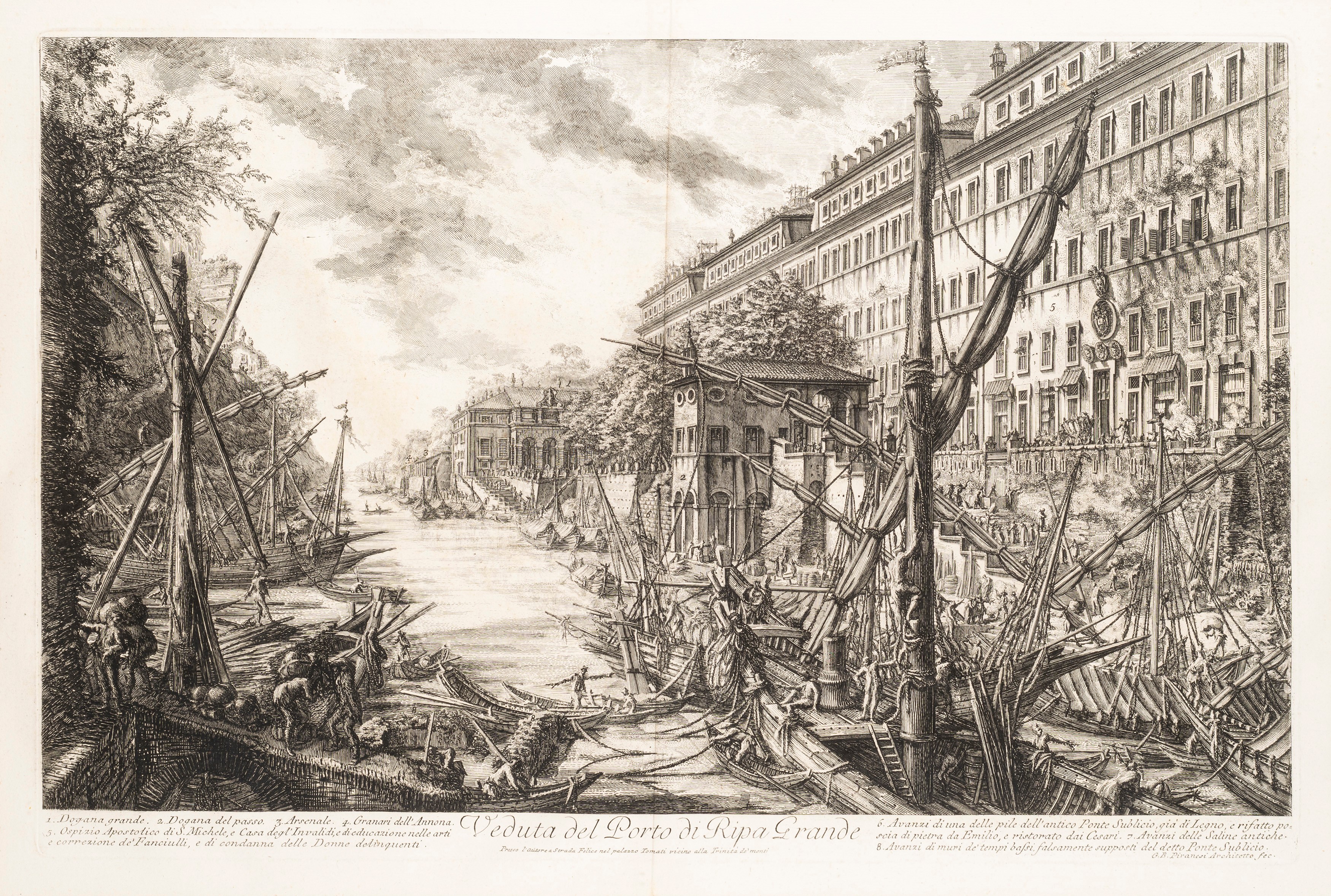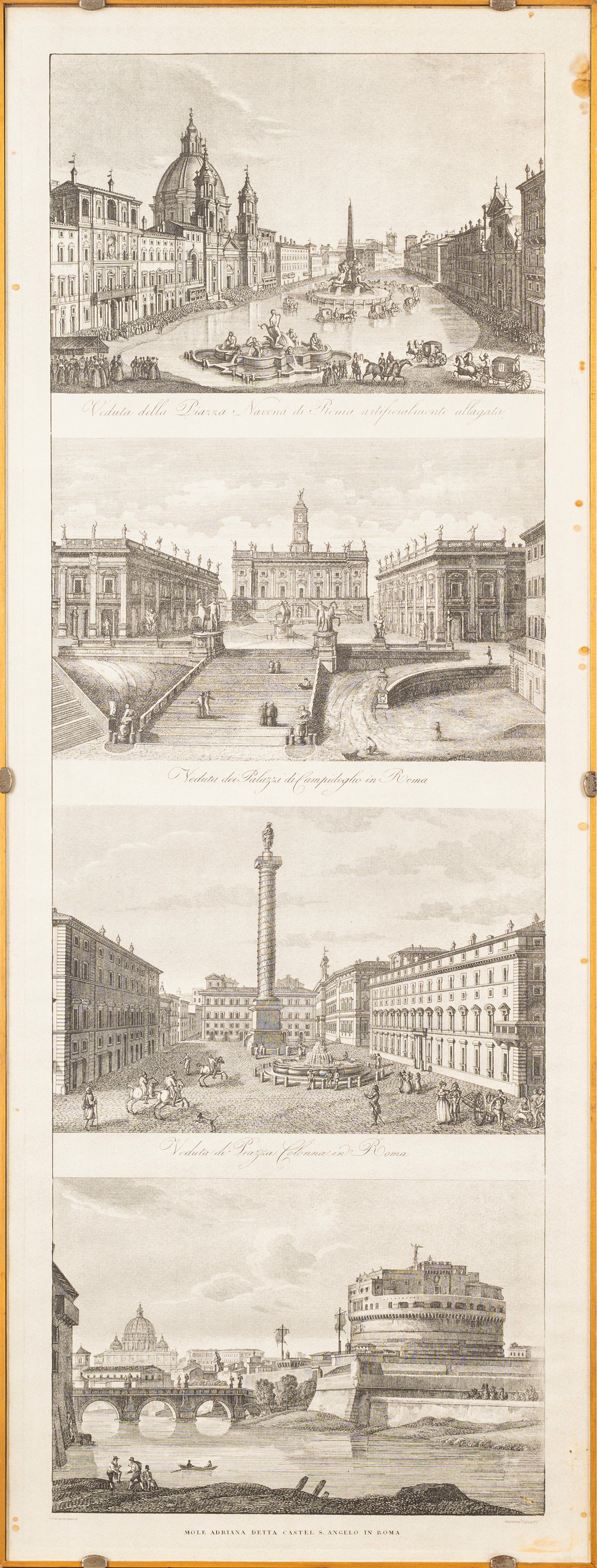 cm 74,5 x 98 (piazza Bocca della Verità); cm 72 x 97 (veduta del porto di Ripa Grande); cm 87,5 x 33 (quattro vedute)