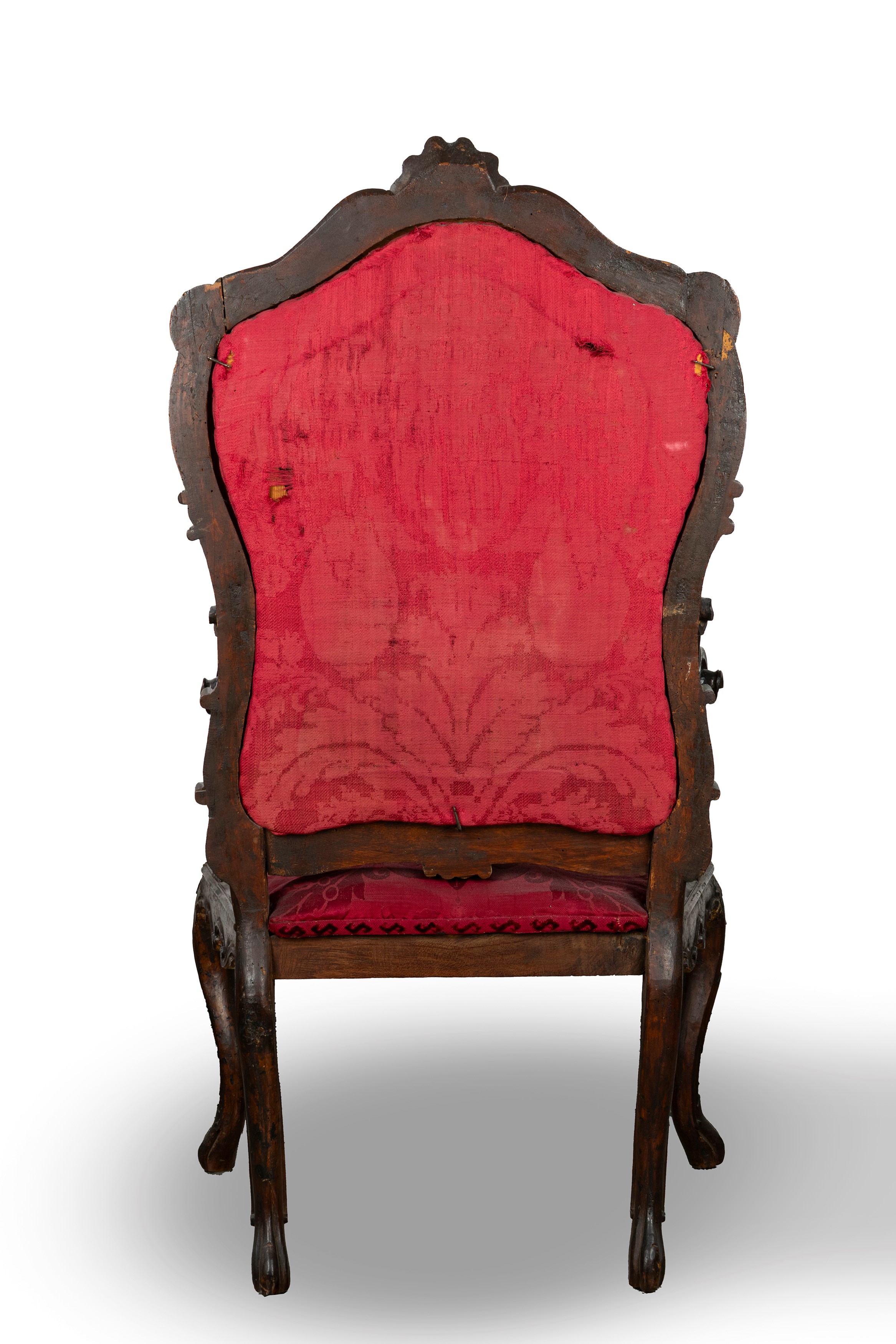 di forma mossa, braccioli terminanti a ricciolo, schienale sormontato da valva di conchiglia (restauri)