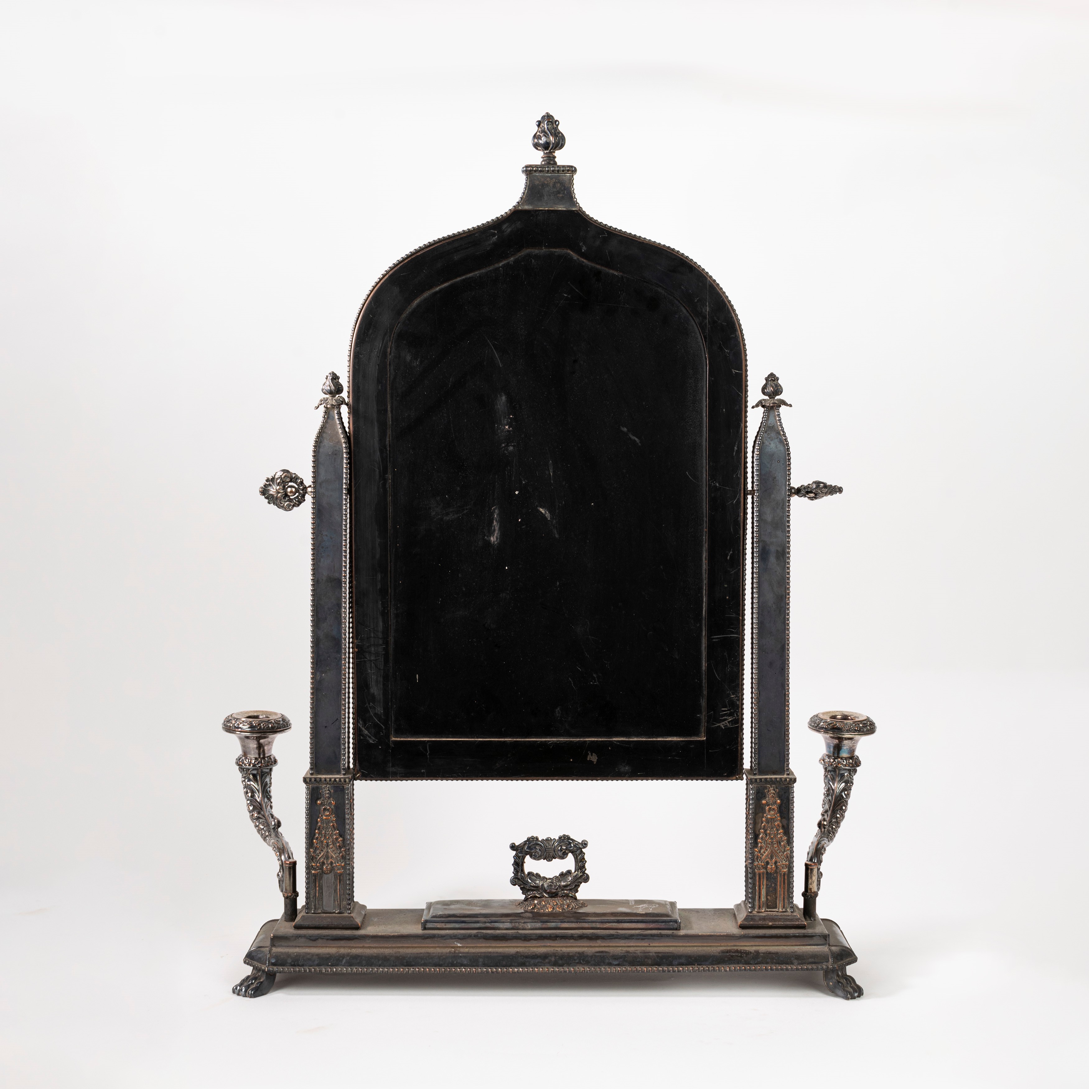 Psiche da tavolo con specchio basculante in metallo argentato