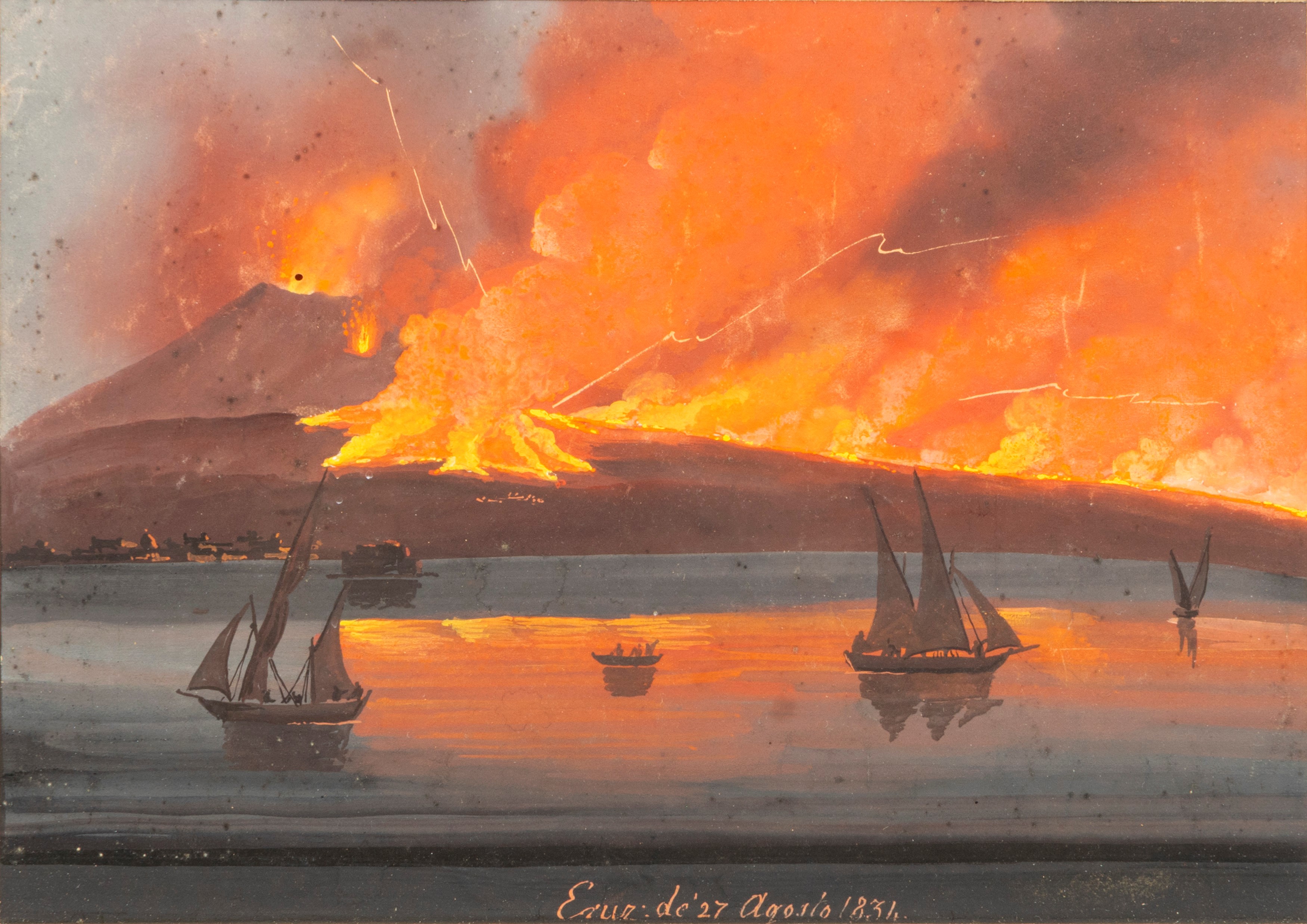 Titolate e datate: "Eruzione de 22 Ott. 1822; Eruz de 27 Agosto 1834". In cornici coeve lastronate e con applicazioni angolari a rosone