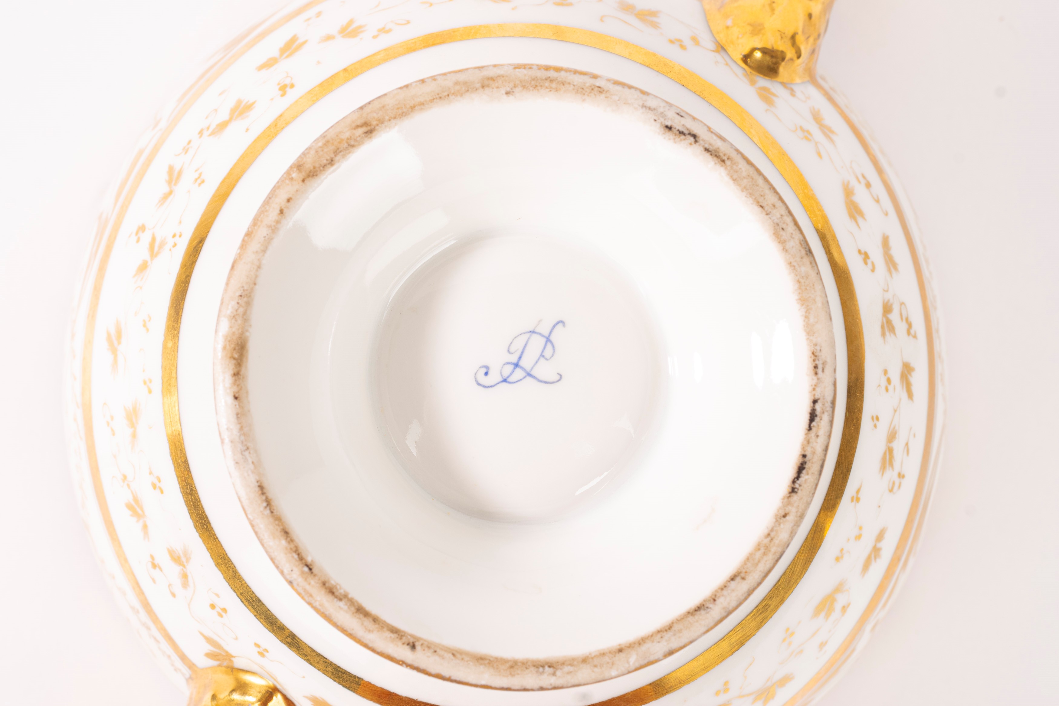 Tazza da puerpera con piatto, in porcellana bianca e oro, Francia, secolo XIX