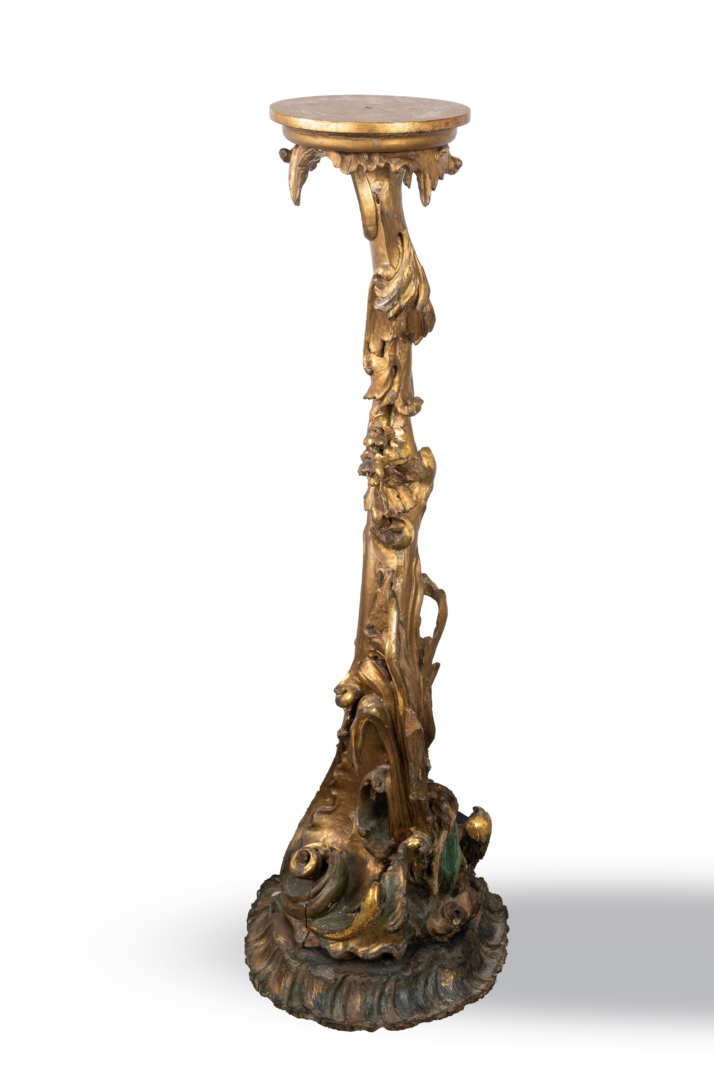 Base in legno intagliato e dorato con motivi a rocaille, secolo XIX
