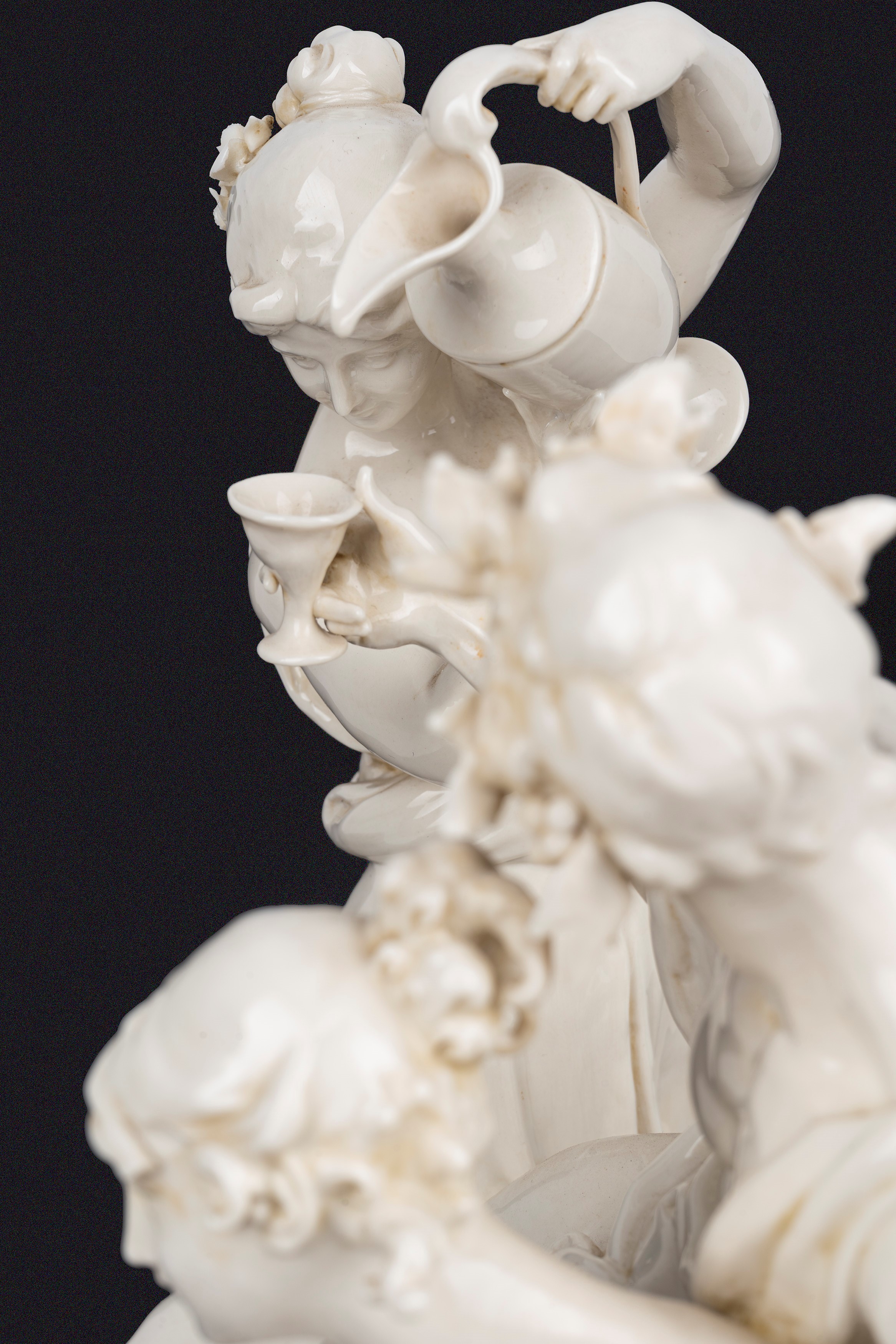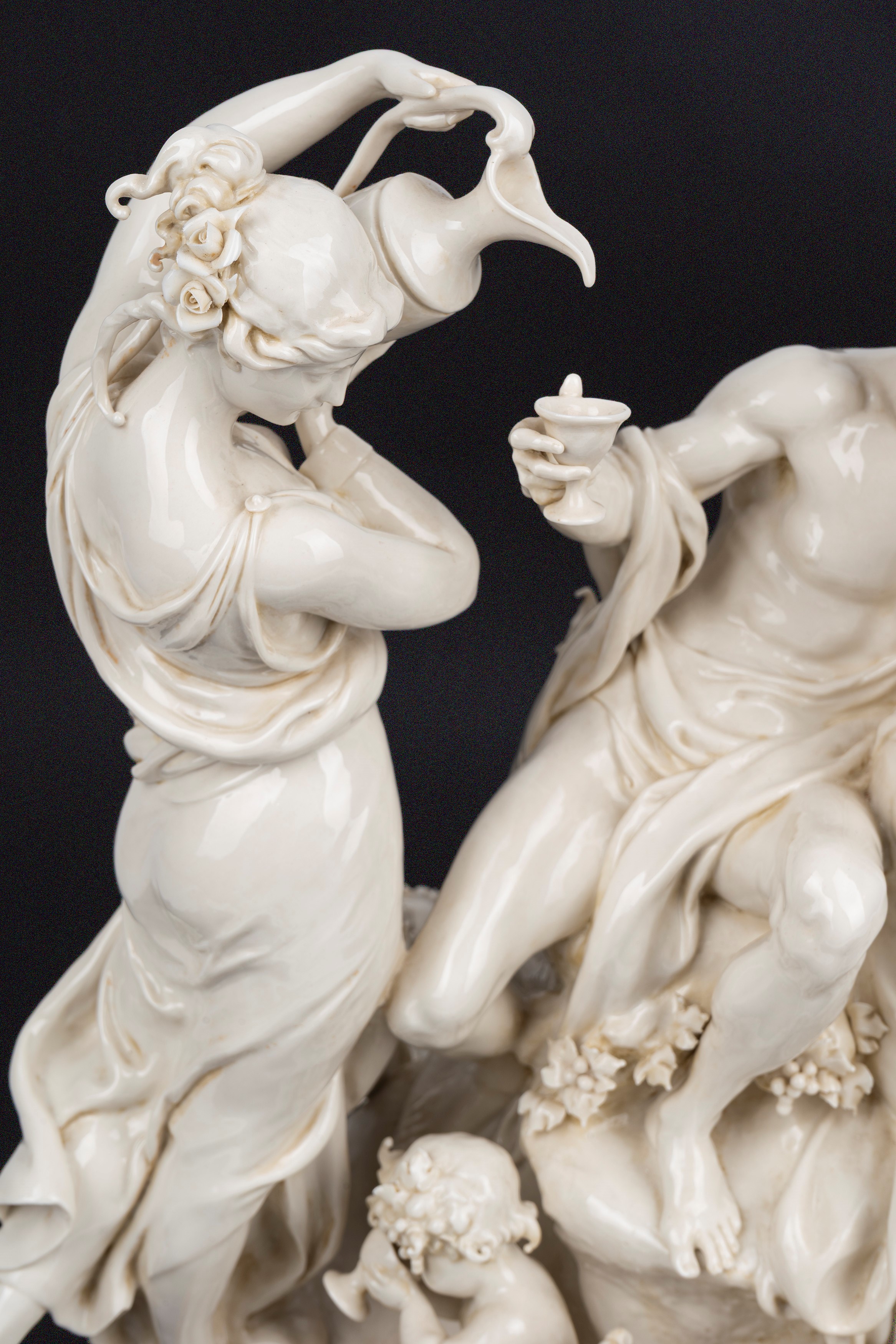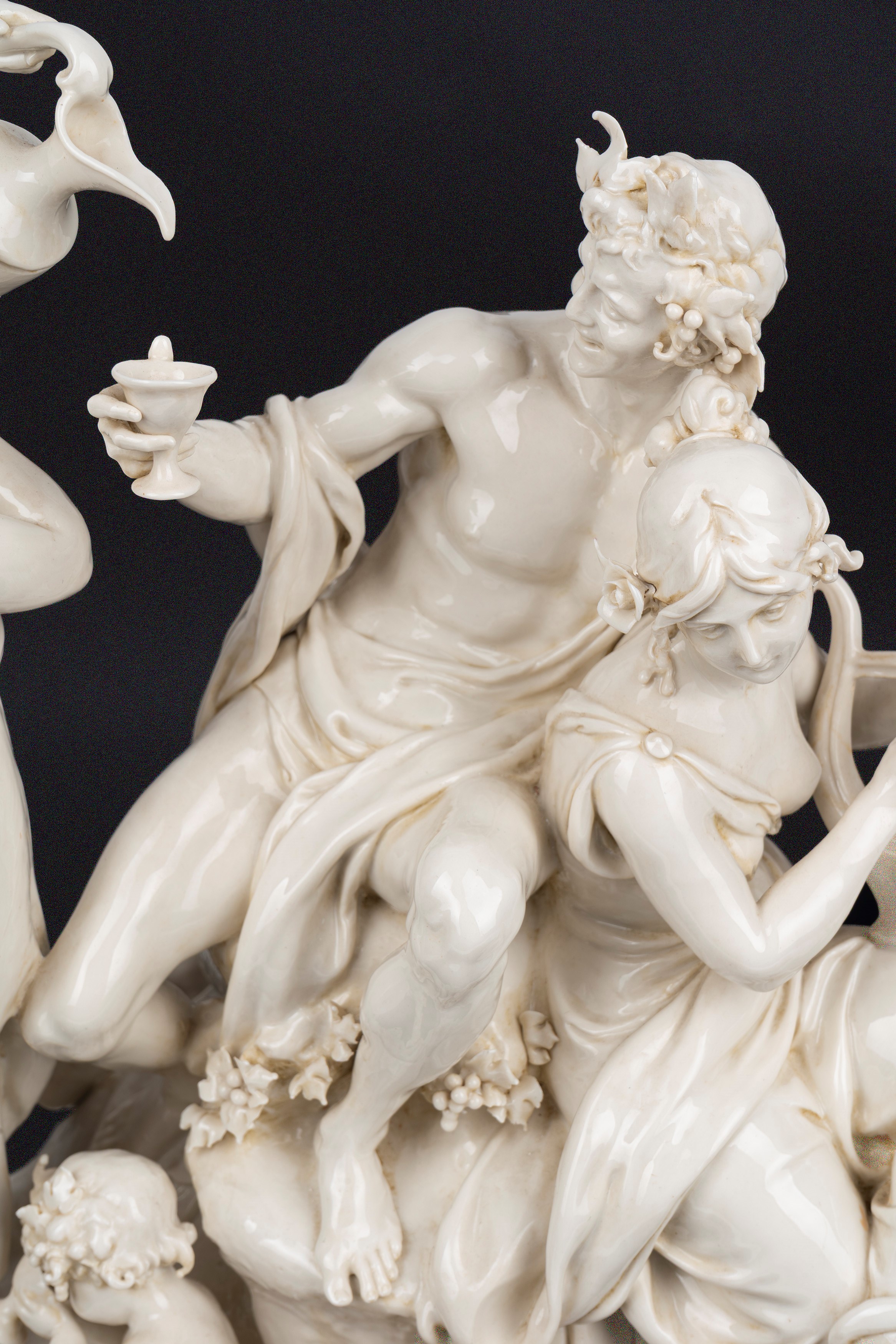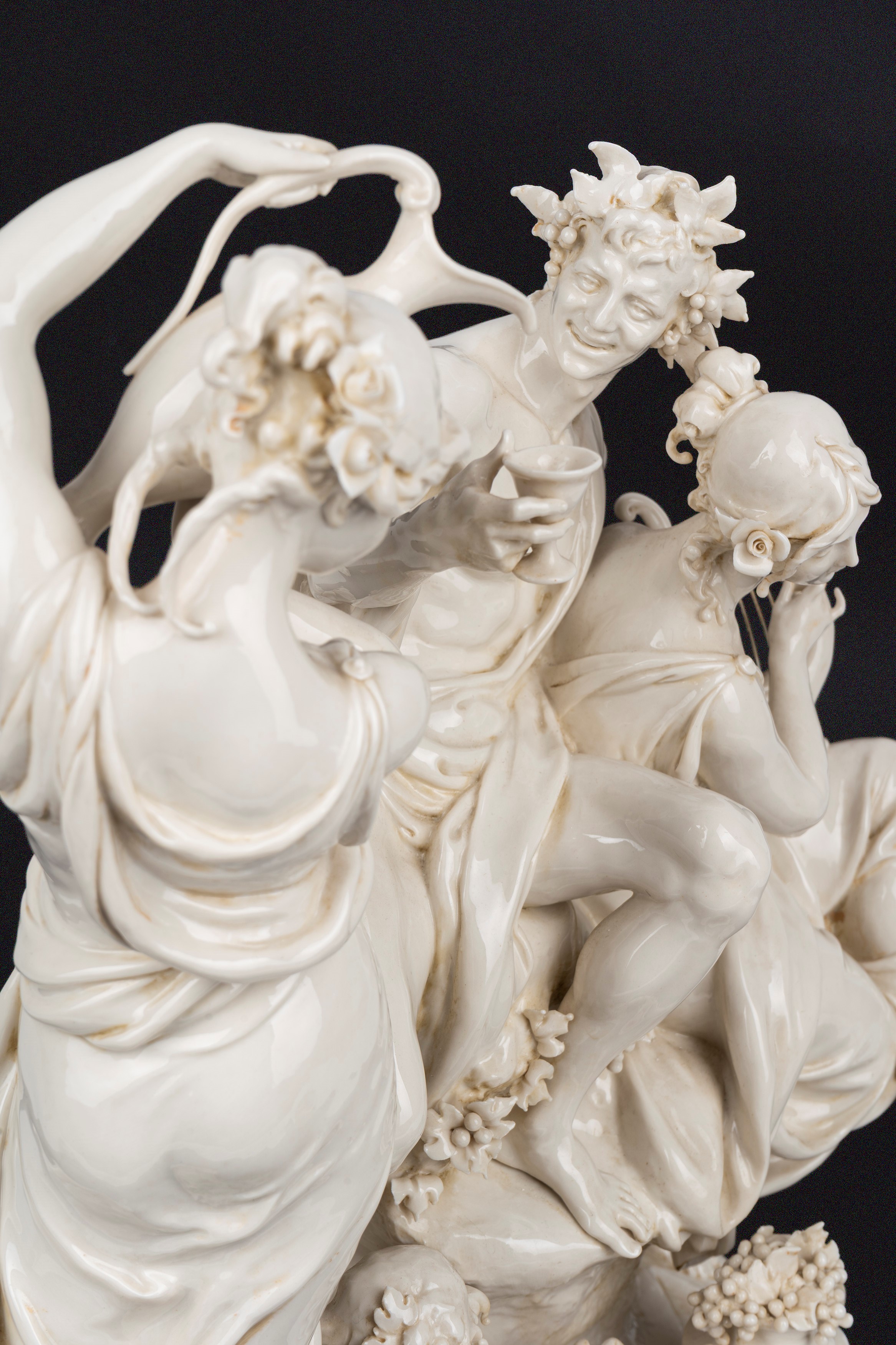Gruppo scultoreo in maiolica bianca di Capodimonte, raffigurante Baccanale