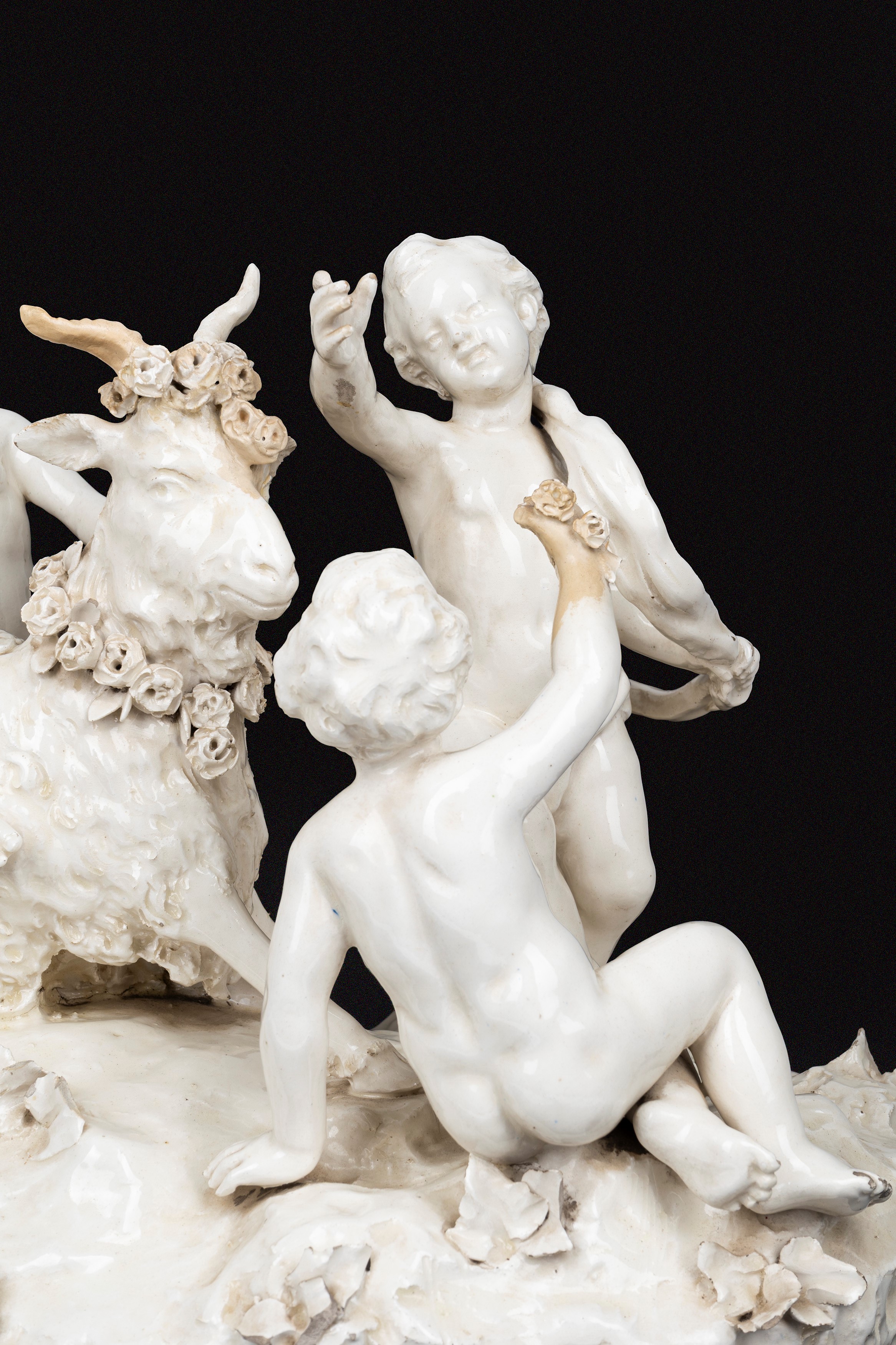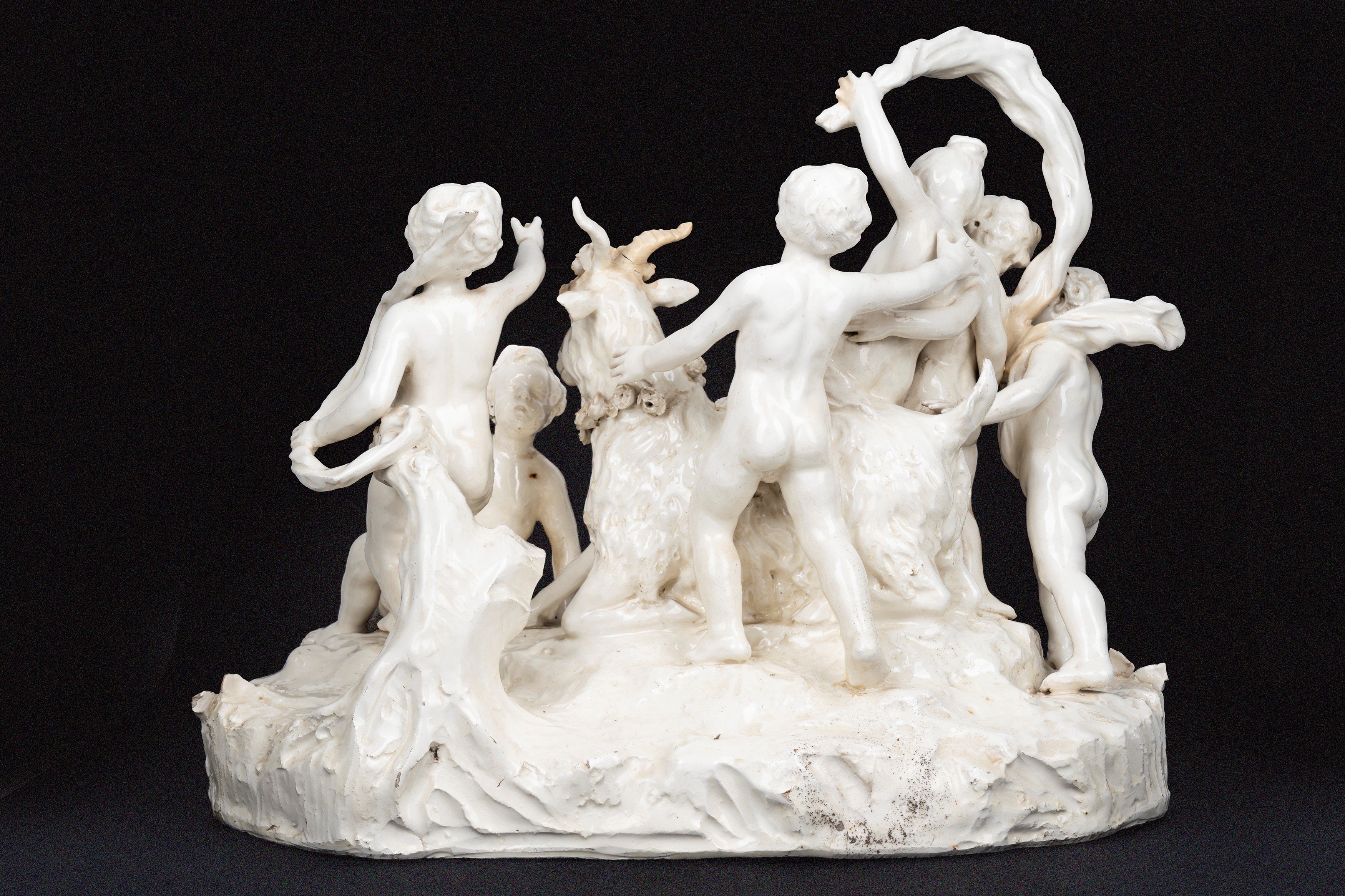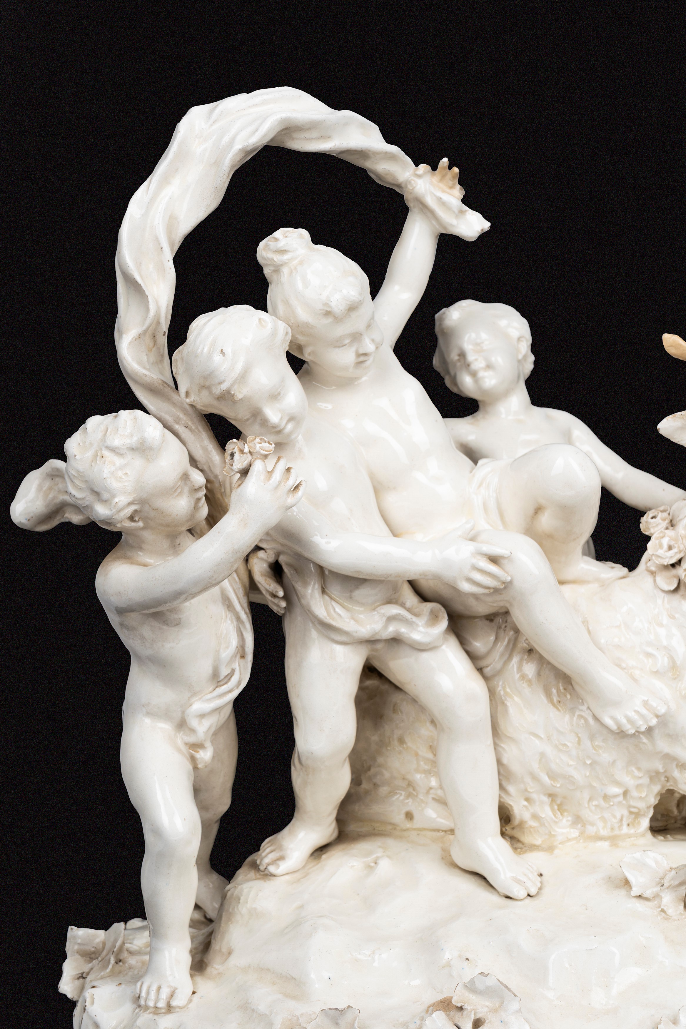 Grande gruppo scultoreo in maiolica bianca di Capodimonte con giochi di putti, Napoli secolo XVIII