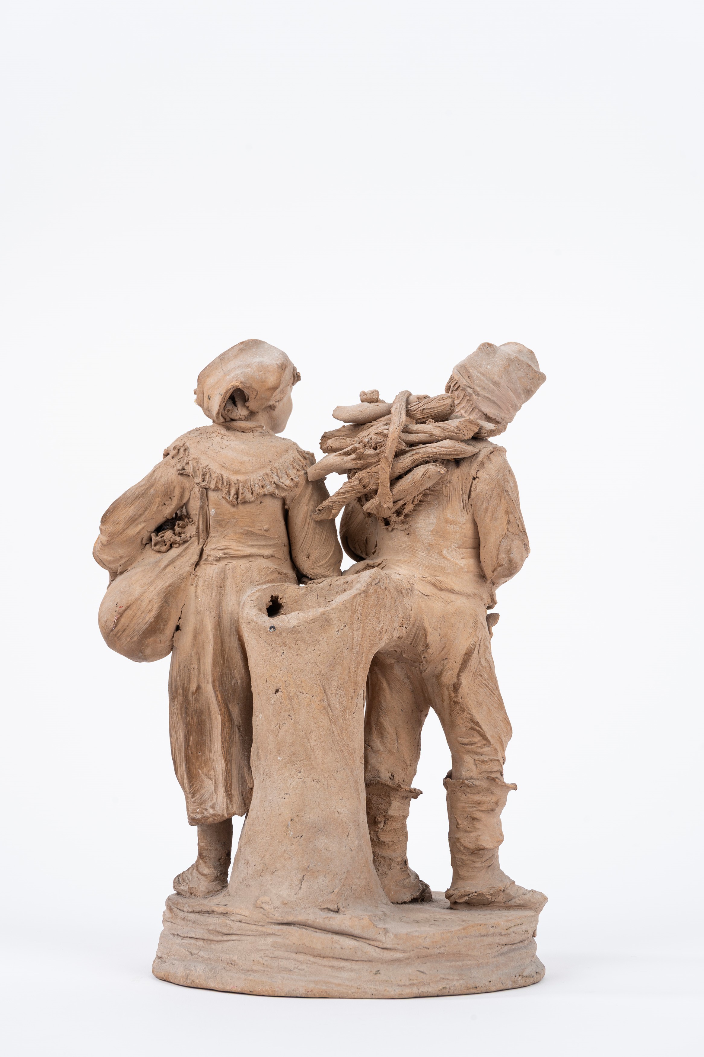 Gruppo scultoreo in terracotta raffigurante due contadini, Giacomo Vaccaro Caltagirone, fine secolo XIX