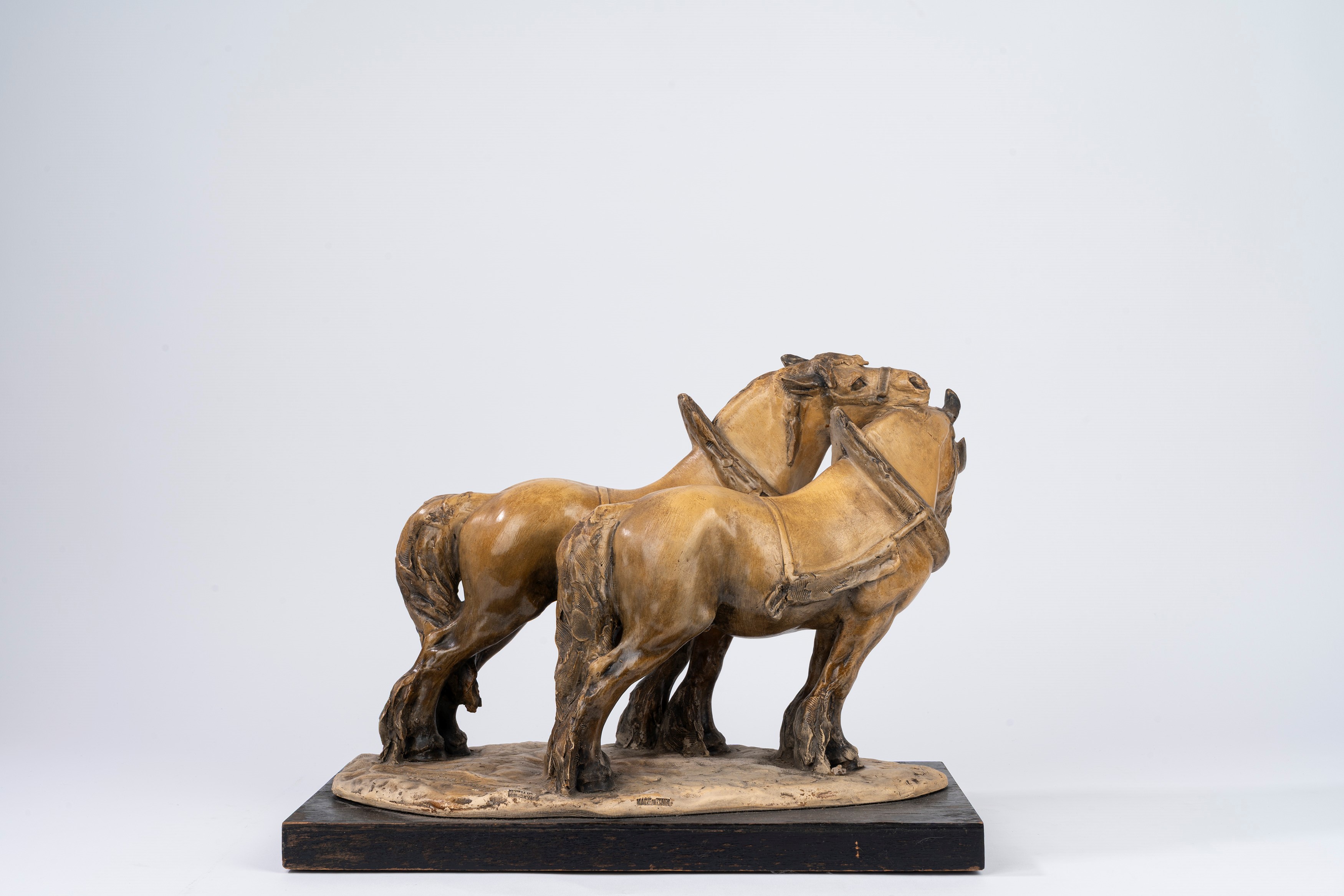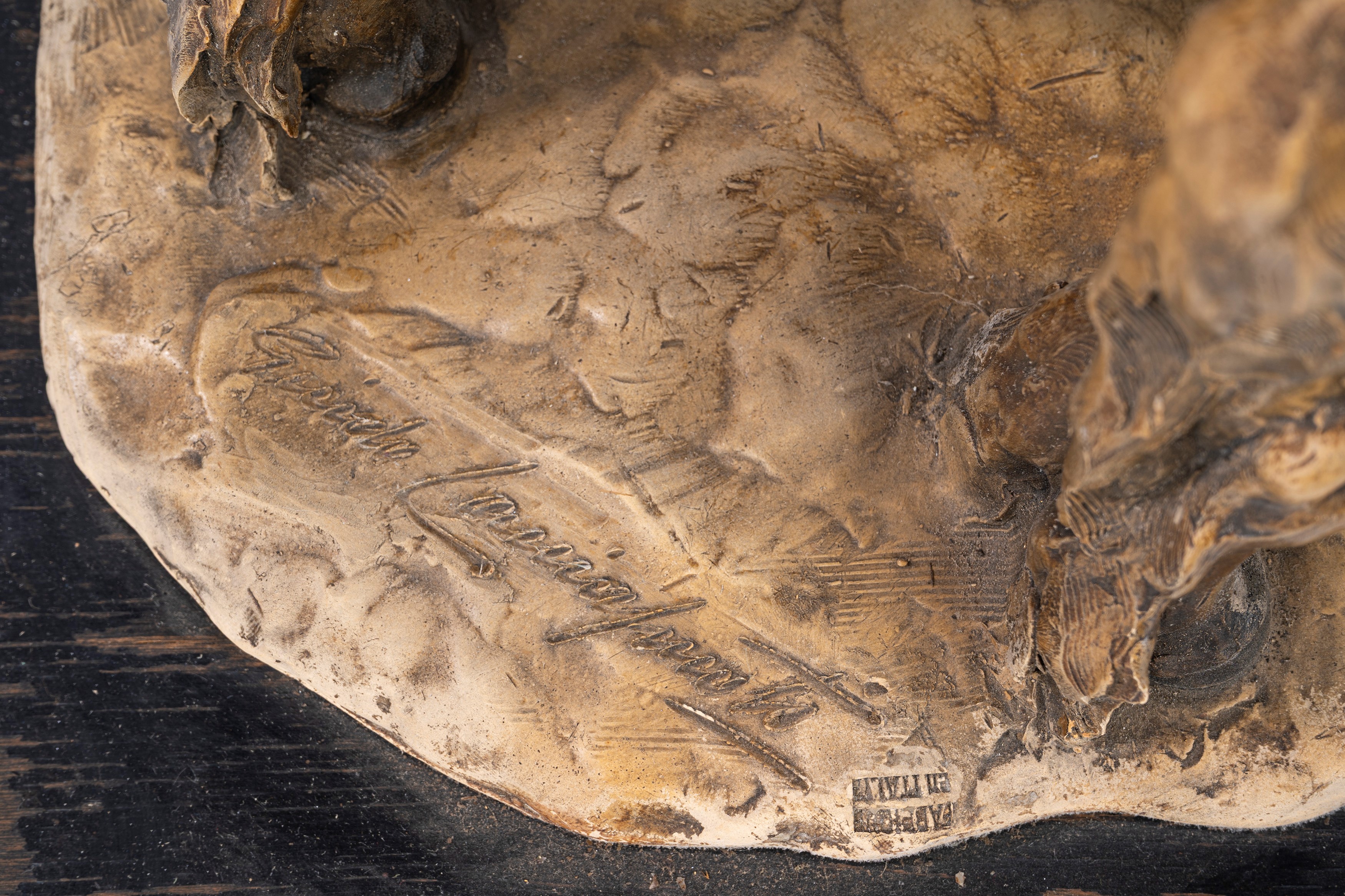 scultura in terracotta patinata, su base in legno