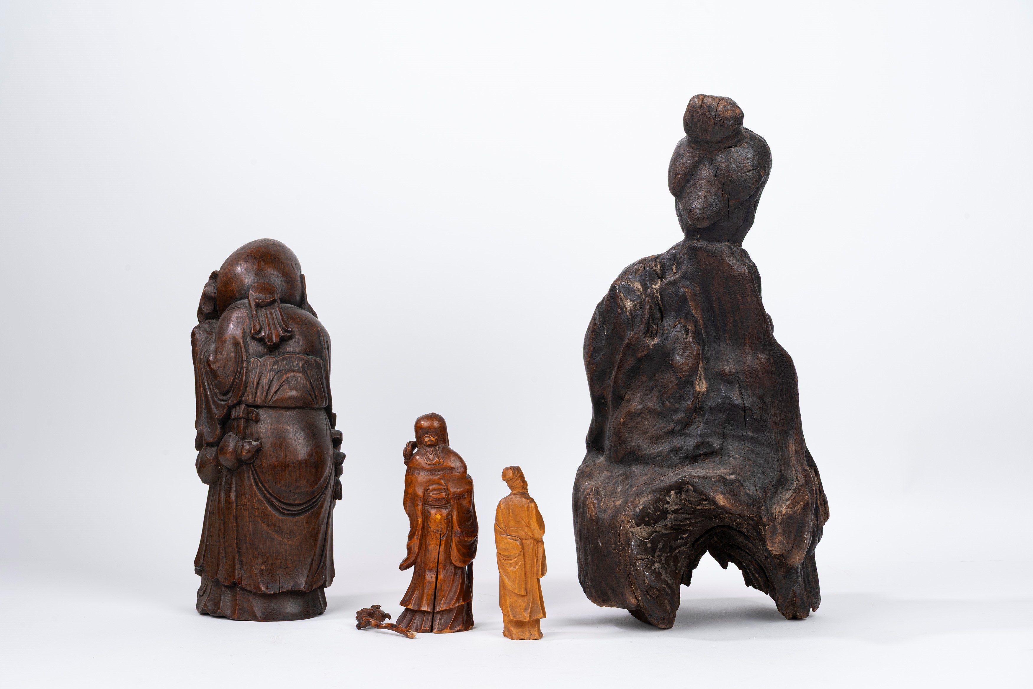 Lotto composto da quattro figure in legno scolpito. Cina, secolo XX