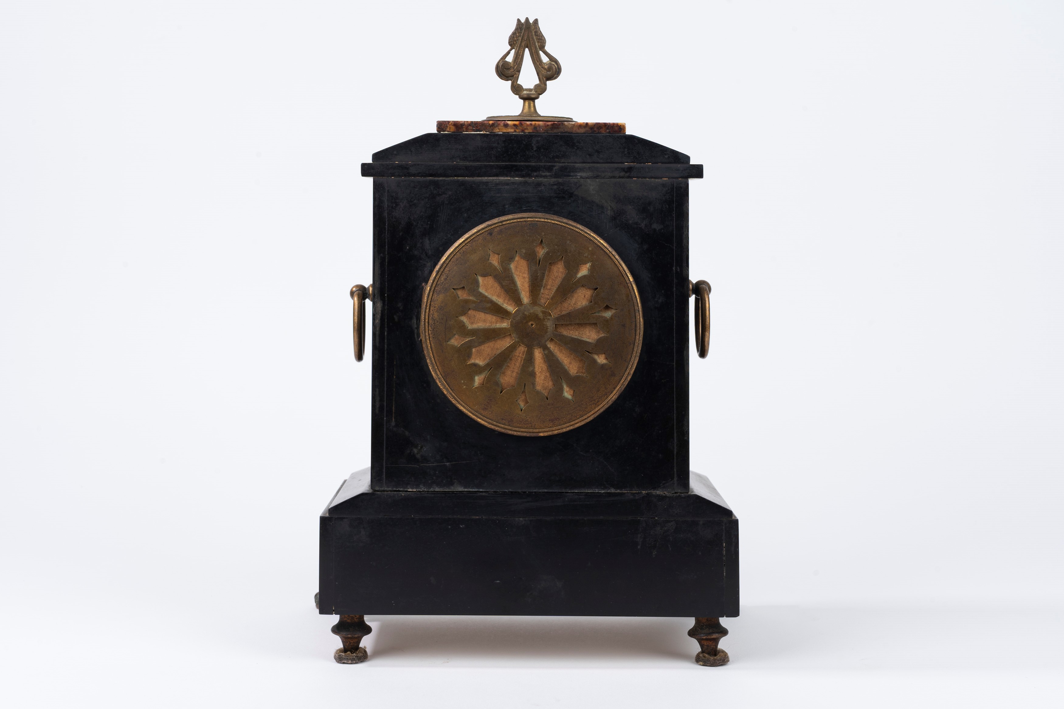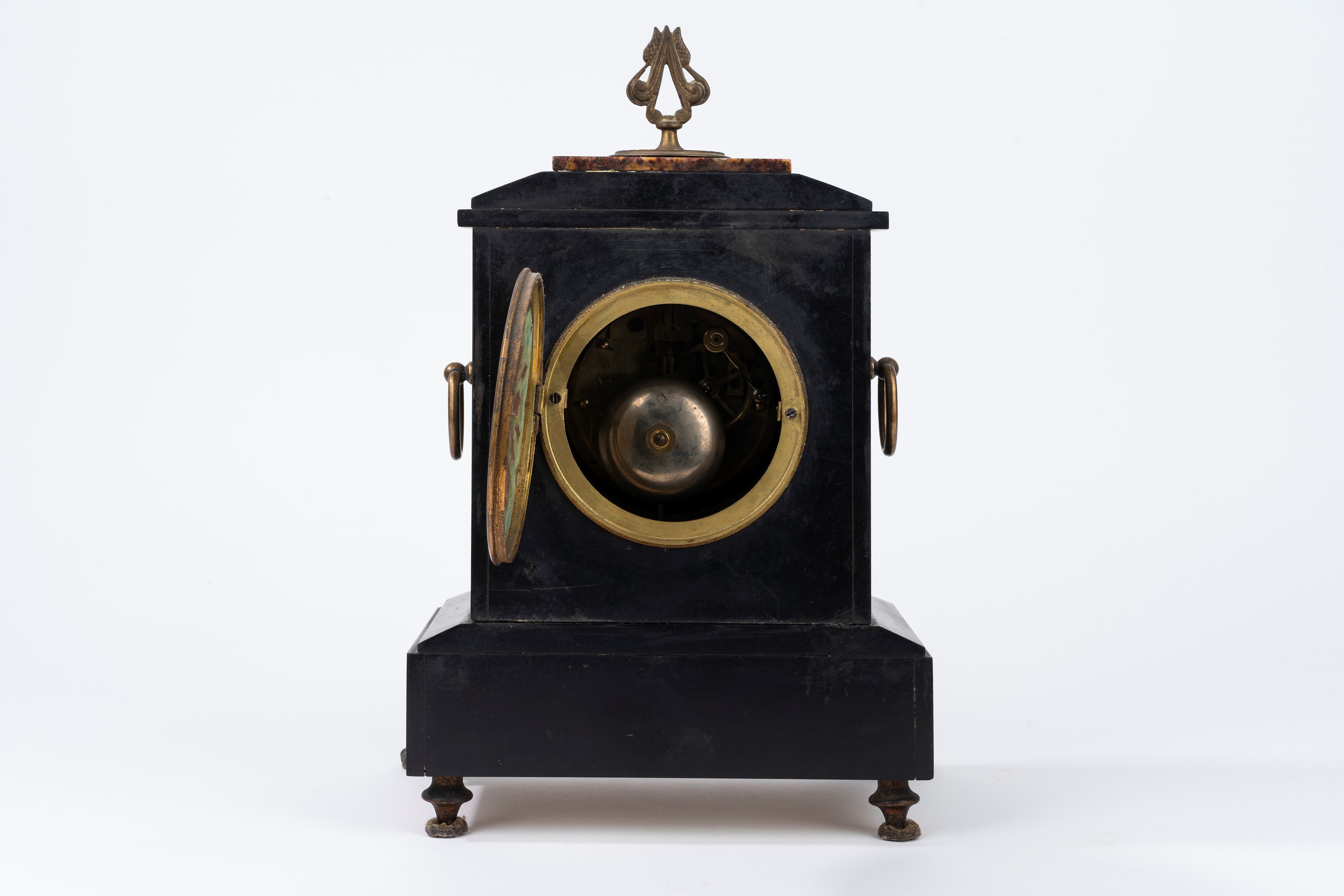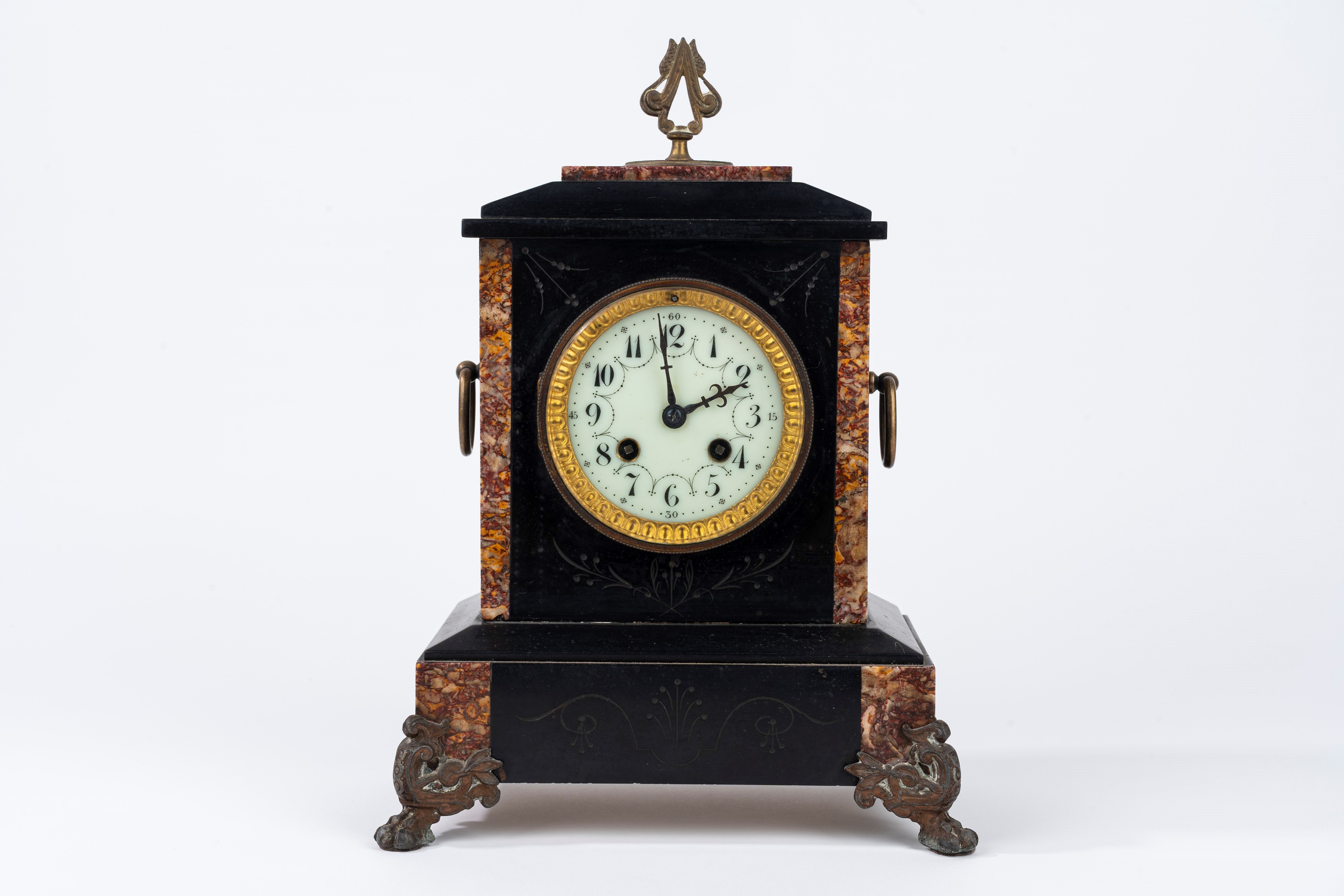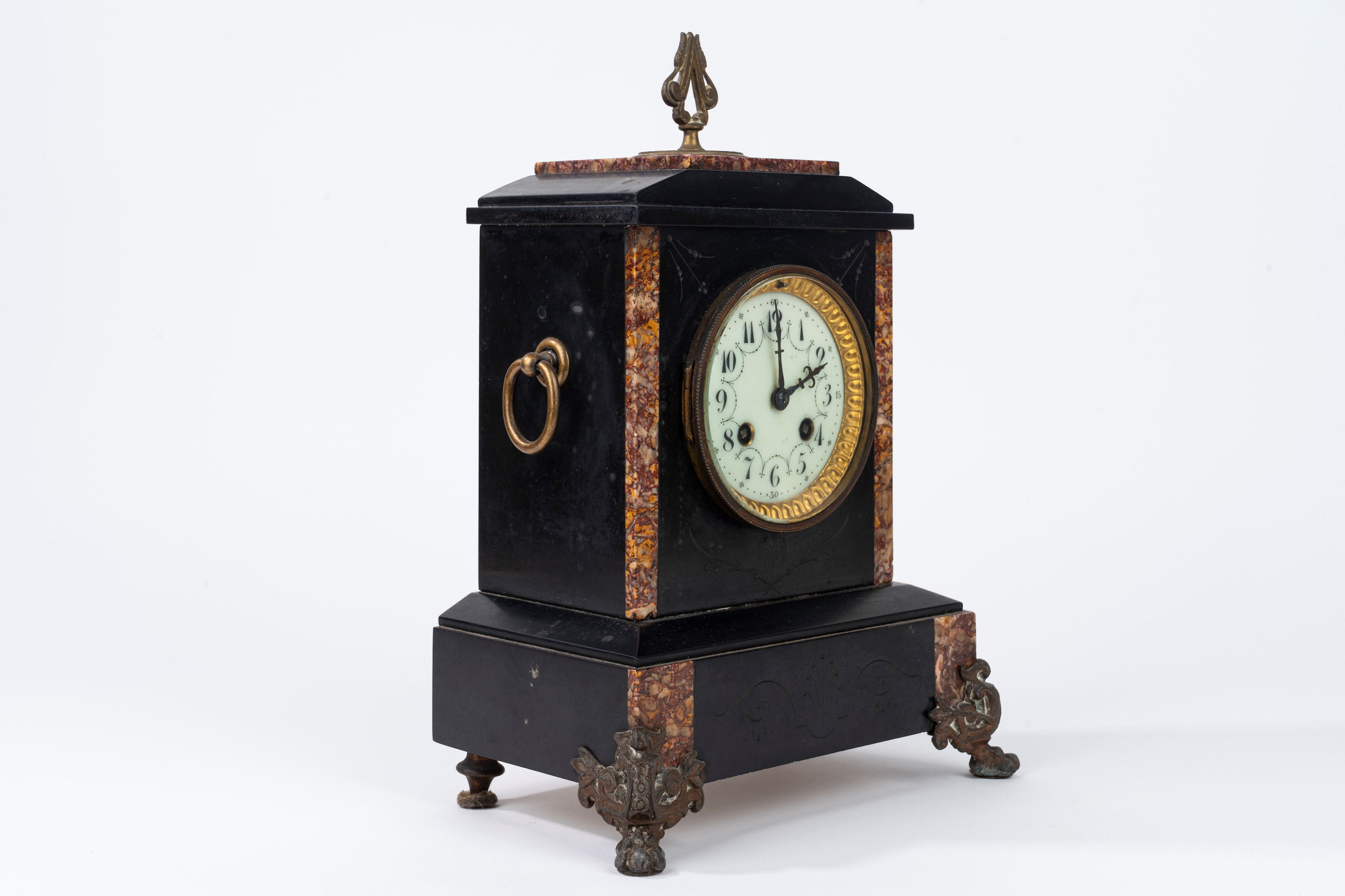 con piedini e inserti in bronzo, quadrante in smalto con numeri arabi