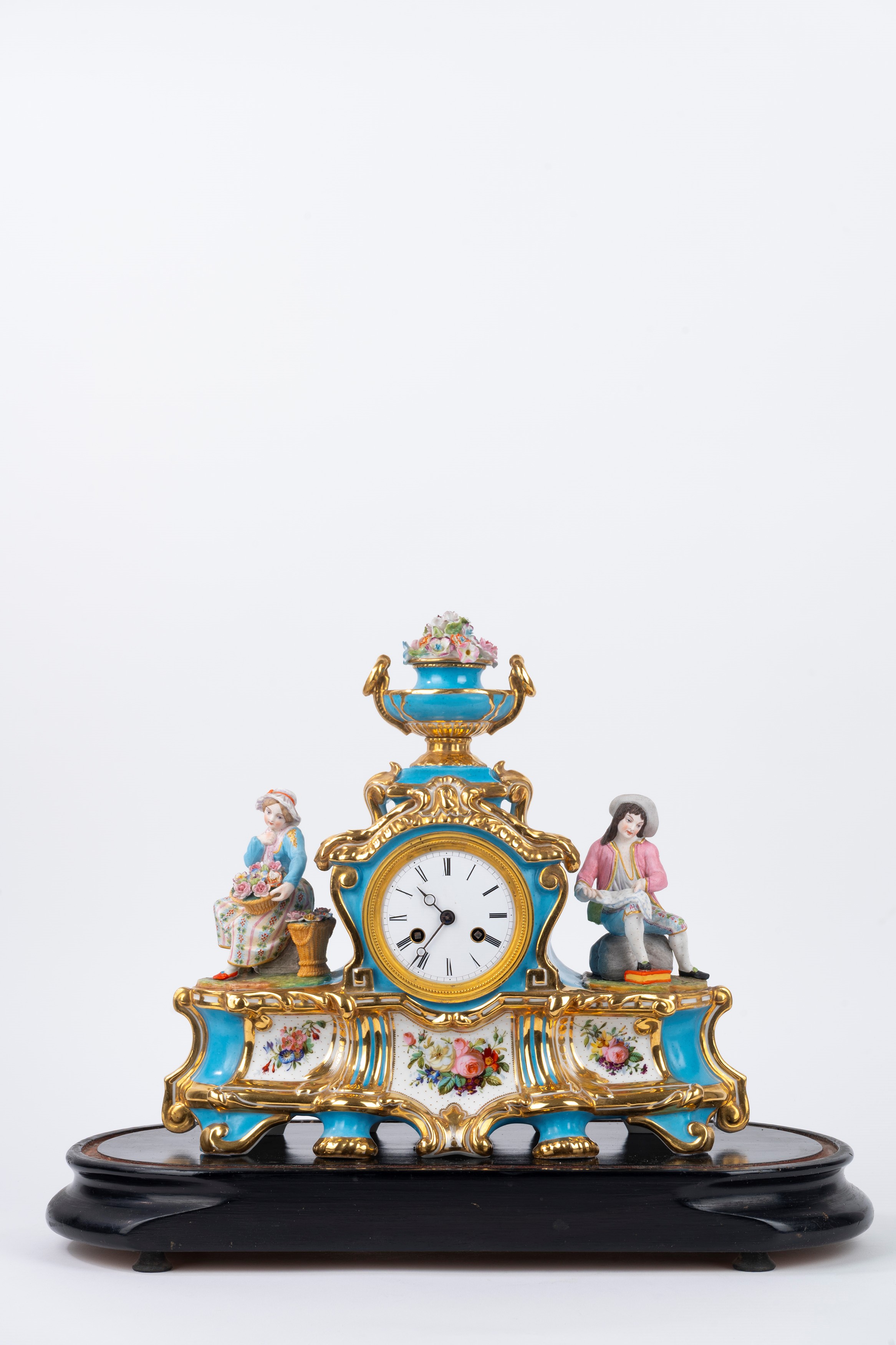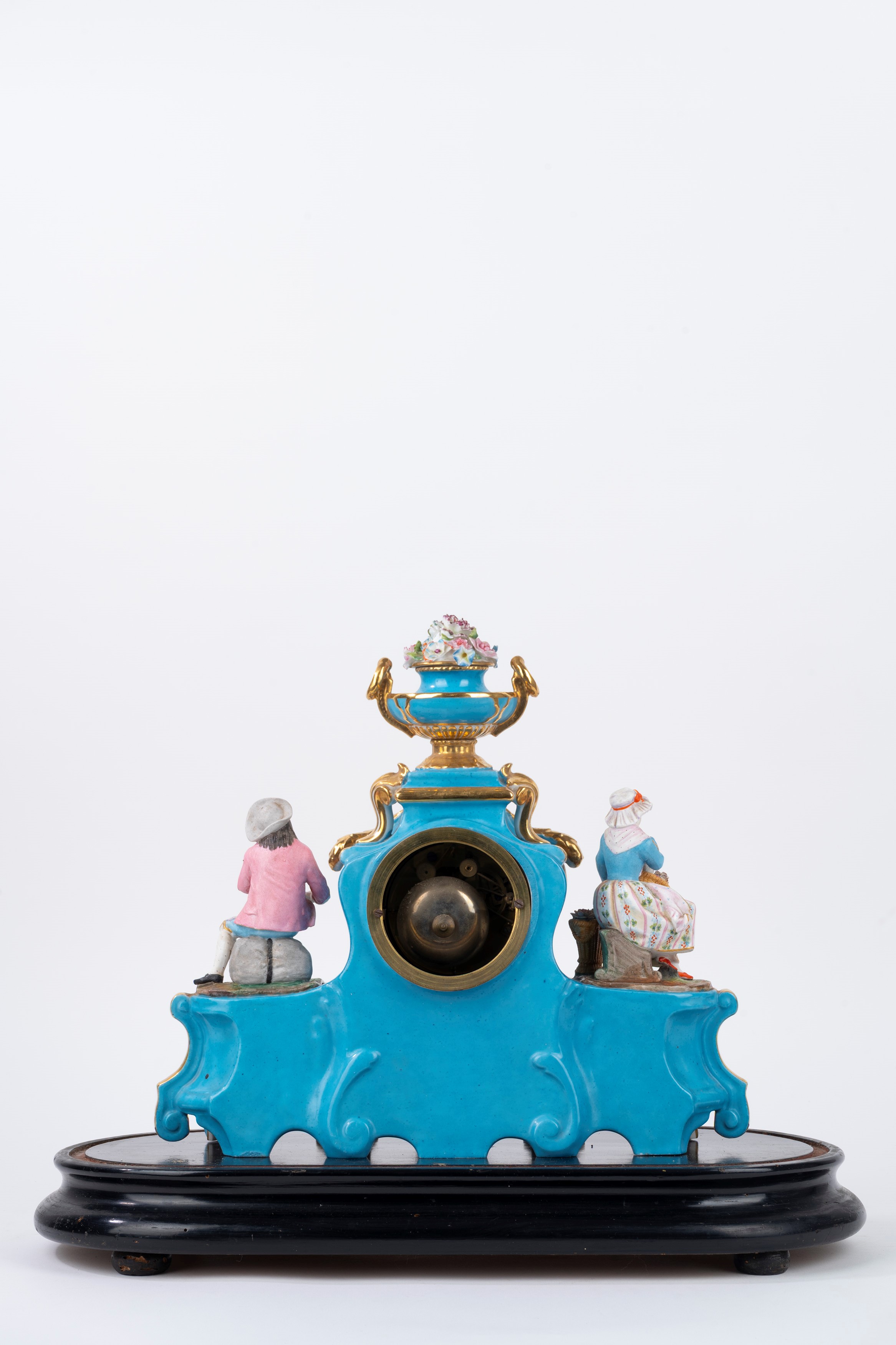 con figure di popolani in biscuit, vaso fiorito sulla sommità