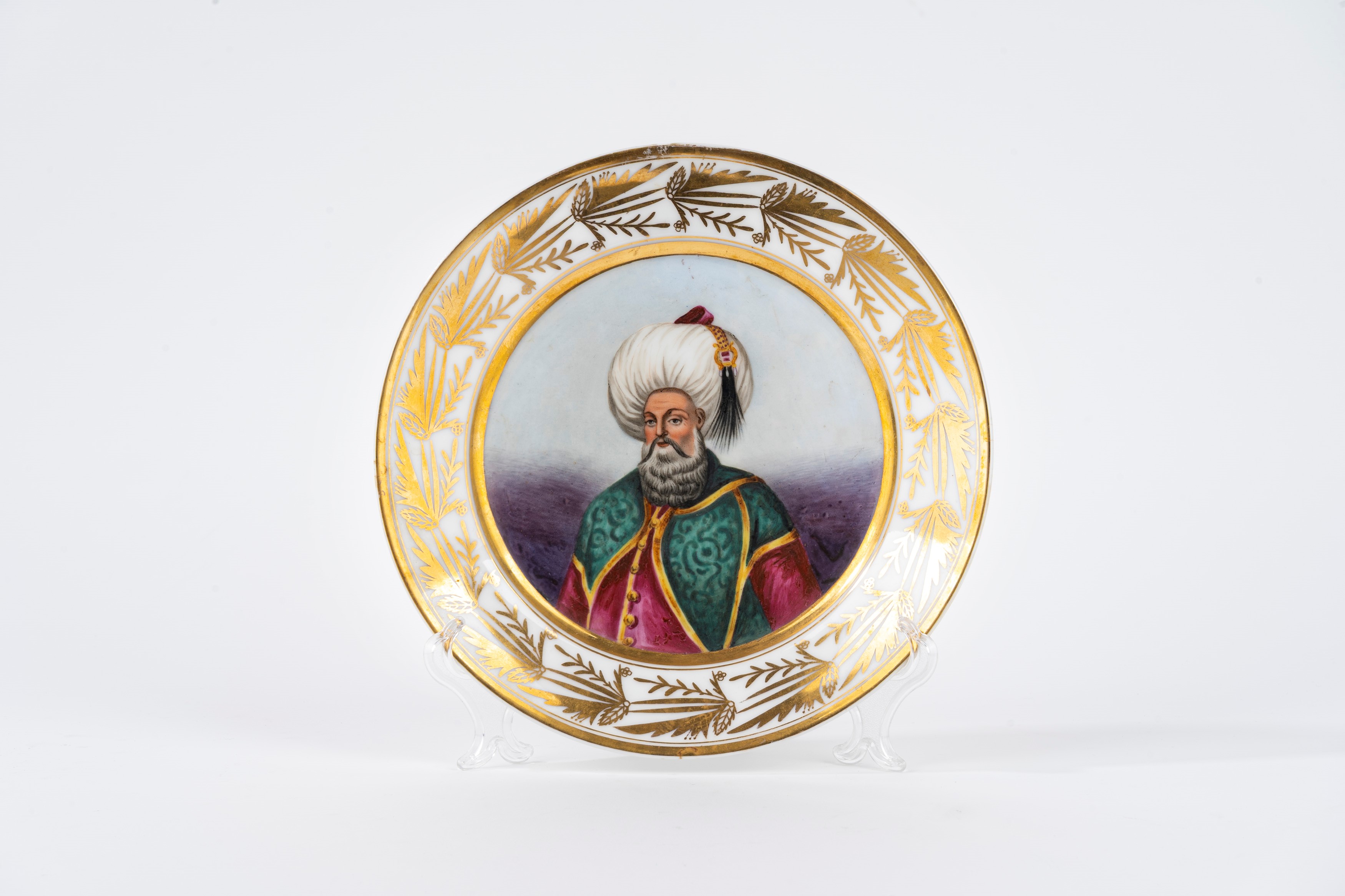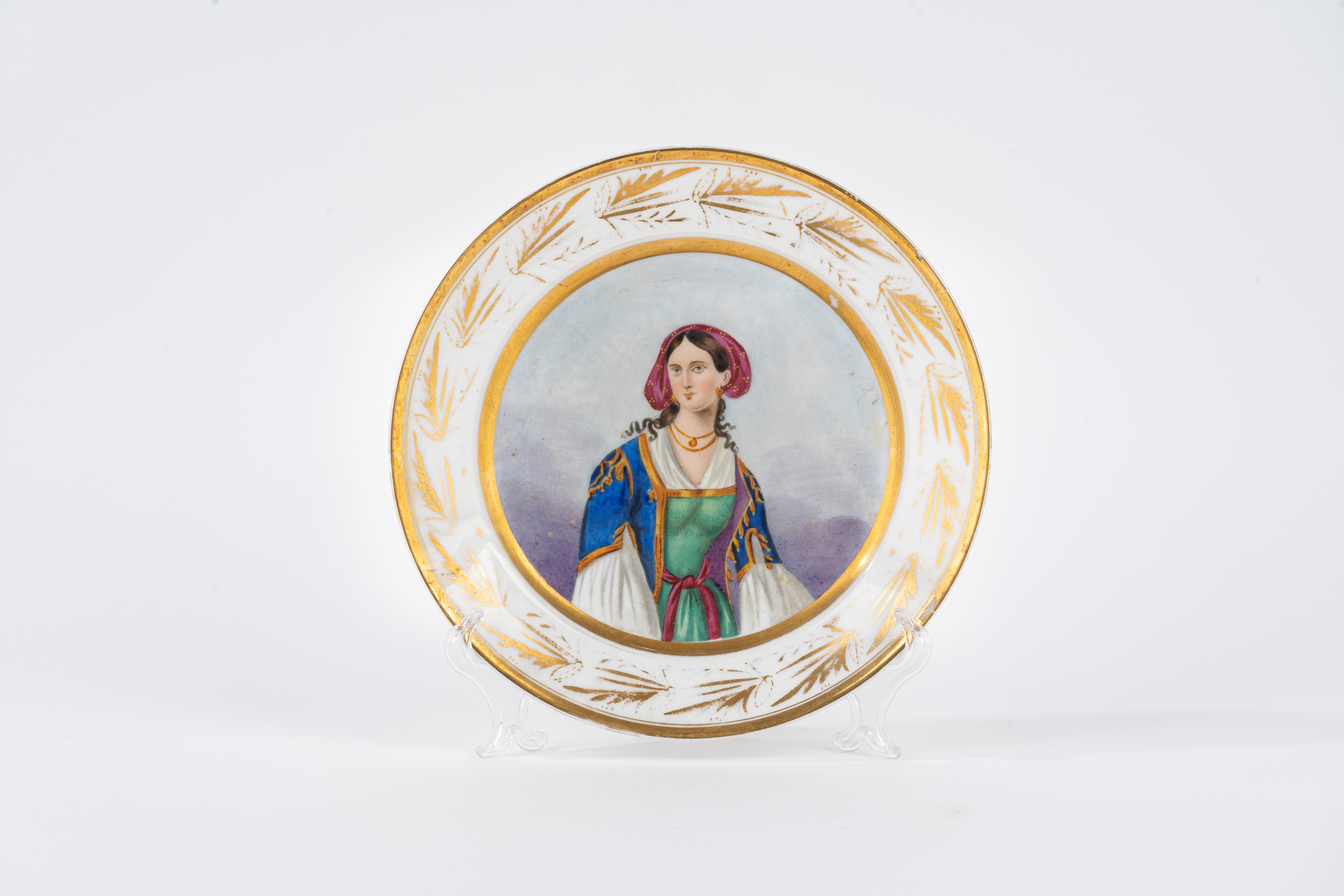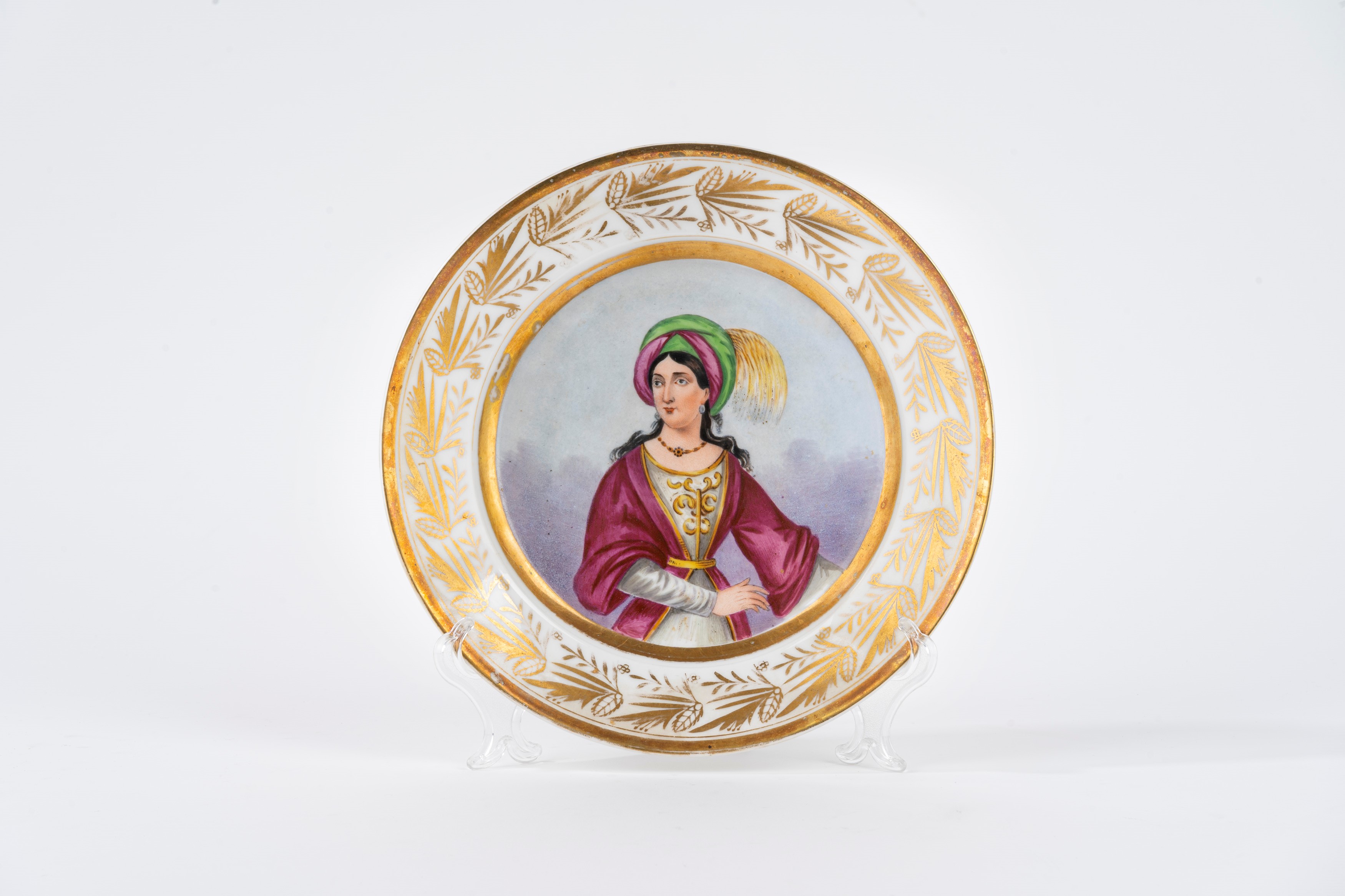 decorati nei cavetti con 3 ritratti femminili e uno maschile e nella tesa con motivi a racemi in oro