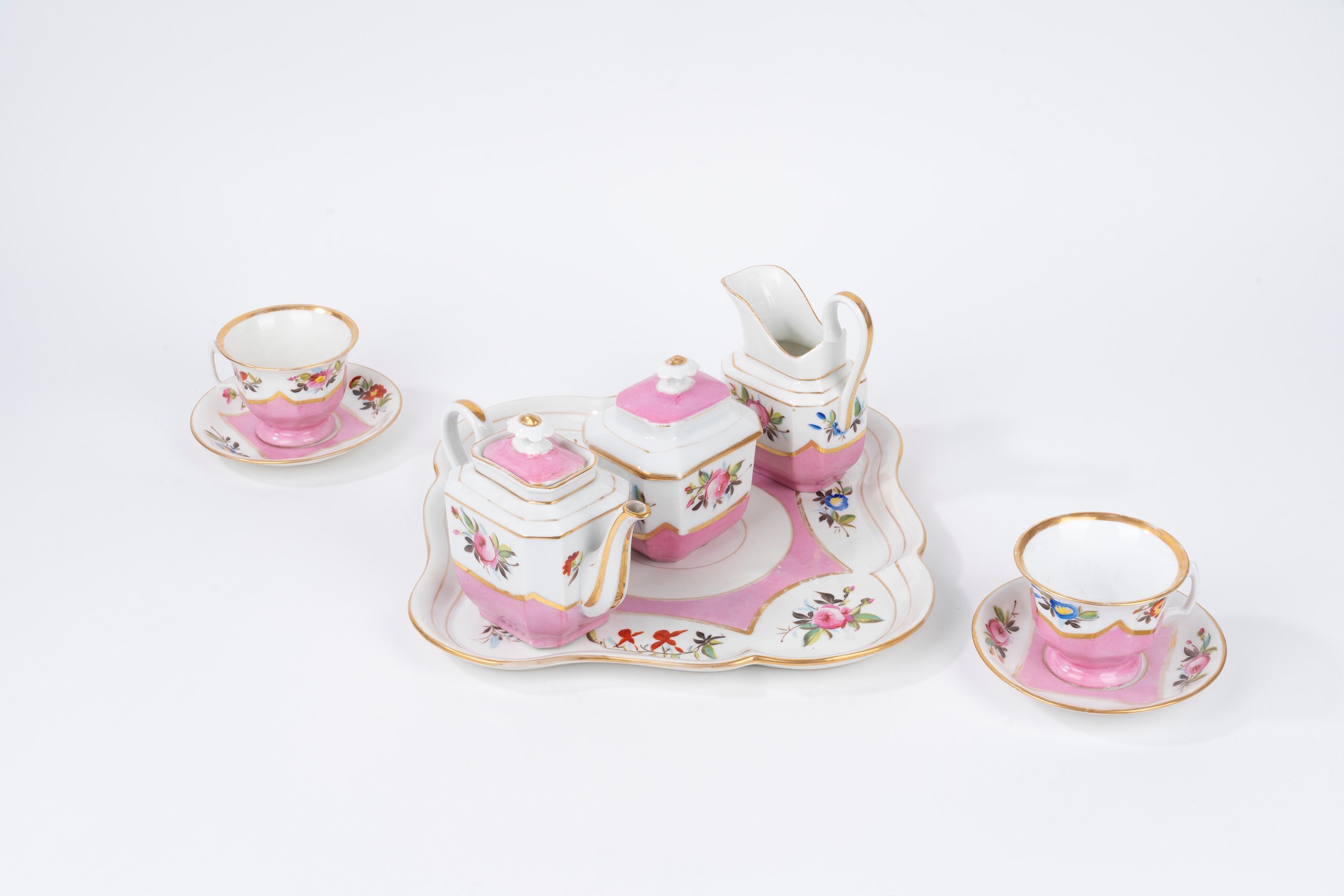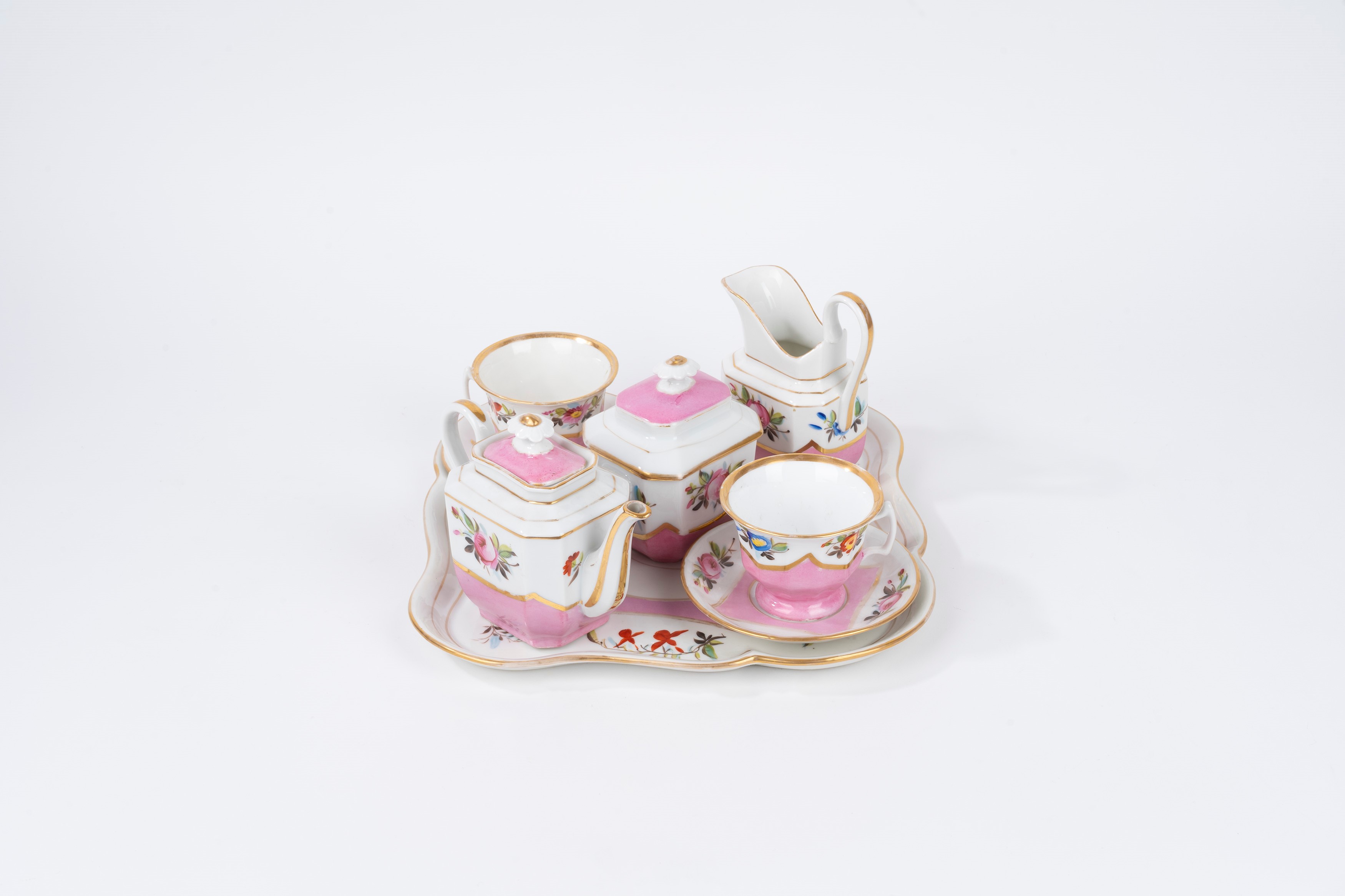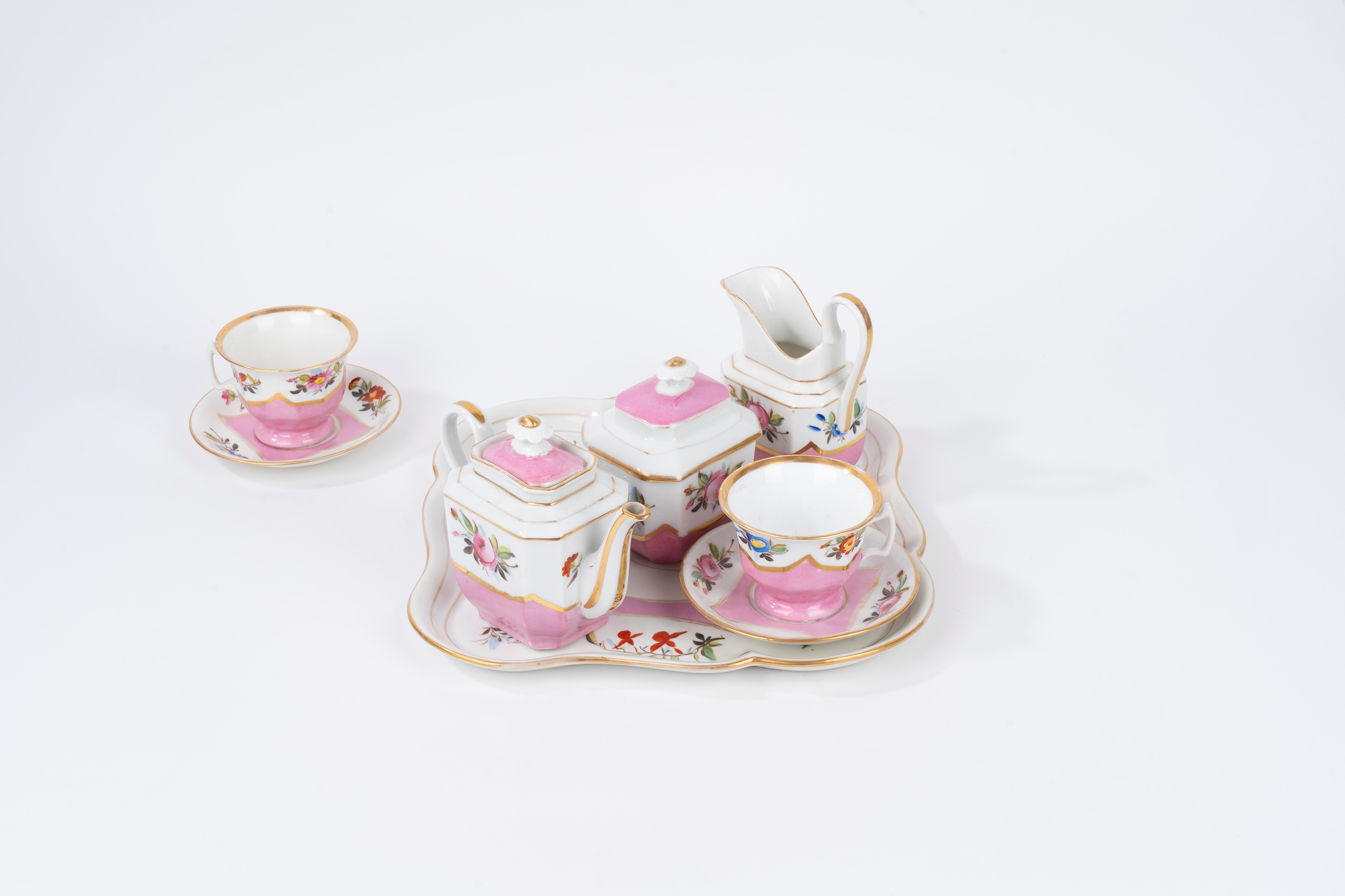 composto da vassoio, due tazzine con piattino, caffettiera, zuccheriera e lattiera
