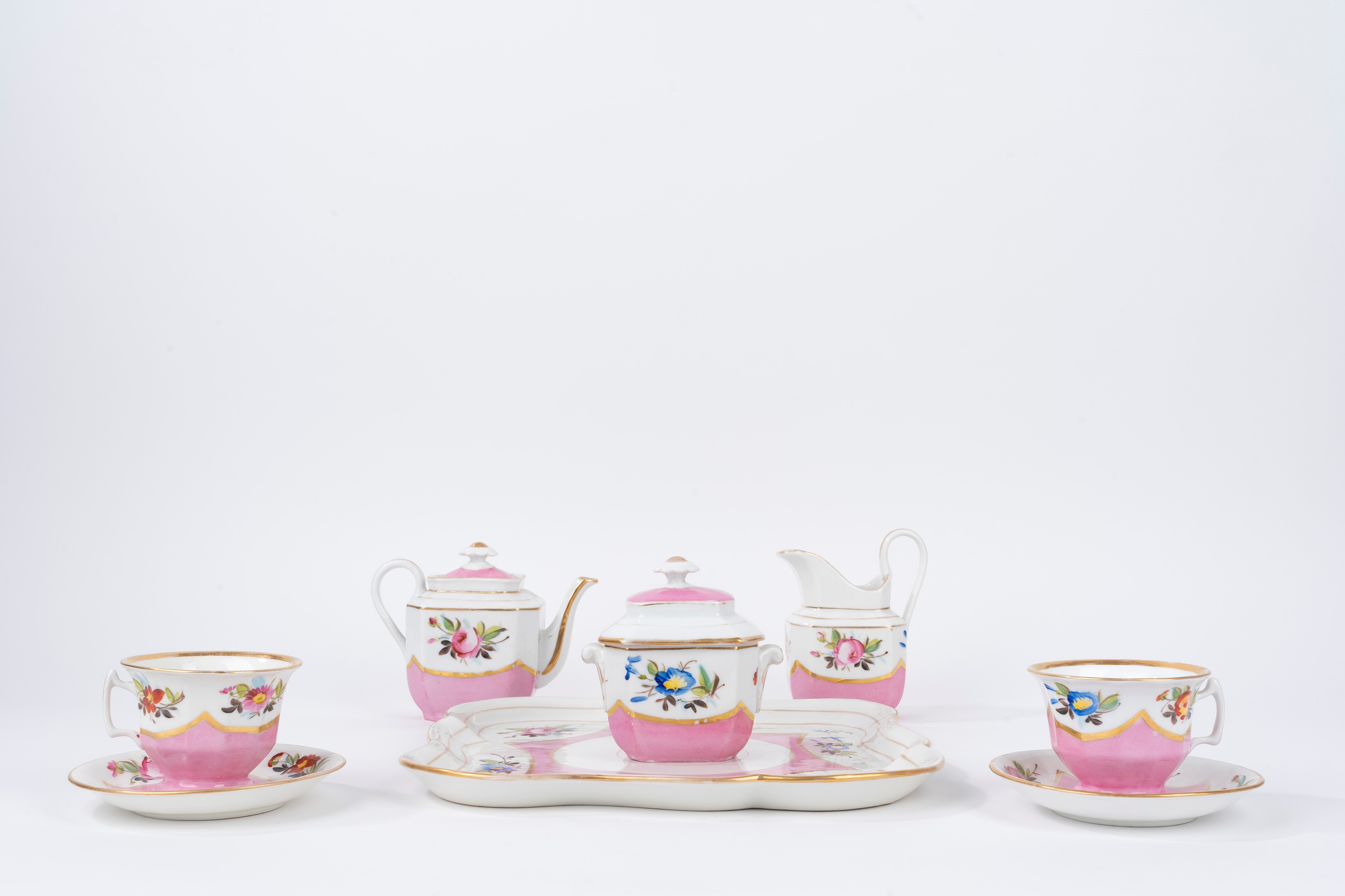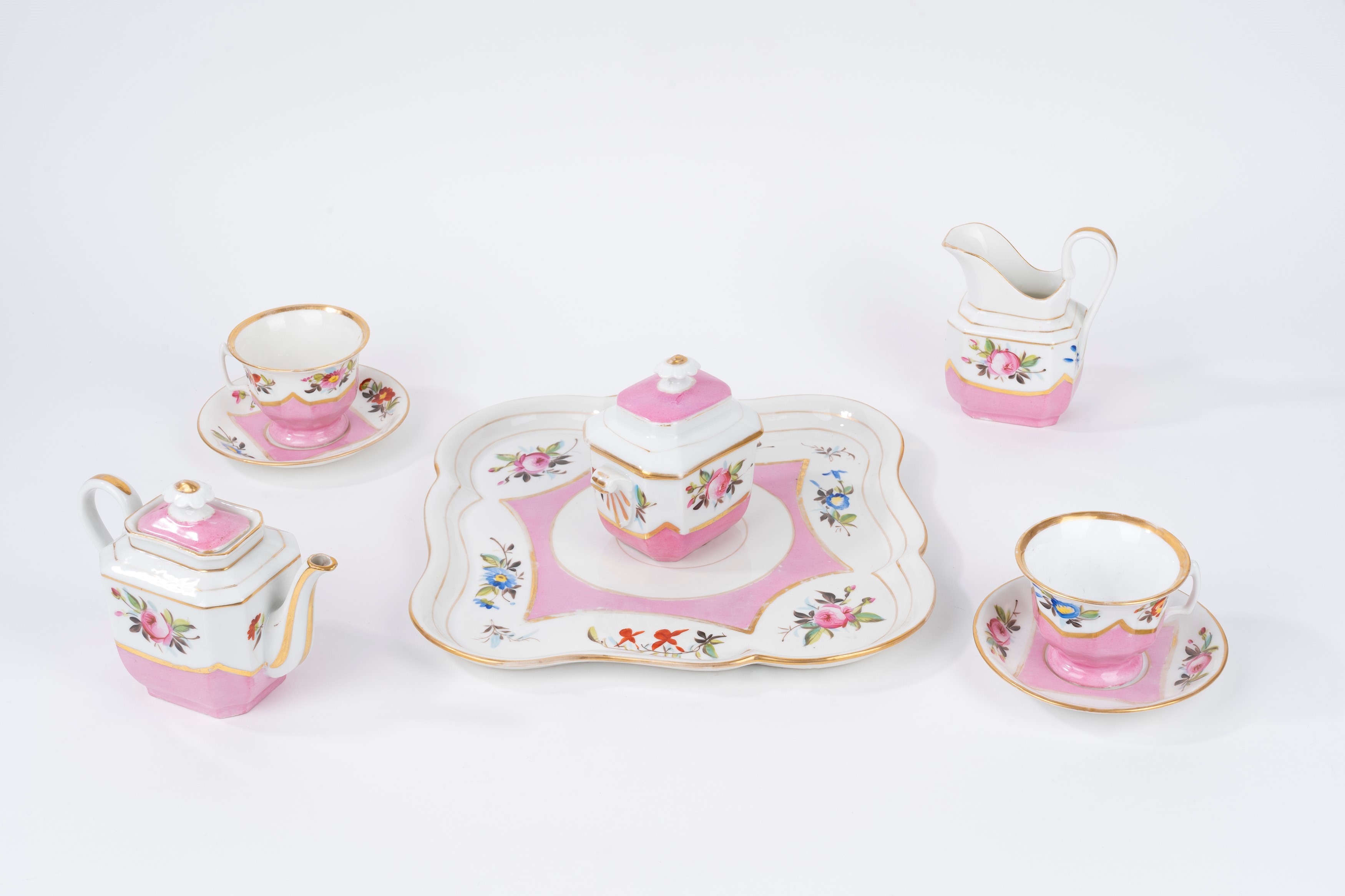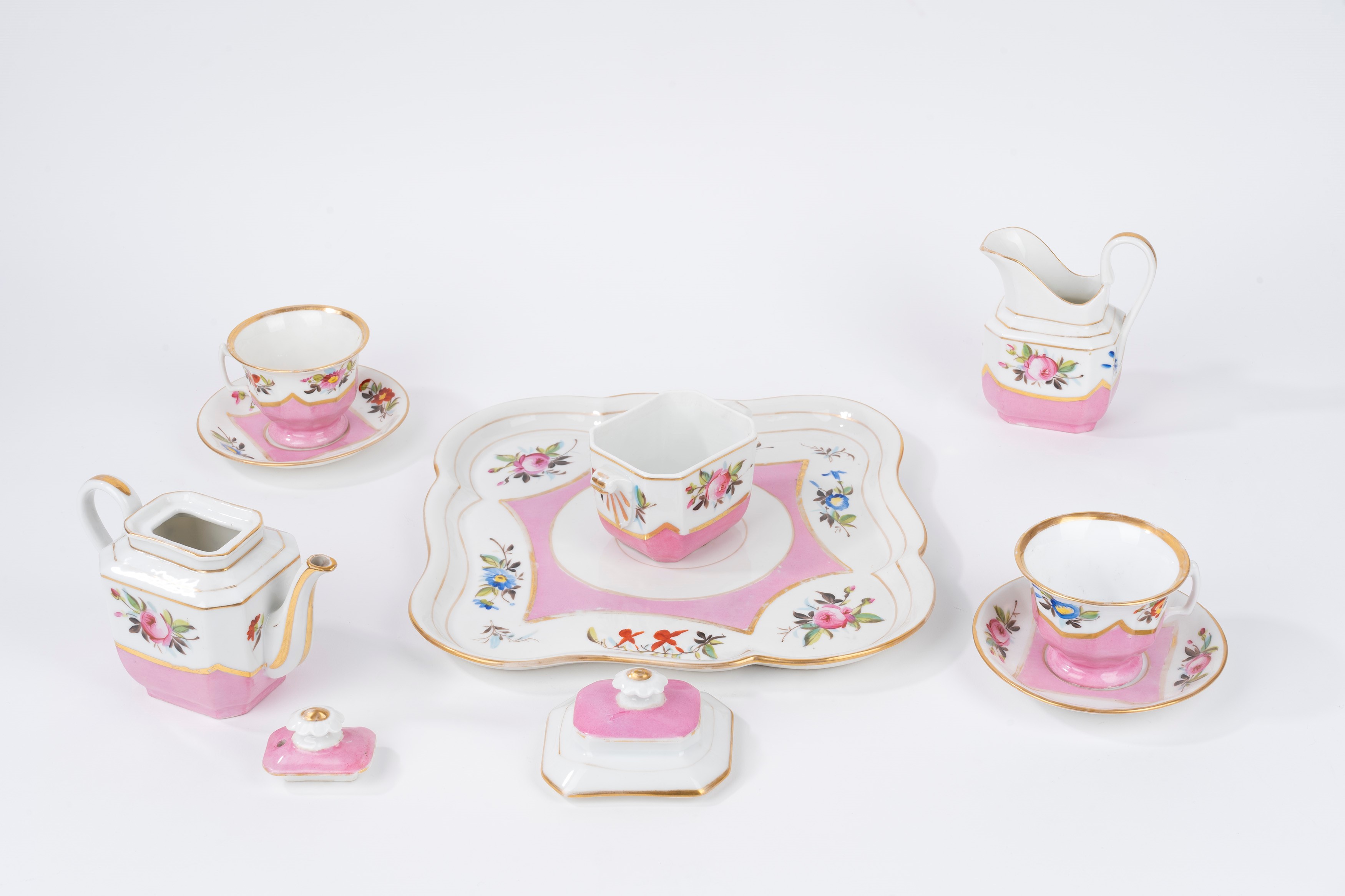 composto da vassoio, due tazzine con piattino, caffettiera, zuccheriera e lattiera